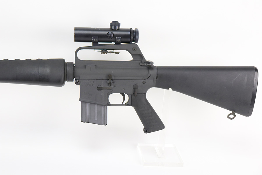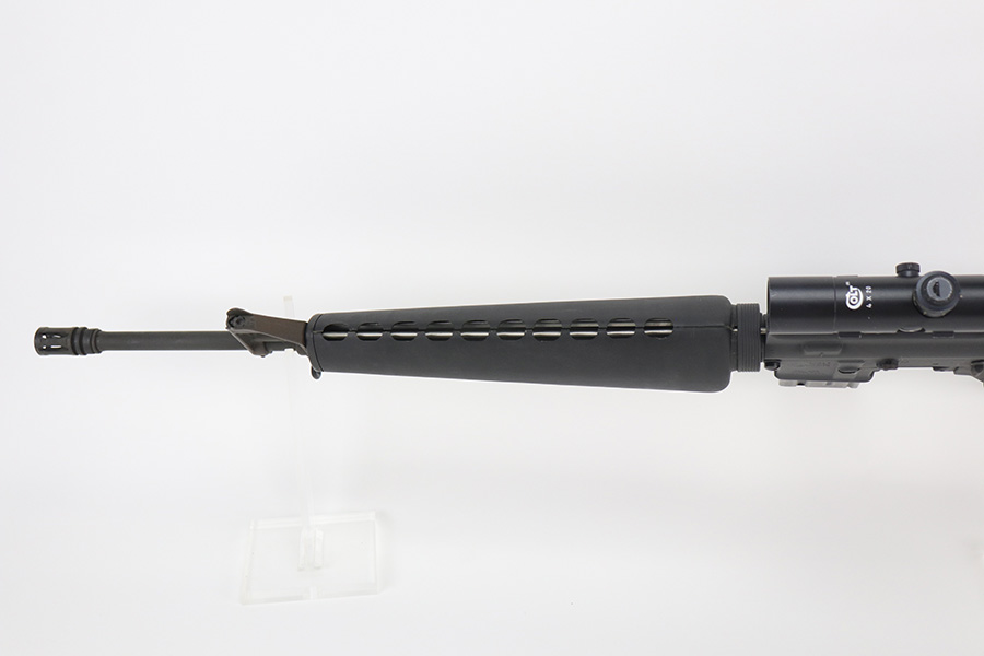 11/23/21 – This is an excellent, original Colt SP1 that was manufactured in 1982. The original finish shows very little wear, just a tiny scuff here or there. Other desirable pre-ban features include birdcage flash hider, bayonet lug, elevation adjustable post front sight and windage adjustable two position rear peep sight. Bore is excellent and looks nearly unfired. Excellent stock, too. Also included is a Colt 4×20 scope with clear optics.