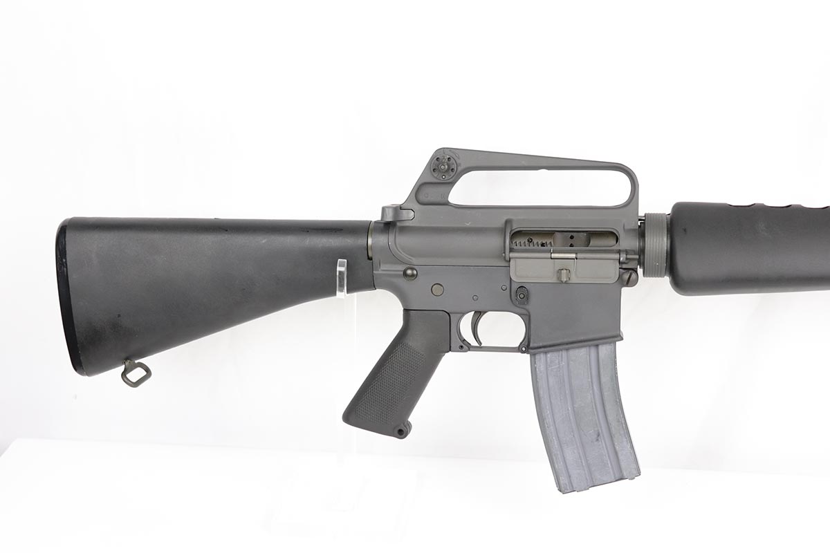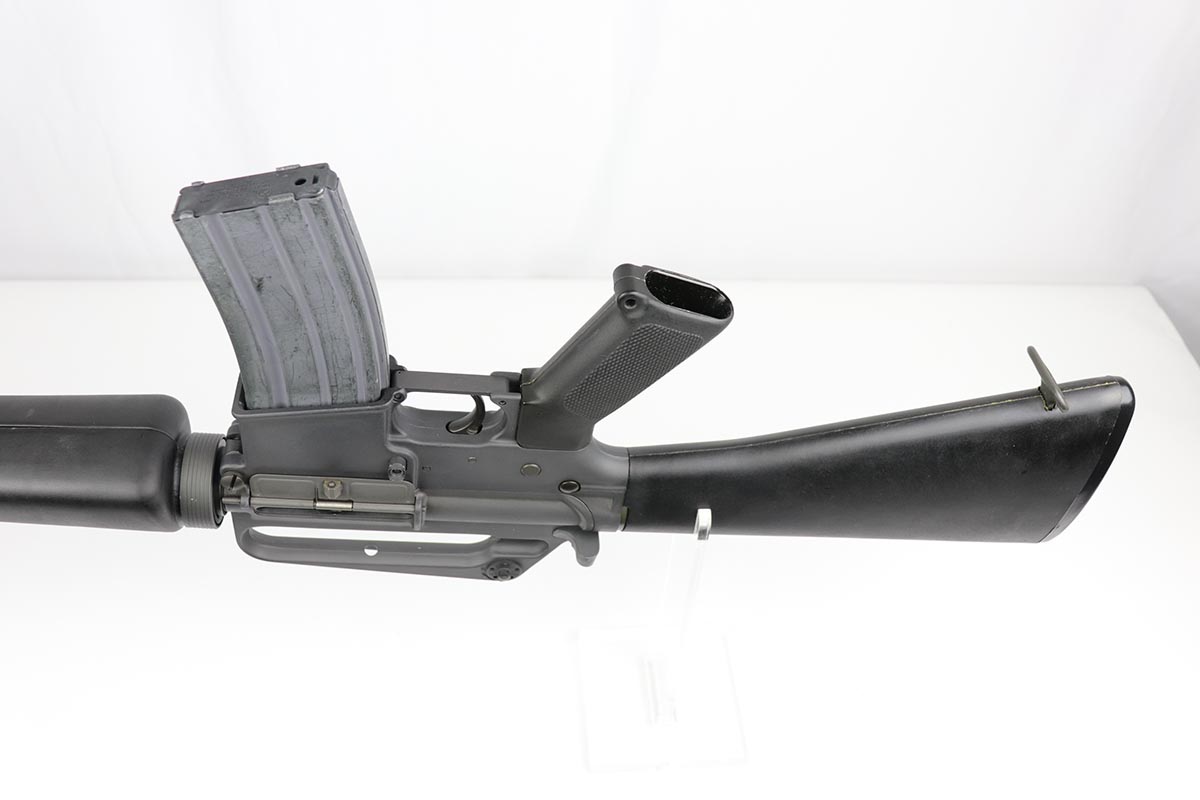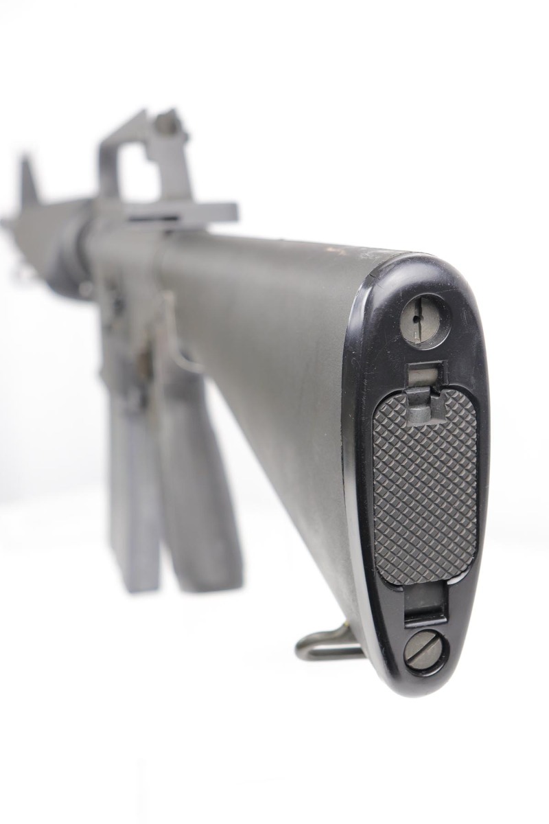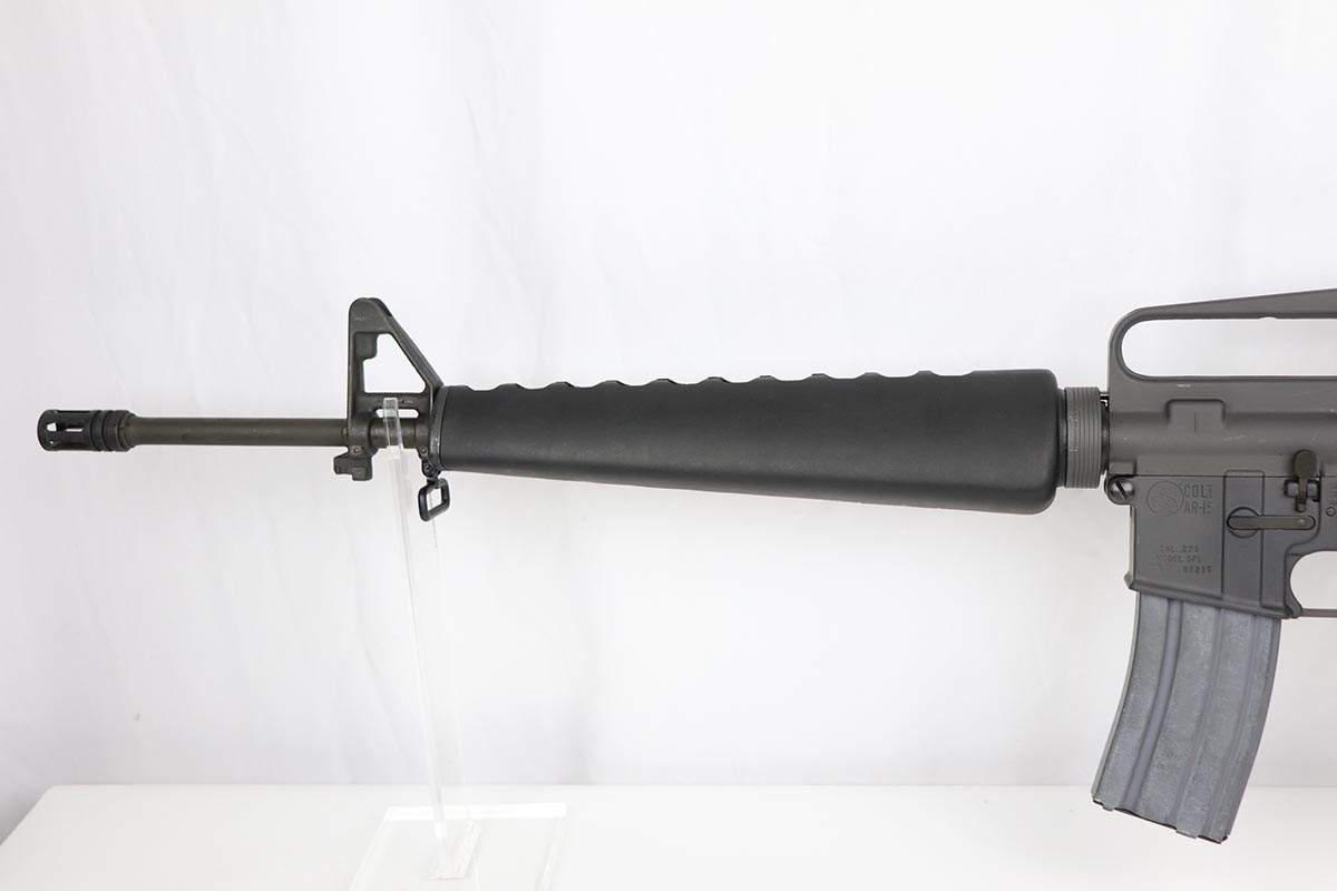 1/15/20 – This is an excellent example of a pre-ban Colt SP1, made in the 1980s, and marked AR-15 on receiver. There are a few minor scuff marks on the left side of the upper, but minimal signs of use otherwise. Minty bore and terrific stock. Triangular handguard. Colt marked magazine.