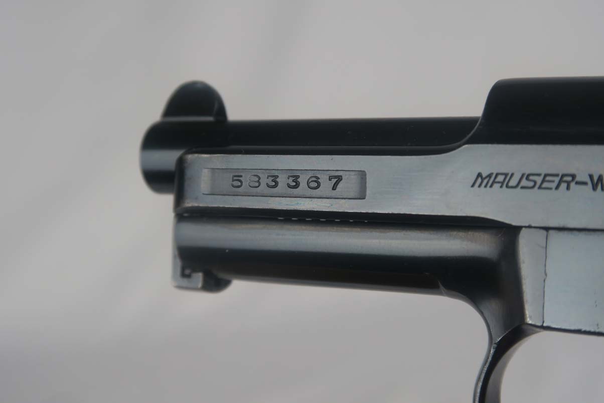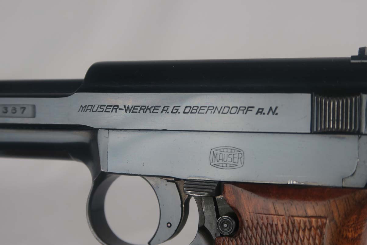 10/6/17  – This is a hard to find commercial 1934 Mauser with Eagle/N proofs.  The original finish rates at over 98%, but there are some nicks in the metal on the front strap.  Excellent grip and magazine.  Bore has strong rifling and no pitting.