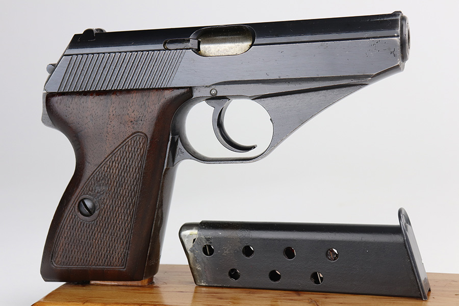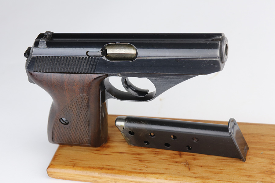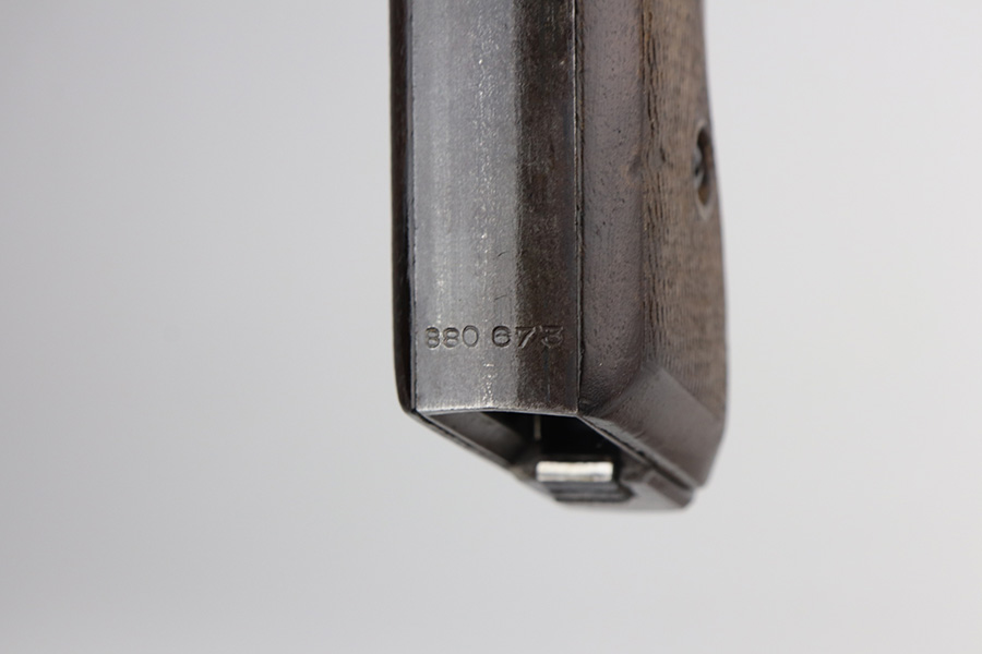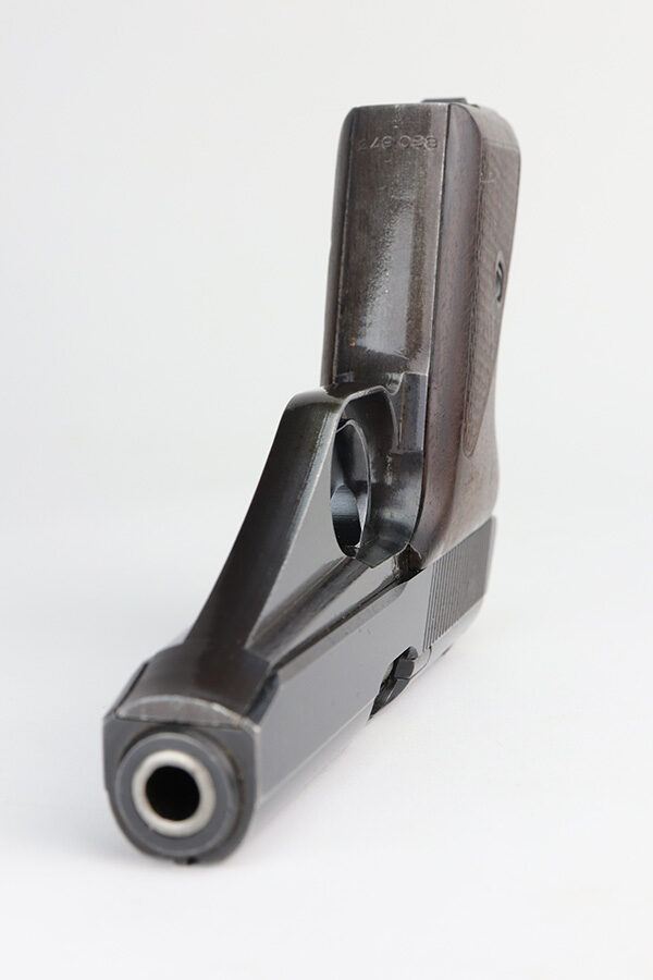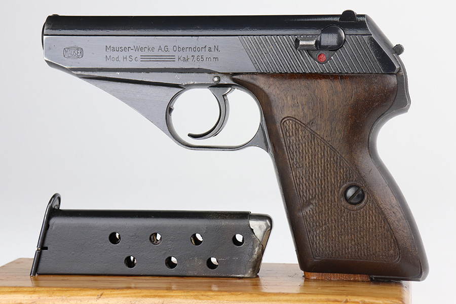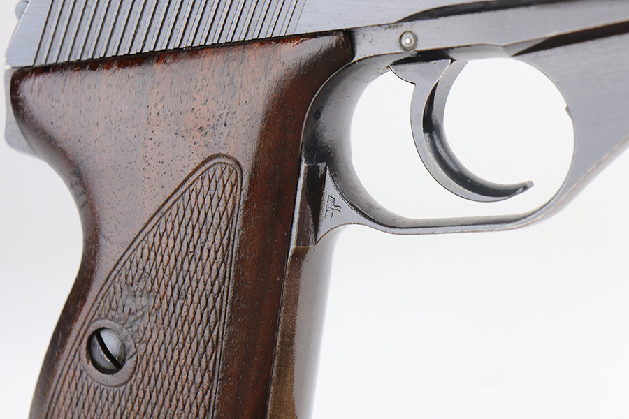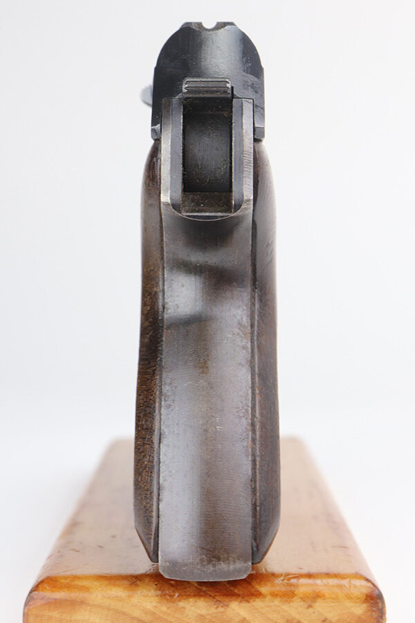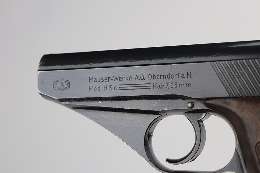 6/9/21 – This is an excellent example of a Mauser HSC sold in the commercial market in 1943. The gun is all matching and has the proper “Eagle N” proofs. It has retained about 96% of its original bluing. There is very minor thinning, patina, and a few dots of oxidation on the straps. Hints of wear on the high edges of the slide and around the muzzle. Some tiny marks on the right side of the slide. Comes with very nice grips – small chip in the top right corner of the right panel. Post war magazine. Mint bore.