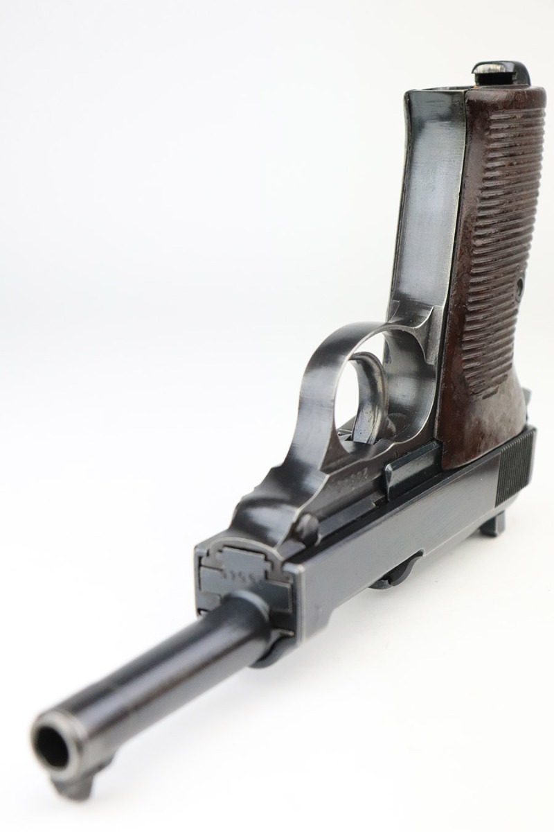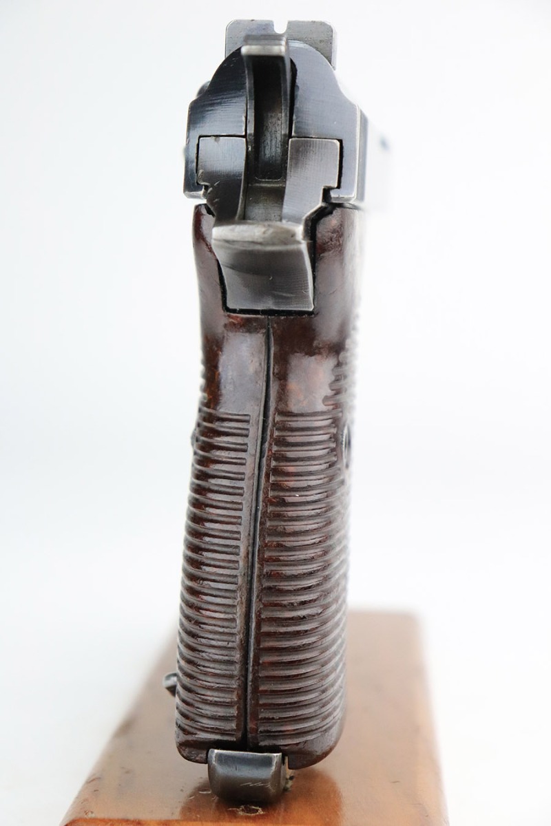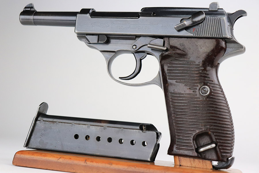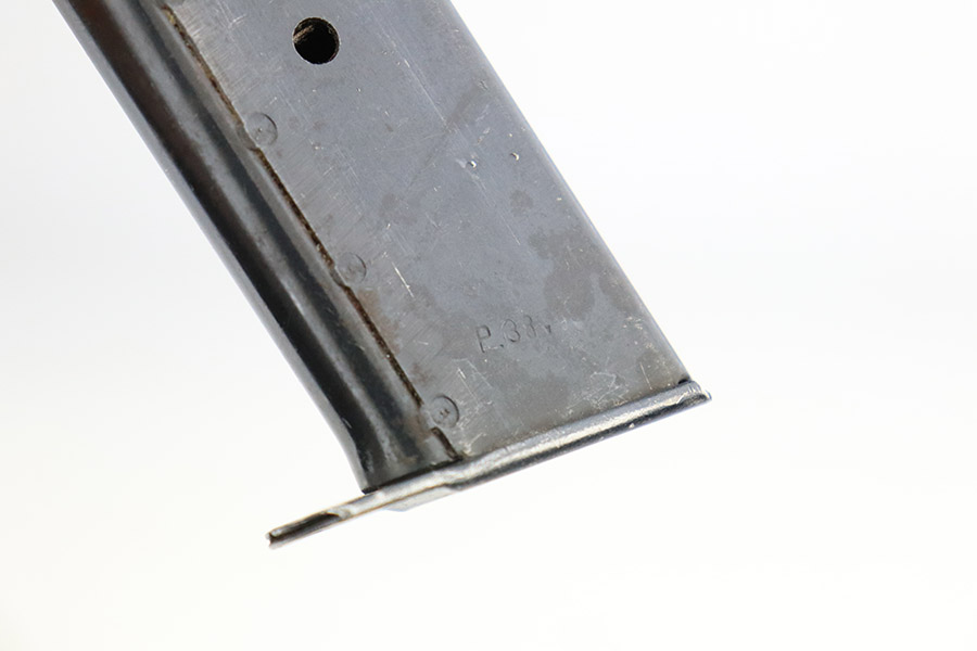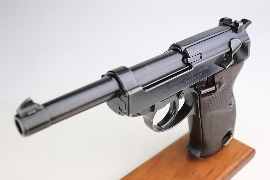 11/7/22 – This is an excellent example of a Walther Mod HP sold in the commercial market during WW2.. It is all matching and has the proper “Eagle N” commercial proofs. It has retained about 97% of its original finish. There is very minor thinning along the barrel and very minor wear around the muzzle and high edges of the slide. Comes with excellent reddish-brown bakelite grips and one magazine that has been force-matched. The bore has good rifling with very minor pin-pricking throughout. De-cocker is functional.