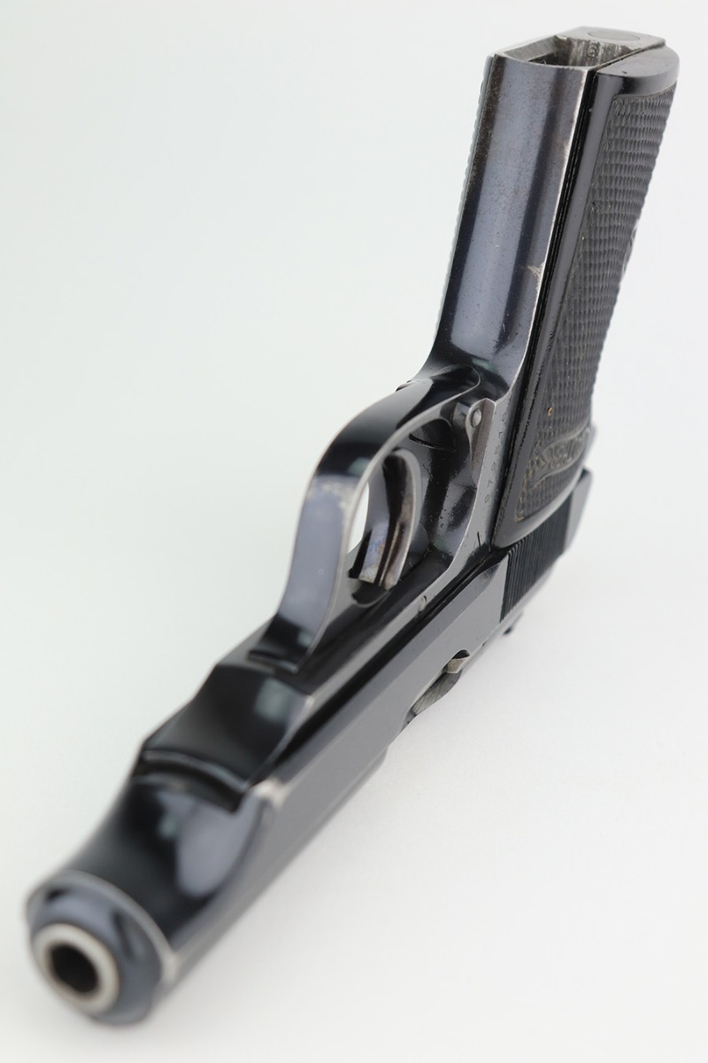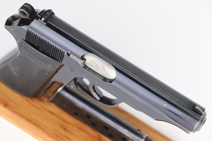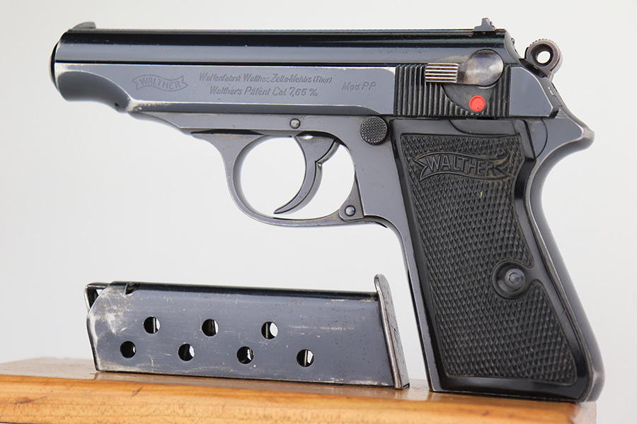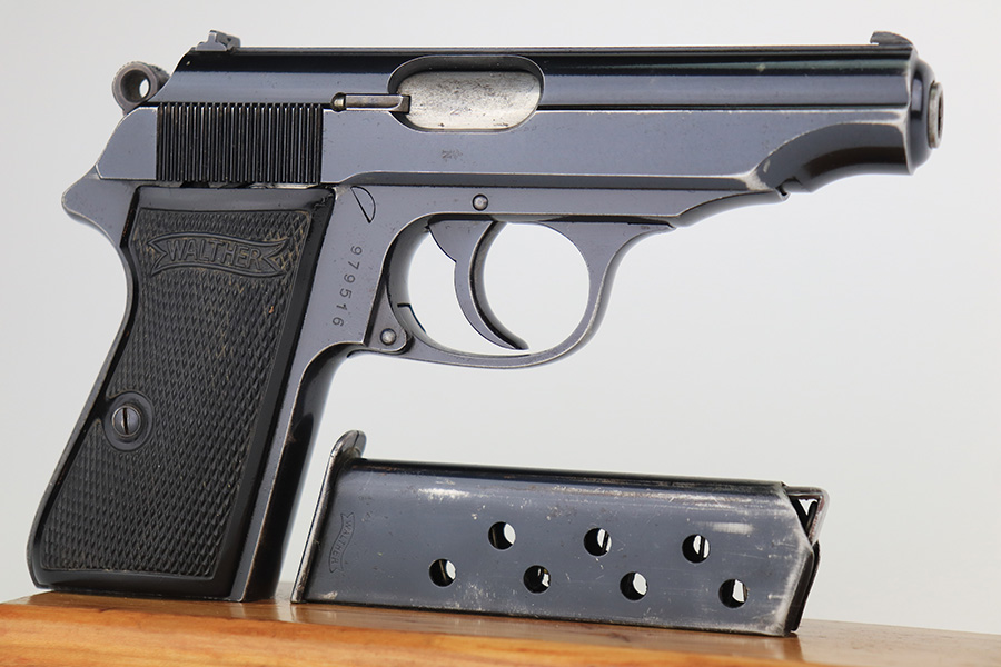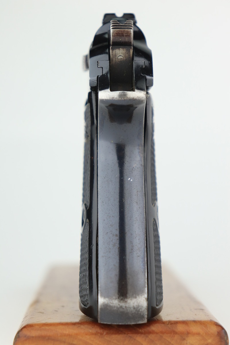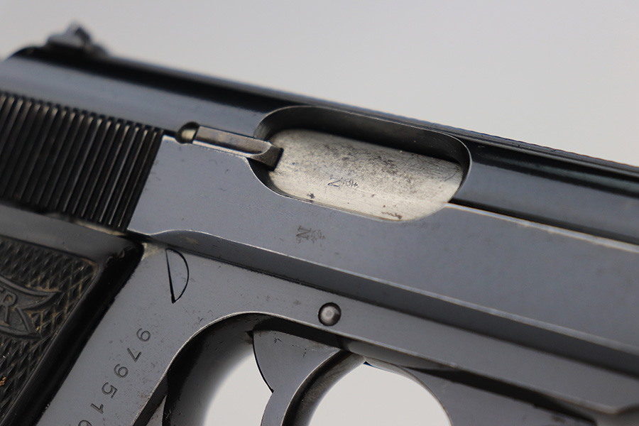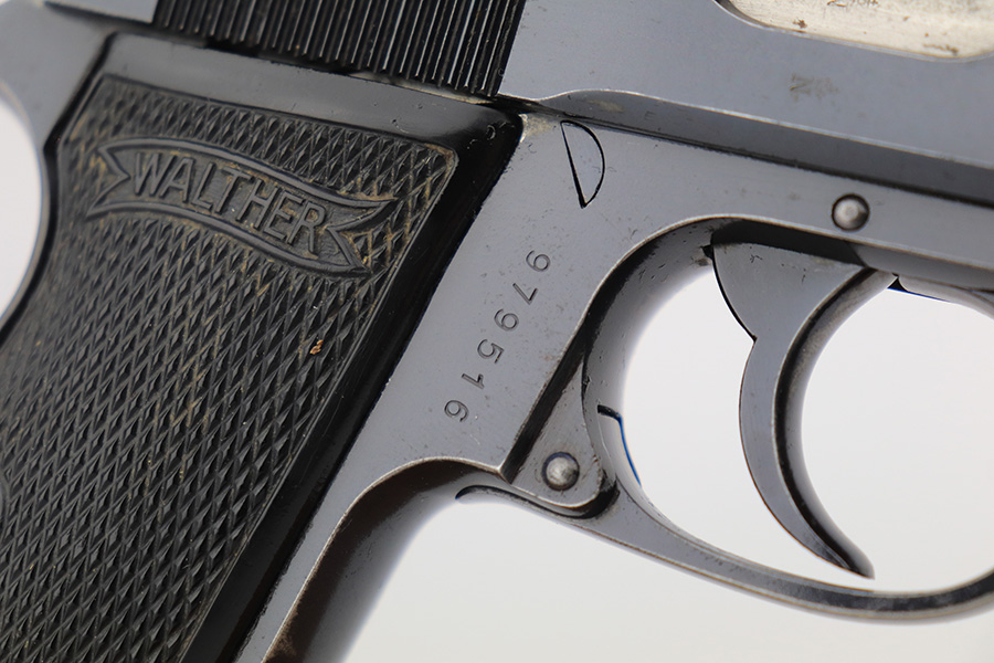 3/10/23 – This is an excellent example of a Walther PP sold in the commercial market in 1937. It is all matching and has the proper “Crown N” proofs. It has retained about 97% of its original high polish finish. Very minor muzzle wear, a few small spots of wear along the right side of the slide, and some minor dulling in the finish on the grip straps. Excellent black bakelite grips. Comes with a period-correct Walther banner only magazine. Excellent bore with strong rifling.