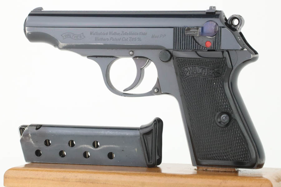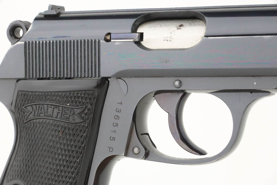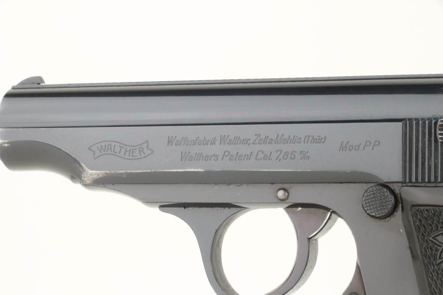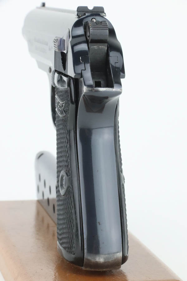 8/7/24 – This is an excellent example of a Walther PP sold in the commercial market in 1939. All matching and “Crown N” proofed. It has retained about 97% of its original high polish bluing with just very minor muzzle wear and one small spot of wear at the base of the back strap. Fitted with period-correct black bakelite grips and a period-correct finger extension magazine. Minty bore.