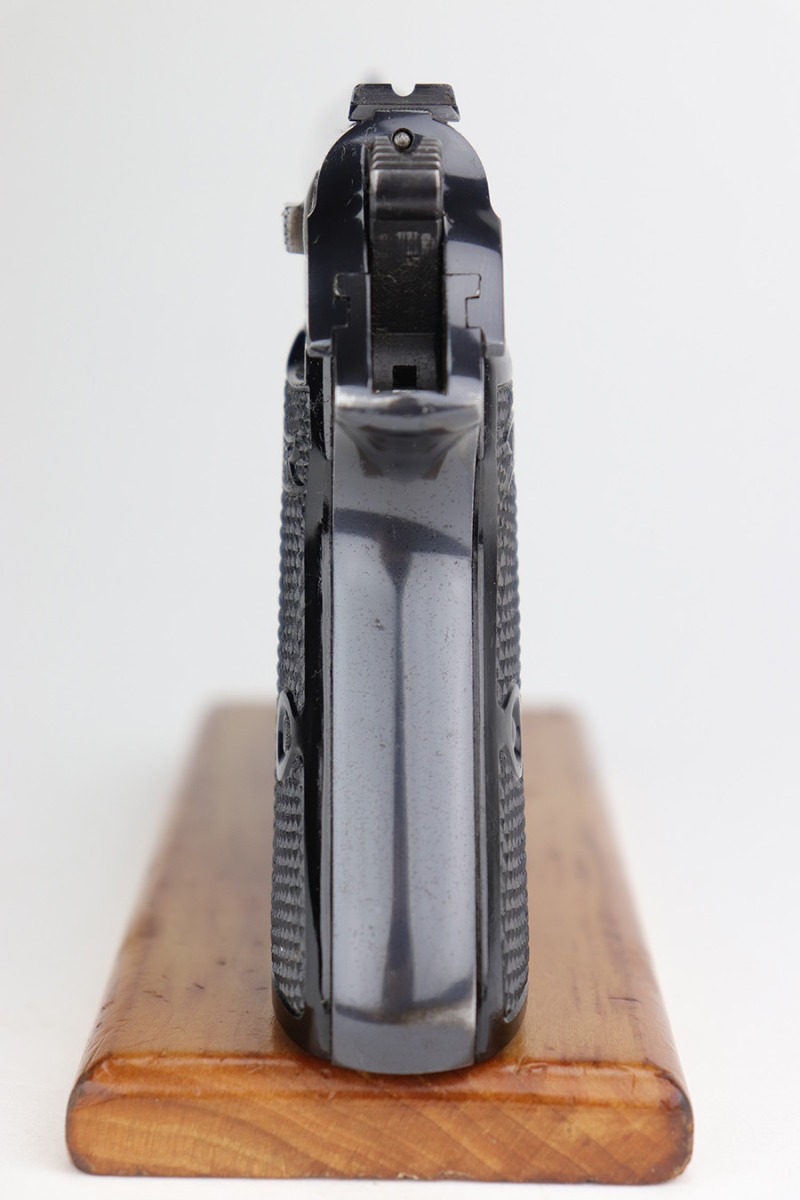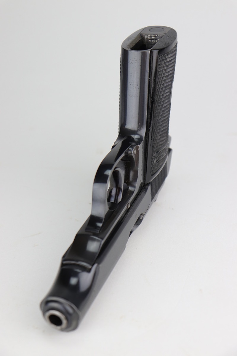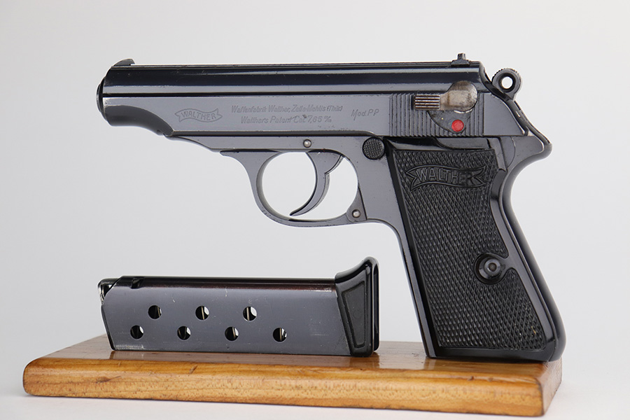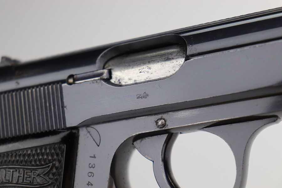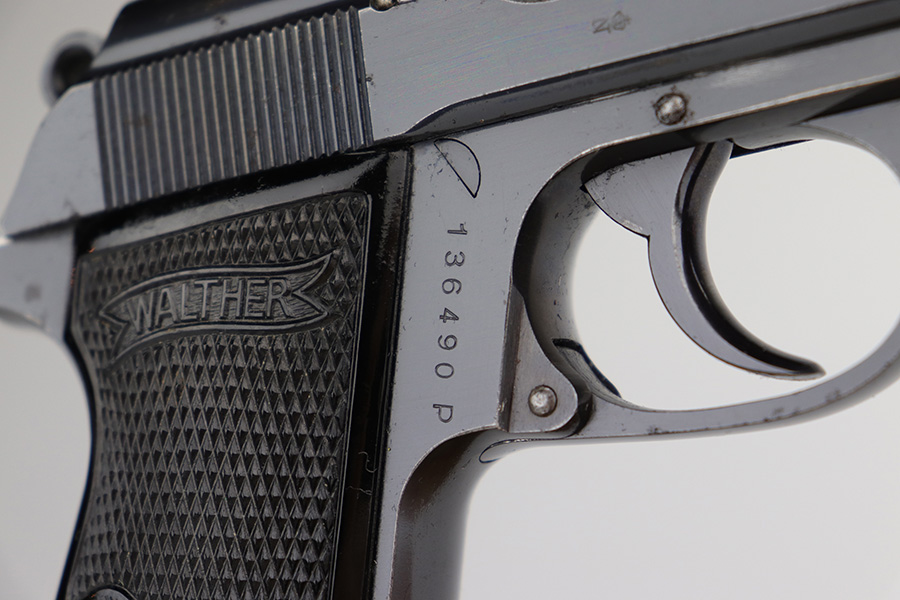 1/10/23 – This is an excellent example of a Walther PP sold in the commercial market in 1939. It is all matching and has the proper “Crown N” commercial proofs. It has retained virtually all of its original high polish finish. However, there are some tiny pits here and there along the slide. Minor pin-pricking on both grip straps. Fitted with an excellent set of period-correct black bakelite grips and comes with one post-war black finger extension magazine. The bore is like-new.