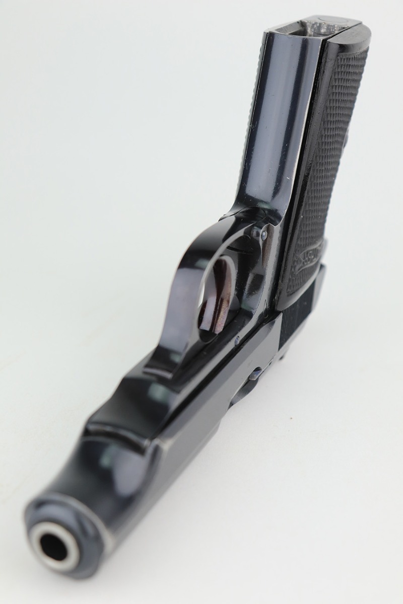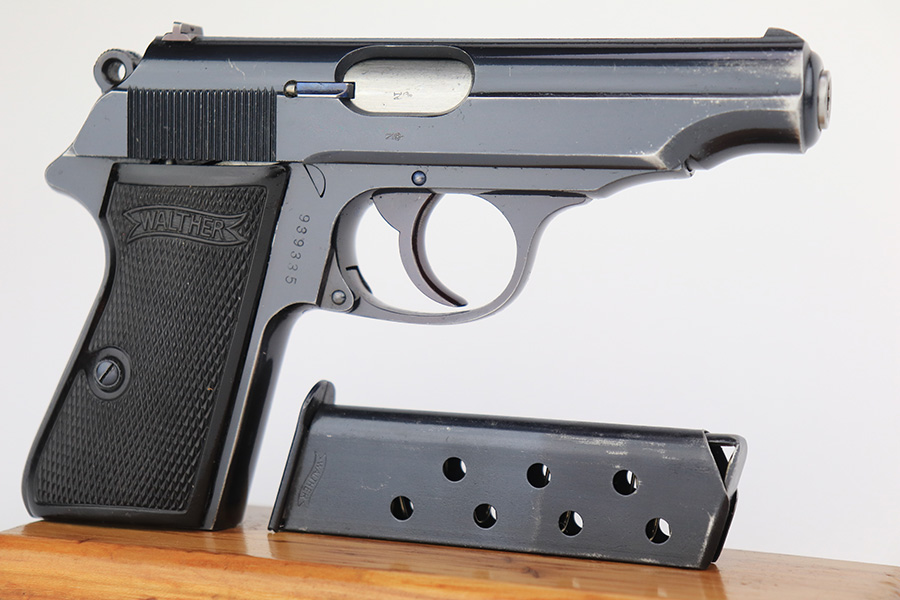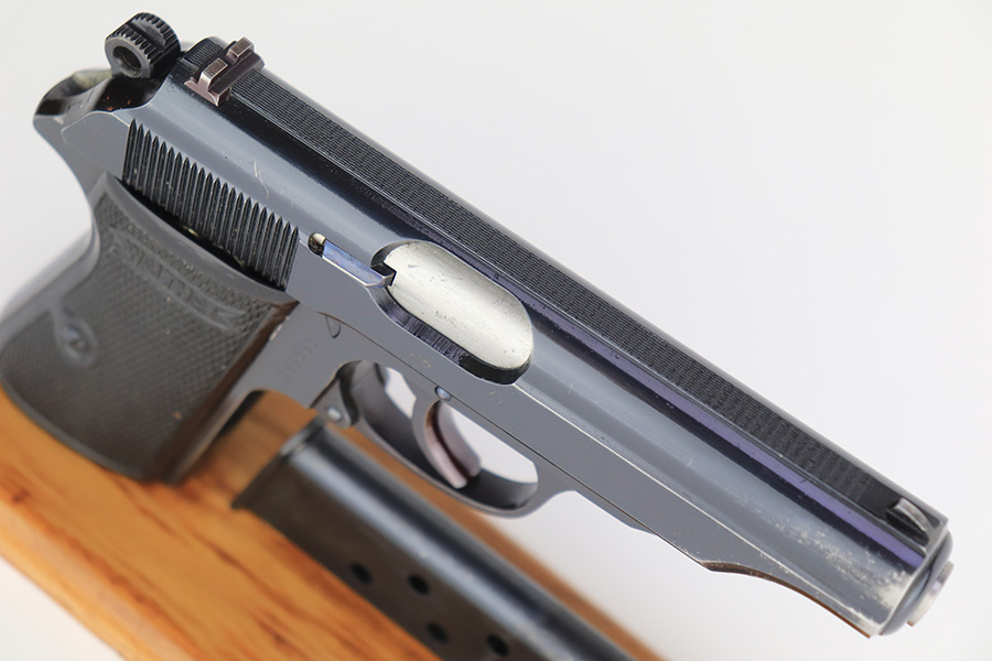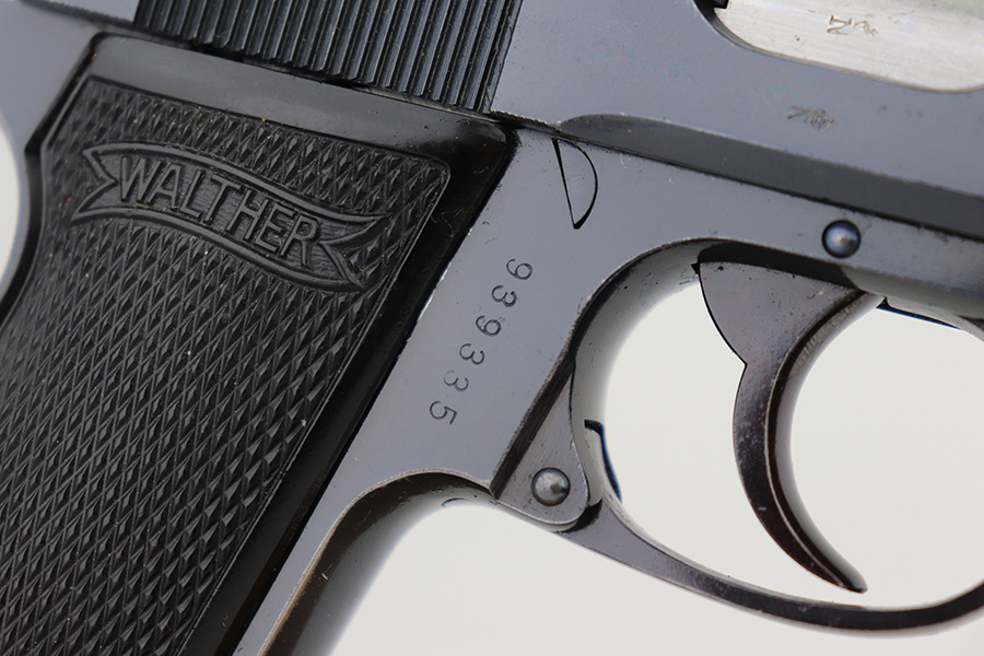 3/10/23 – This is an excellent example of a Walther PP sold in the commercial market in 1936. It is all matching and has the proper “Crown N” proofs. It has retained about 95% of its original high polish finish with minor muzzle wear. A few tiny handling marks here and there. Fitted with very nice period-correct black bakelite grips and comes with one proper Walther banner-only magazine. Mint bore.
