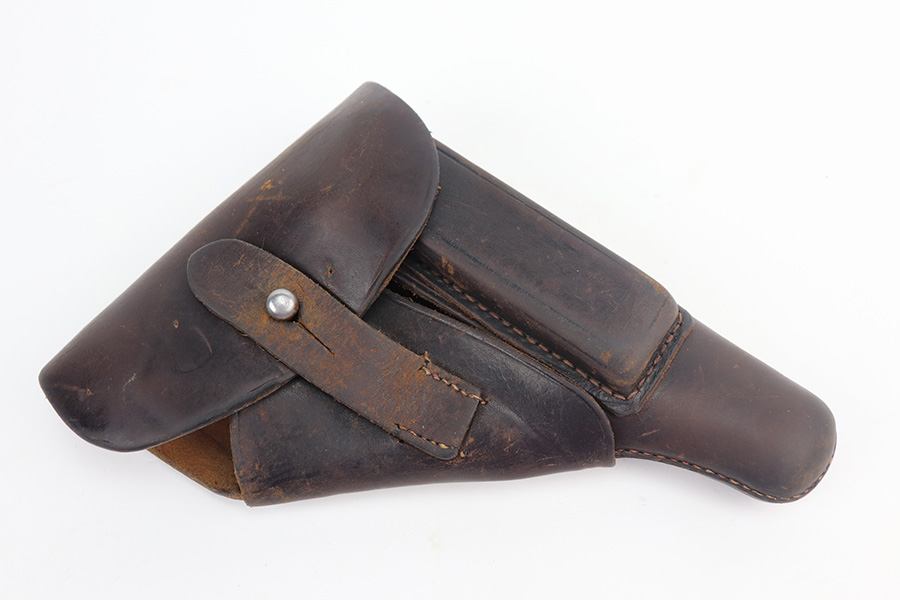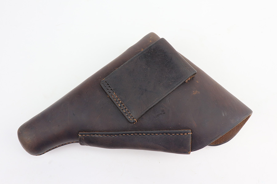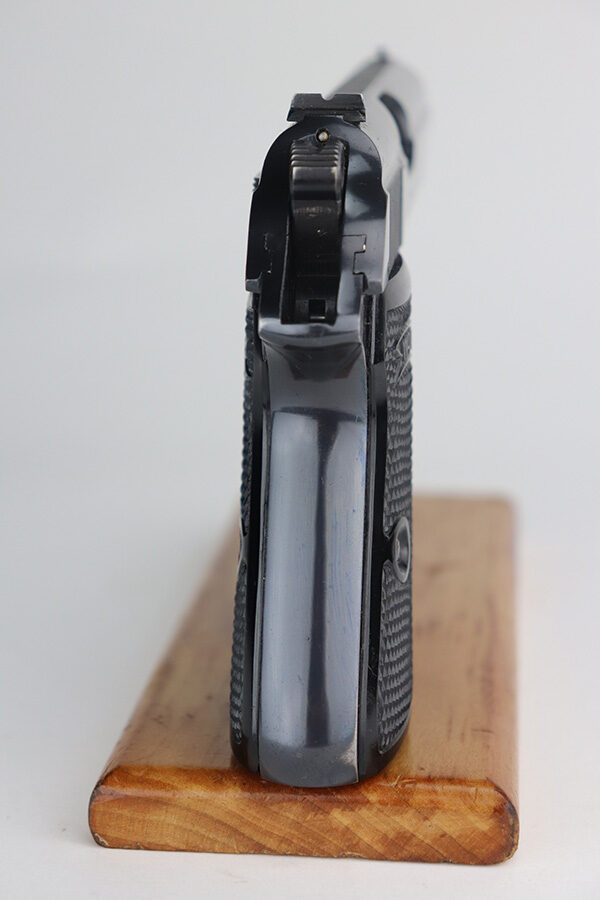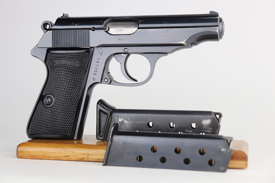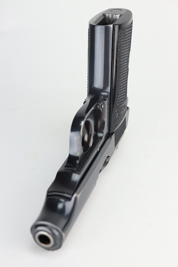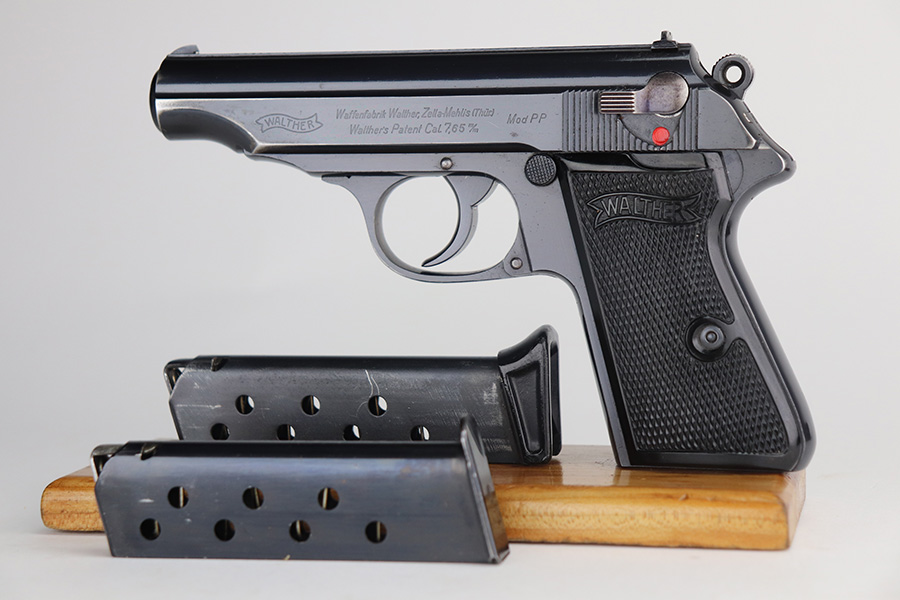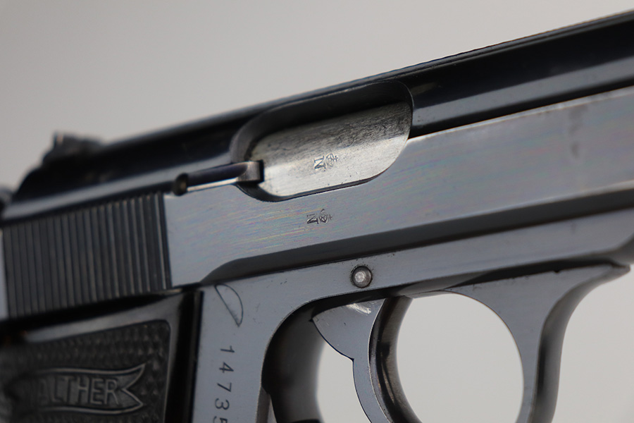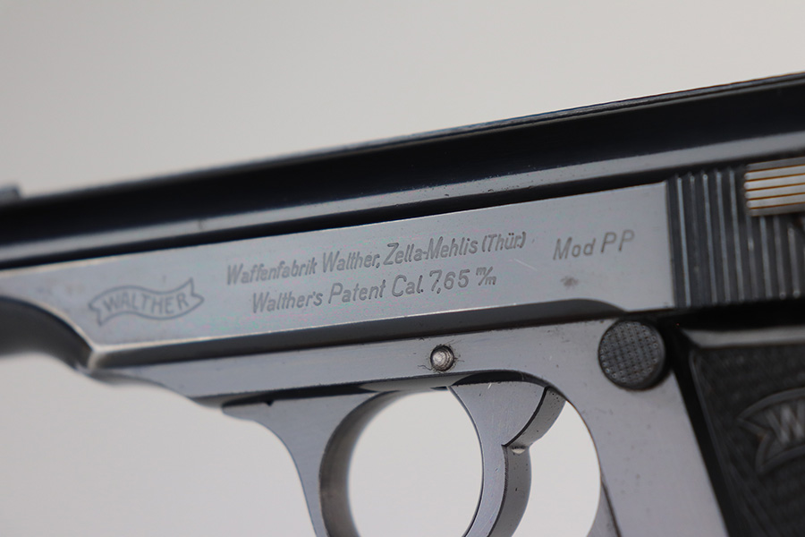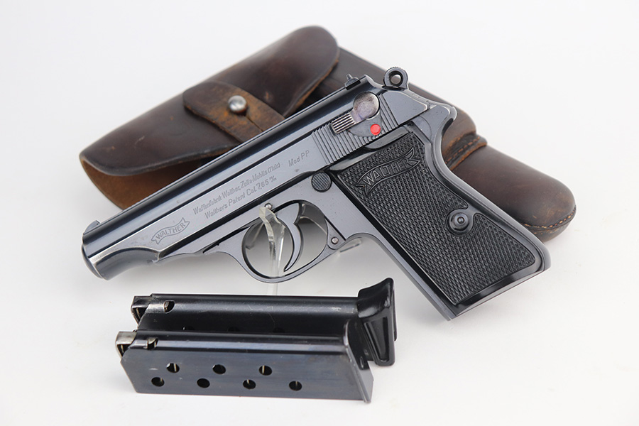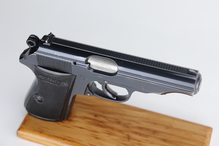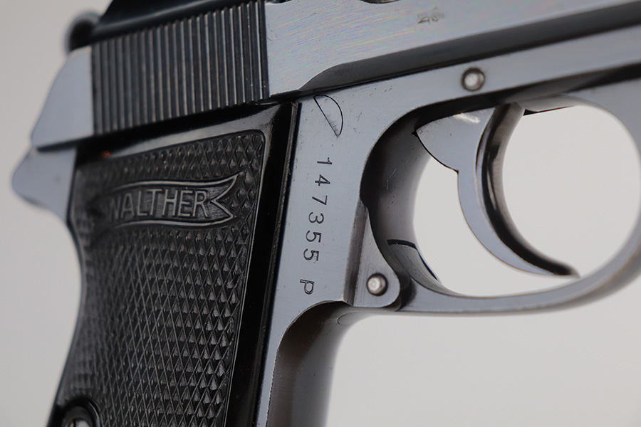 8/2/21 – This is an excellent example of a Walther PP rig sold in the commercial market in 1939-40. It is all matching and has commercial “Crown N” proofs. It comes with a nice generic holster, a black finger extension magazine, and a spare post-war flat-bottom magazine. It has retained about 95-96% of its original high polish finish. There is very minor wear on the high edges of the slide and around the muzzle. A few small spots of wear and oxidation along the right side of the slide. Comes with excellent grips. Excellent, shiny bore.