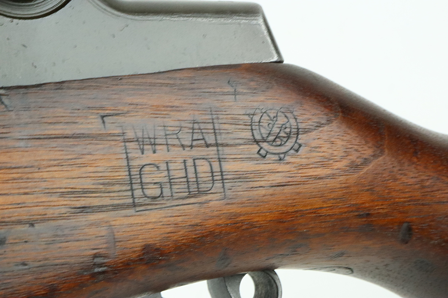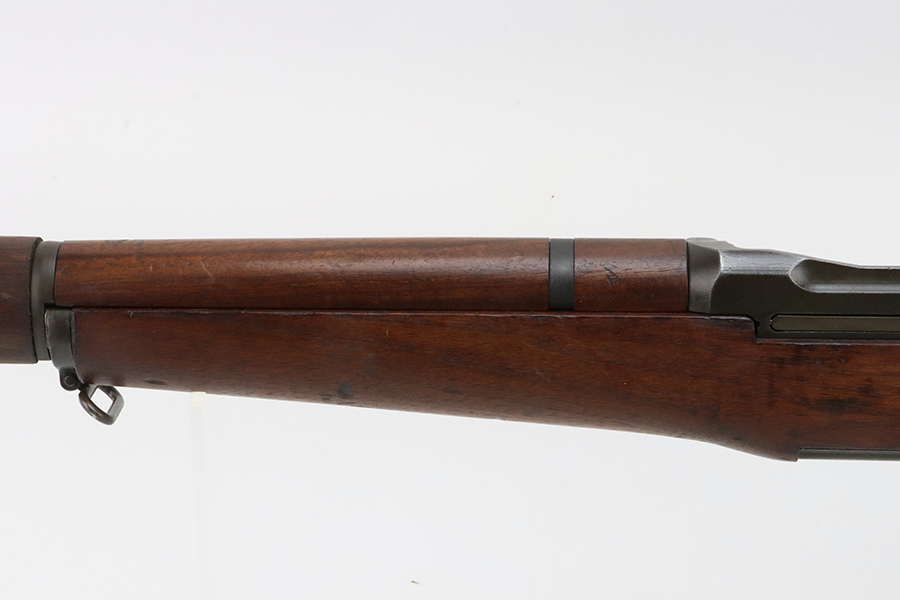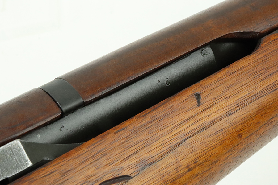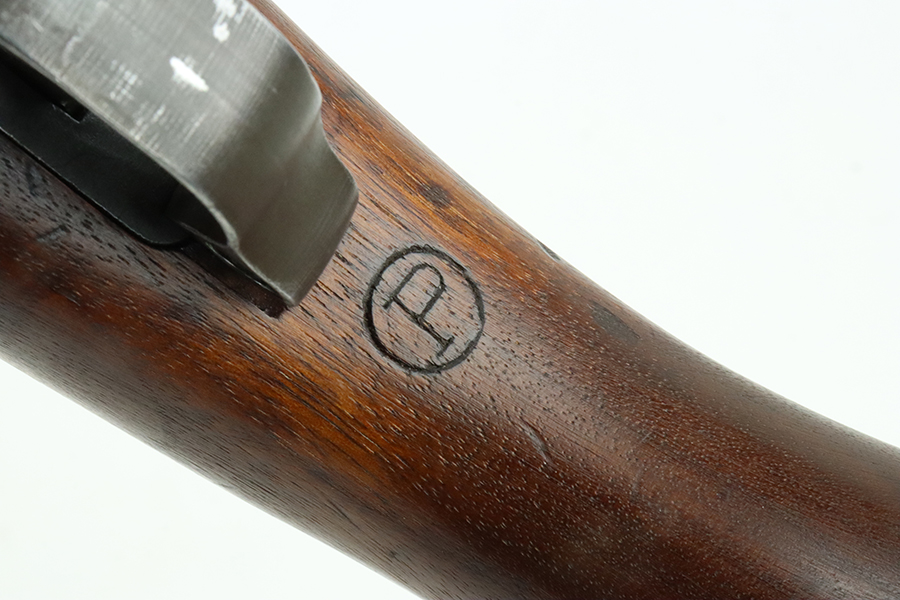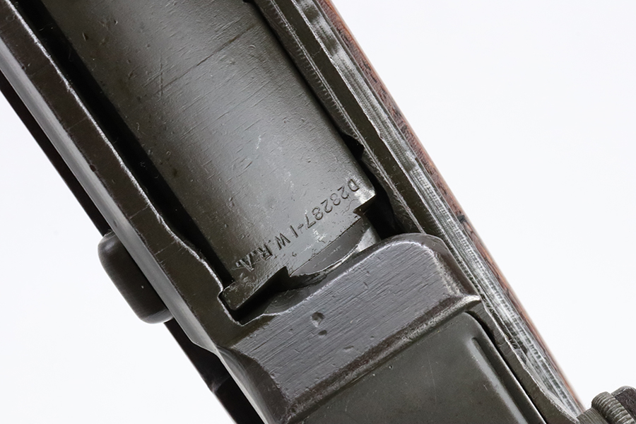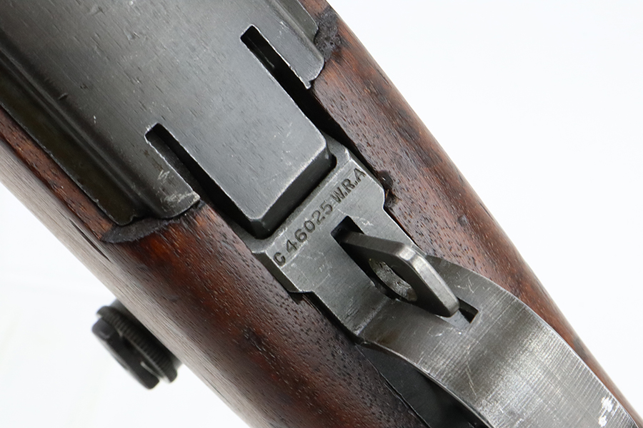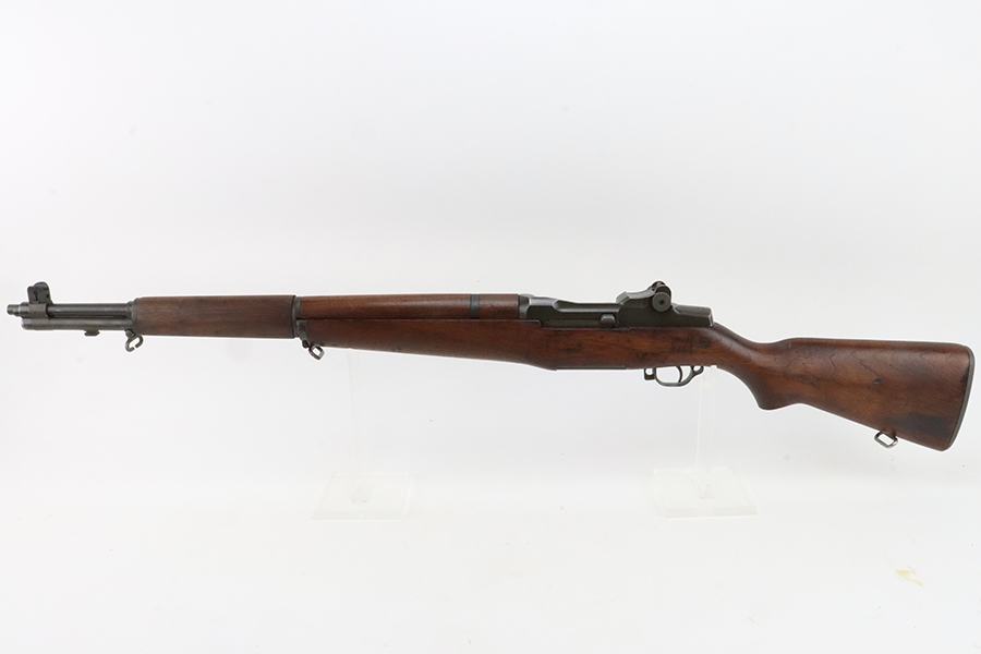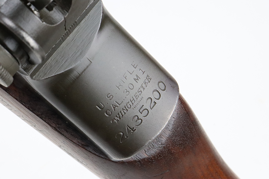2/3/24 – This is an excellent, all-correct example of a Winchester M1 Garand issued to the US military during WW2. The serial number on the receiver dates to about May of 1944, the barrel and internal parts are Winchester marked, and the stock has the proper Winchester “WRA GHD” and cross-canon cartouches. The original finish on the metal parts rates about 96-97% with just minor high edge wear on the receiver. The wood furniture is excellent, showing below-average signs of wear. Mint bore. Muzzle reading: 2. Throat reading: 2. Just an excellent, all-correct example.
