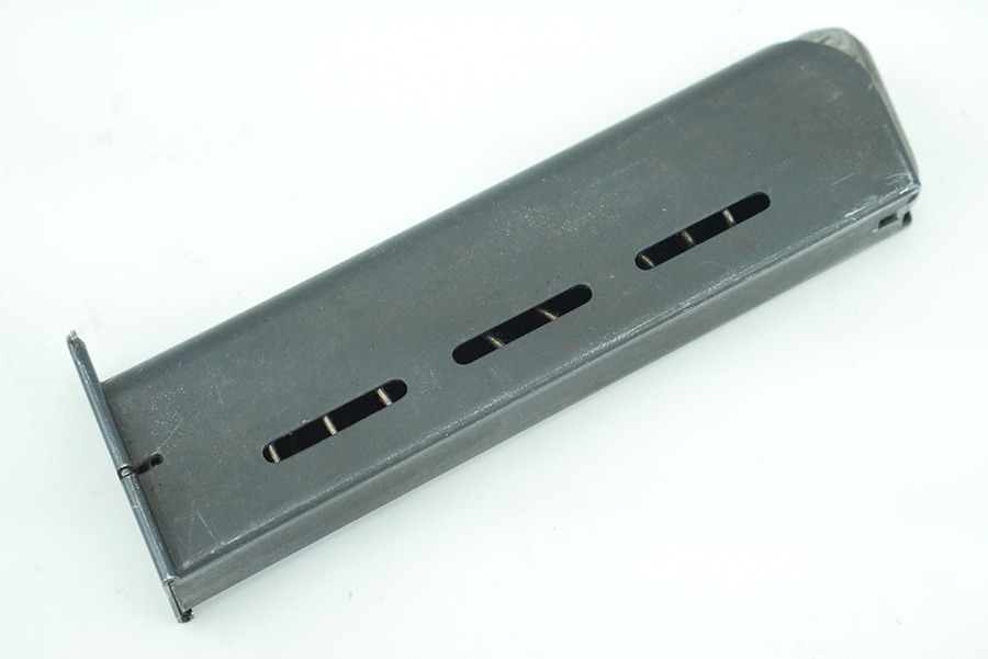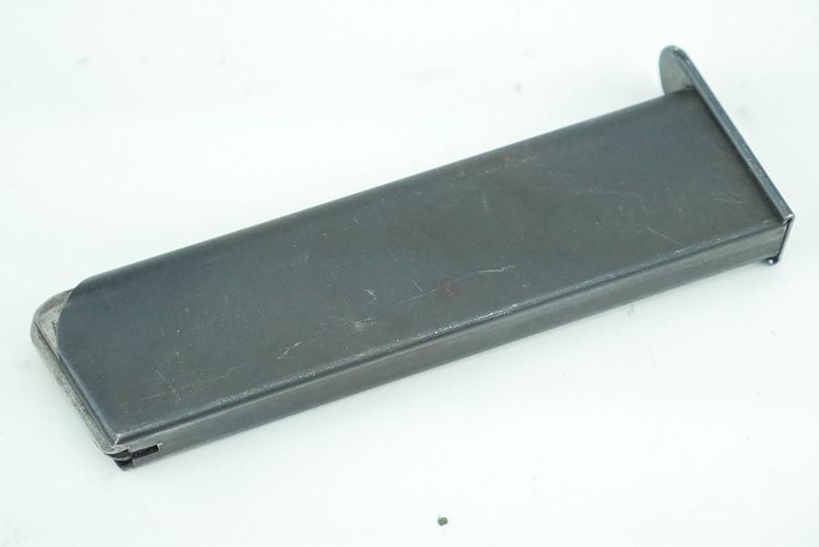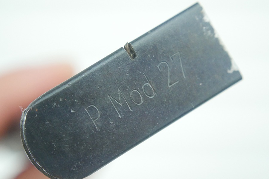 10/17/24 -Original and excellent CZ P. Model 27 magazine. Phosphate body and blued base. Spine has minimal use wear. Base is stamped with “P. MOD 27”. The base of this magazine has slight finish loss from the magazine catch. The spring is still strong and fully functional.