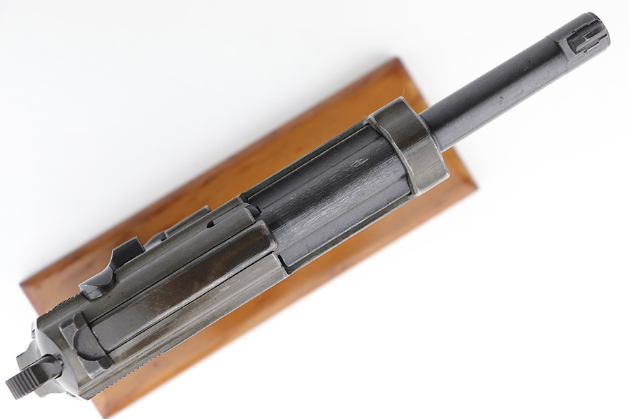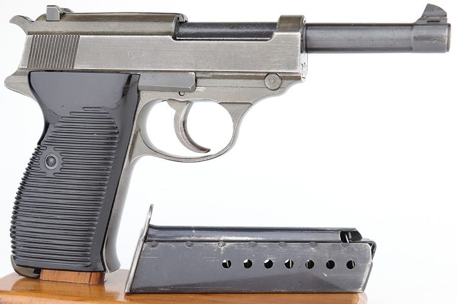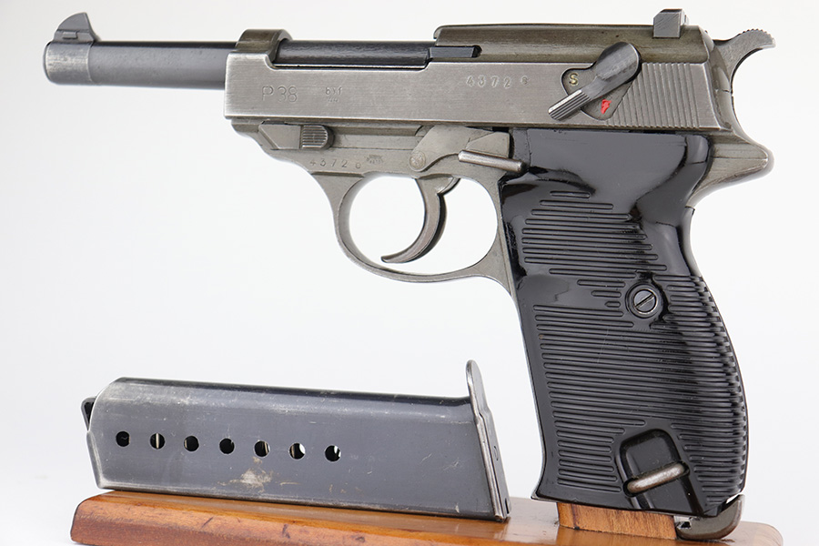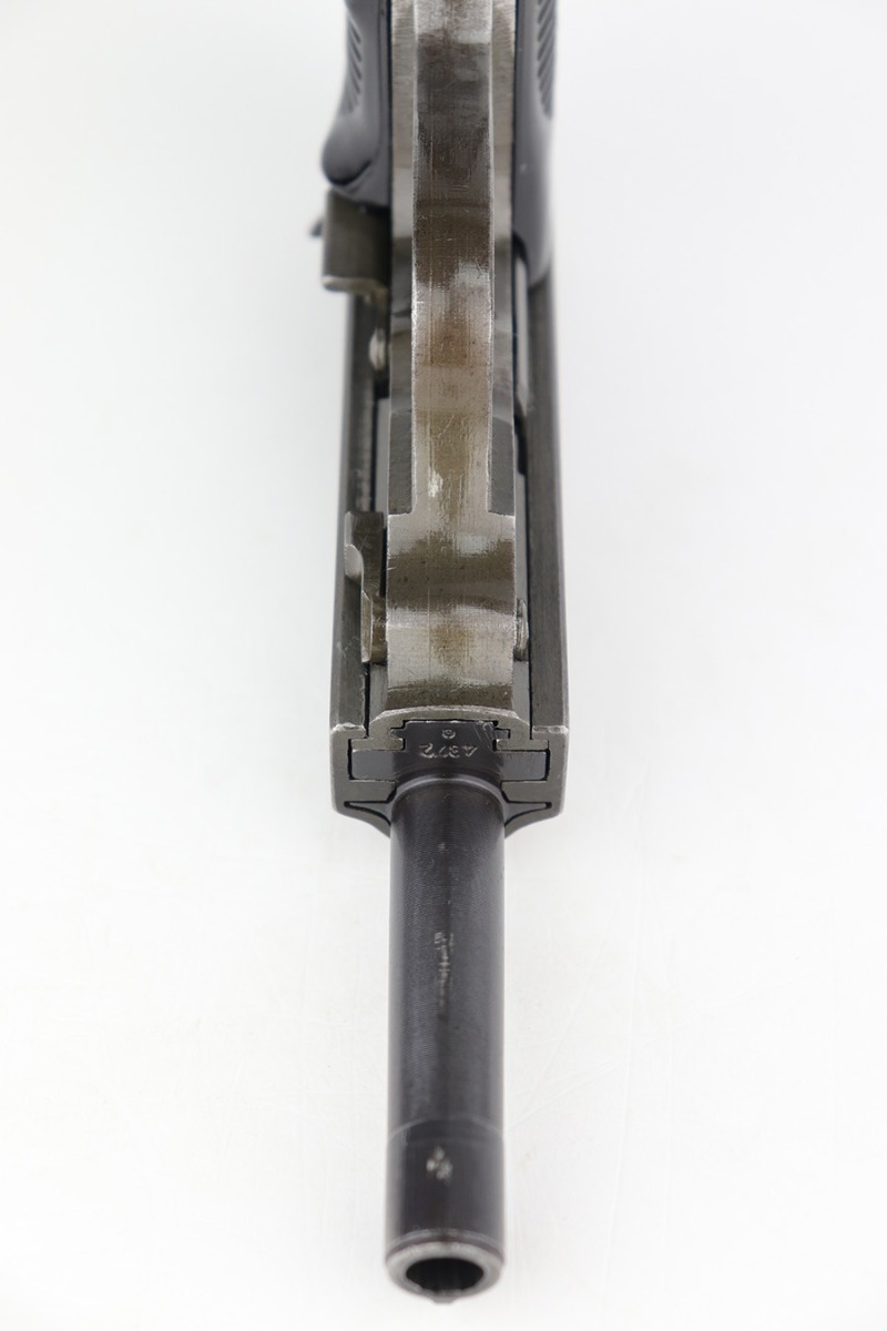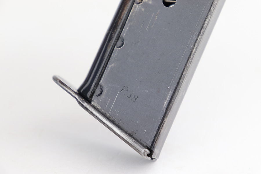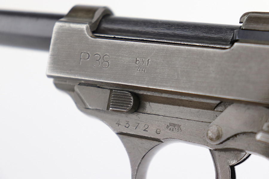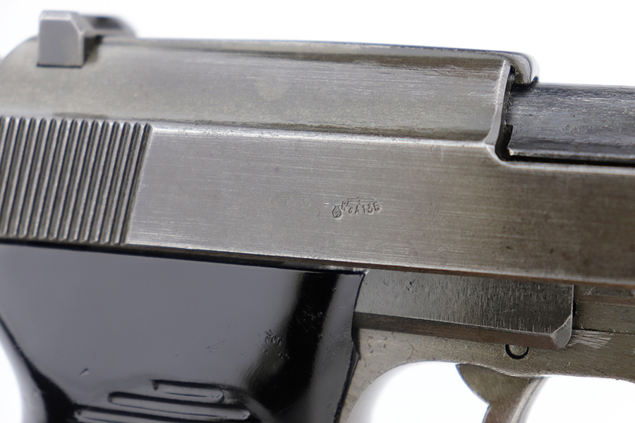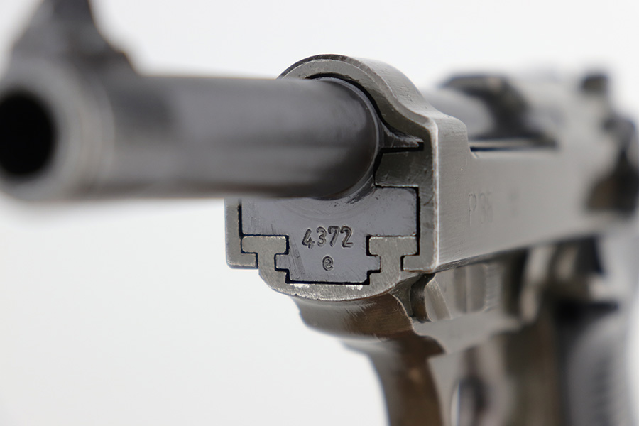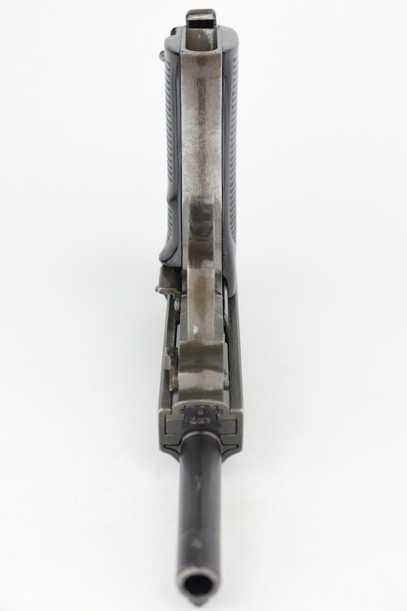 1/5/23 – This is an excellent Mauser P.38 with ‘byf 44’ slide and dual-tone finish. The ‘e’ block examples actually date to early in 1945, and this one features a phosphate frame/slide with blued barrel. Only about 18,000 dual-tones were produced, compared to ~125k of the other ‘byf 44’ variations. It has minor wear on the muzzle and front edges of the slide, and some thinning on the front strap. Excellent bore and grips. Magazine is E/135 marked. Fully functional, including de-cocker.
