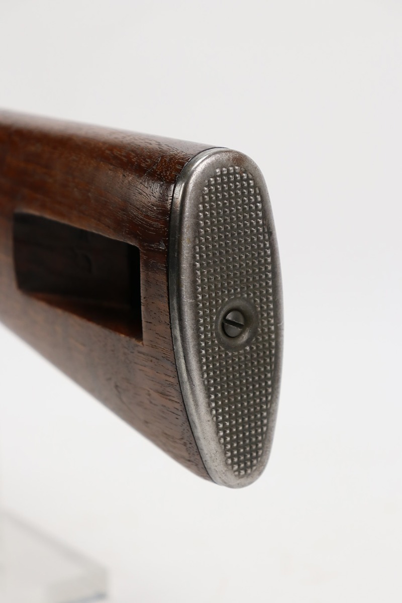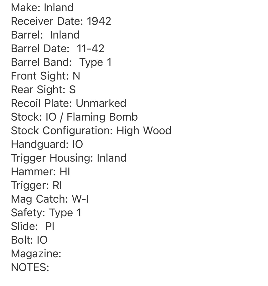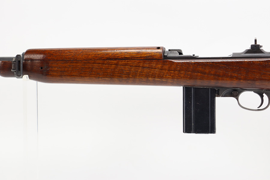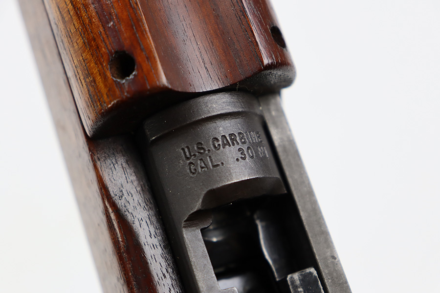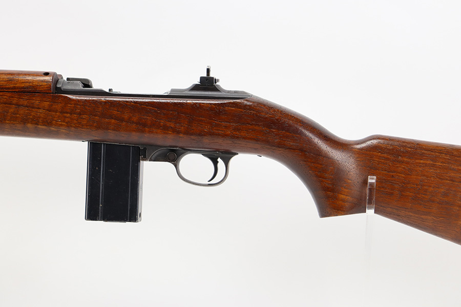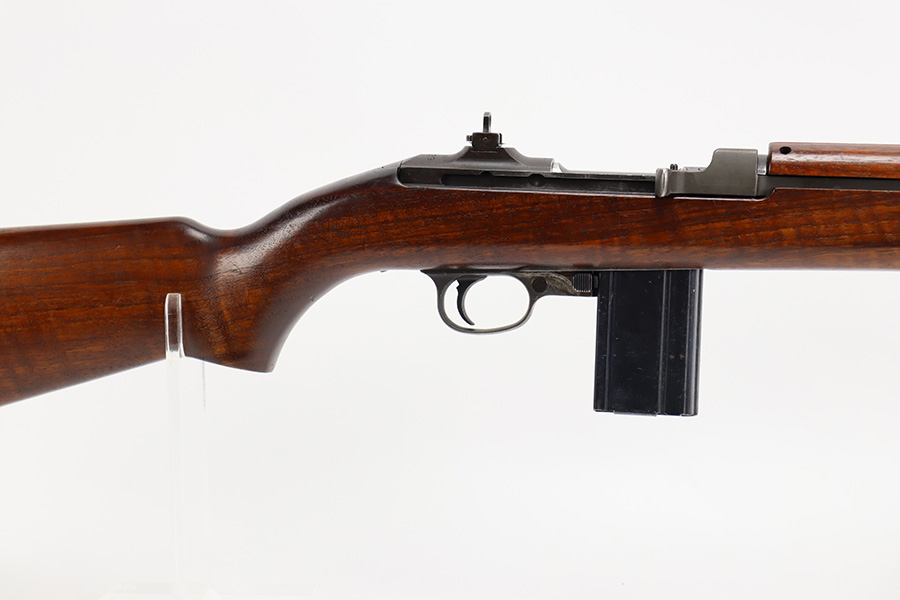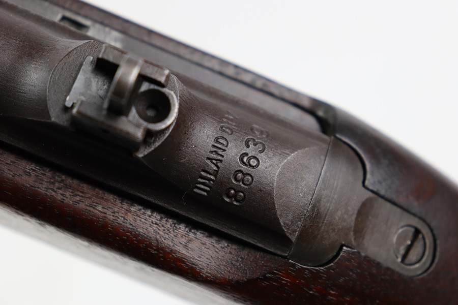 7/14/23 – This is a scarce, five-digit Inland M1 Carbine from 1942 with all correct parts. A full parts list is included in the photos of the listing. Excellent, original finish throughout with minor thinning on the barrel, and a bit of wear on the trigger guard. Mint bore. Inland barrel dated to November of 1942. Excellent, early Inland stock with no cracks or chips.