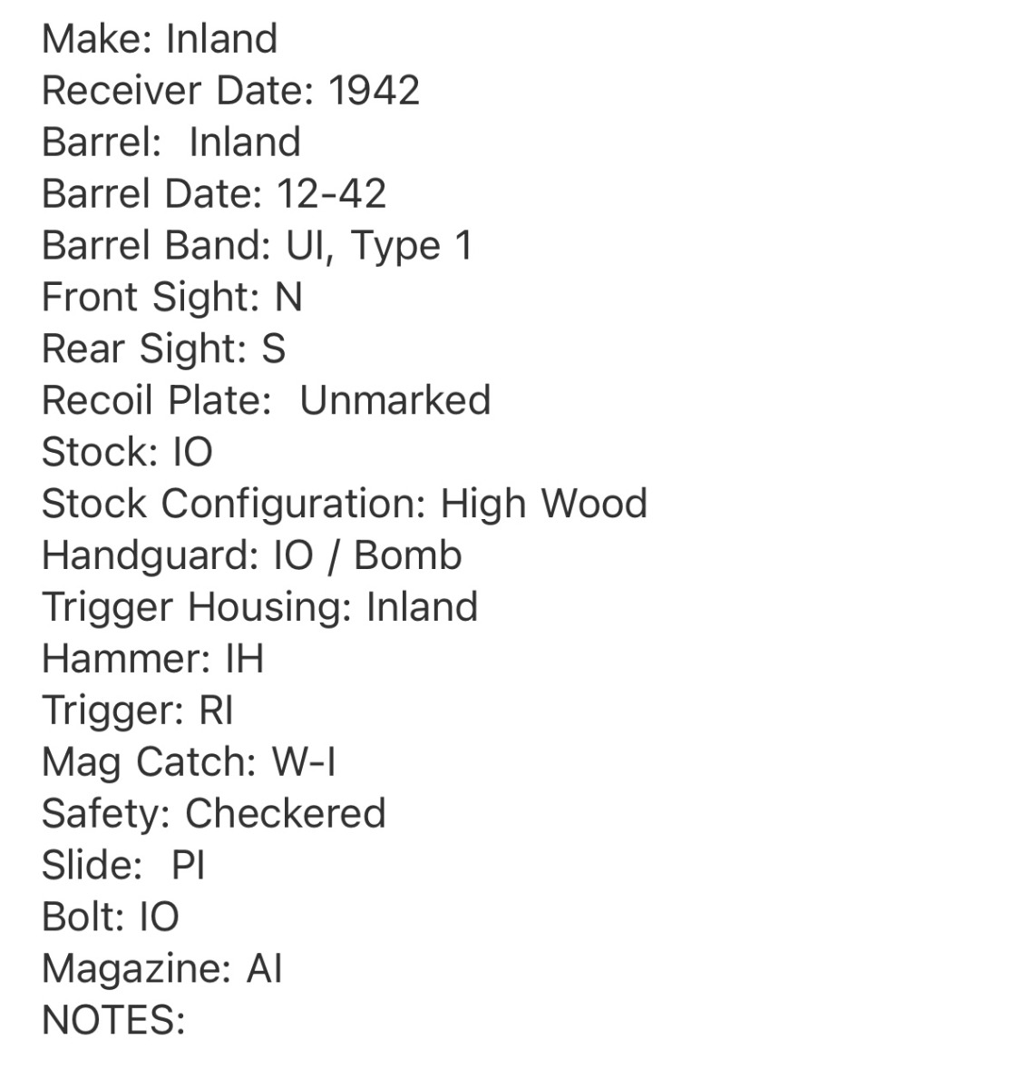 10/12/23 – This is a terrific example of an early Inland M1 Carbine from 1942. All original Inland parts throughout (full parts list is included in the photos of this listing). Excellent finish with only light handling wear/surface scuffs in a few areas. Mint bore. Proper high-wood Inland stock with 1942 receiver and barrel. The stock shows little to no handling wear with sharp markings and no defects.