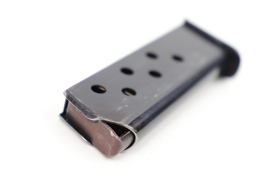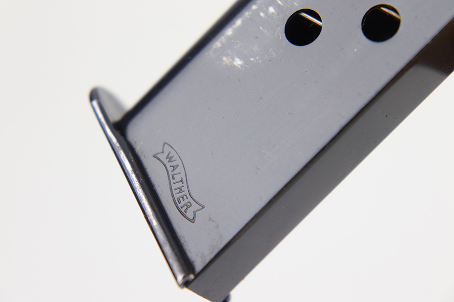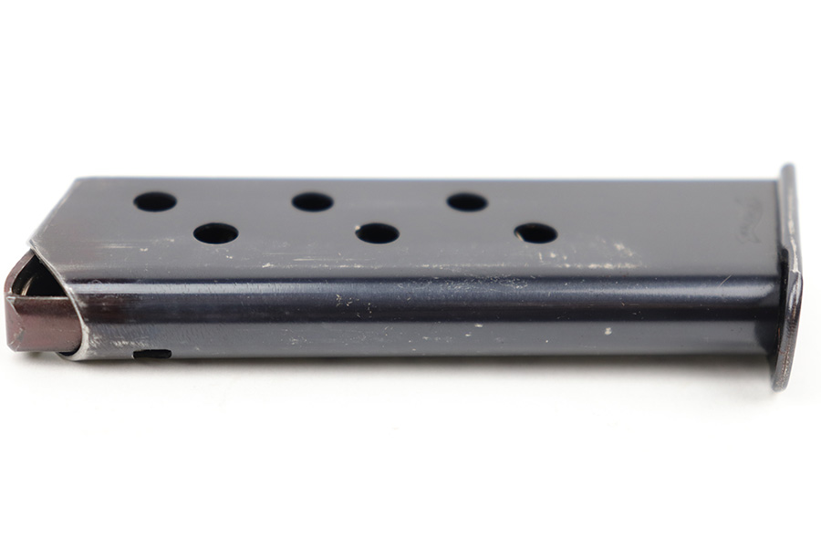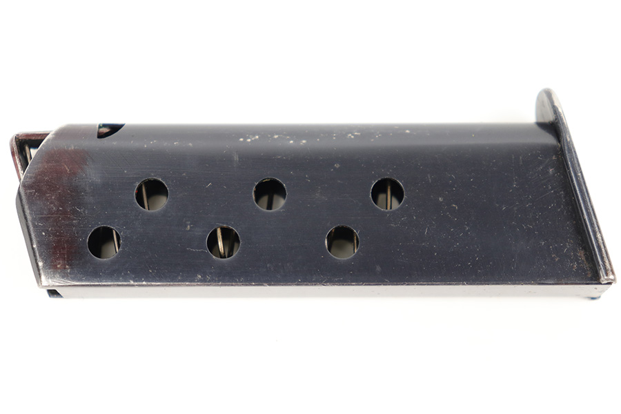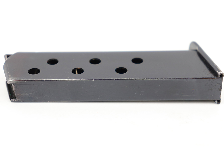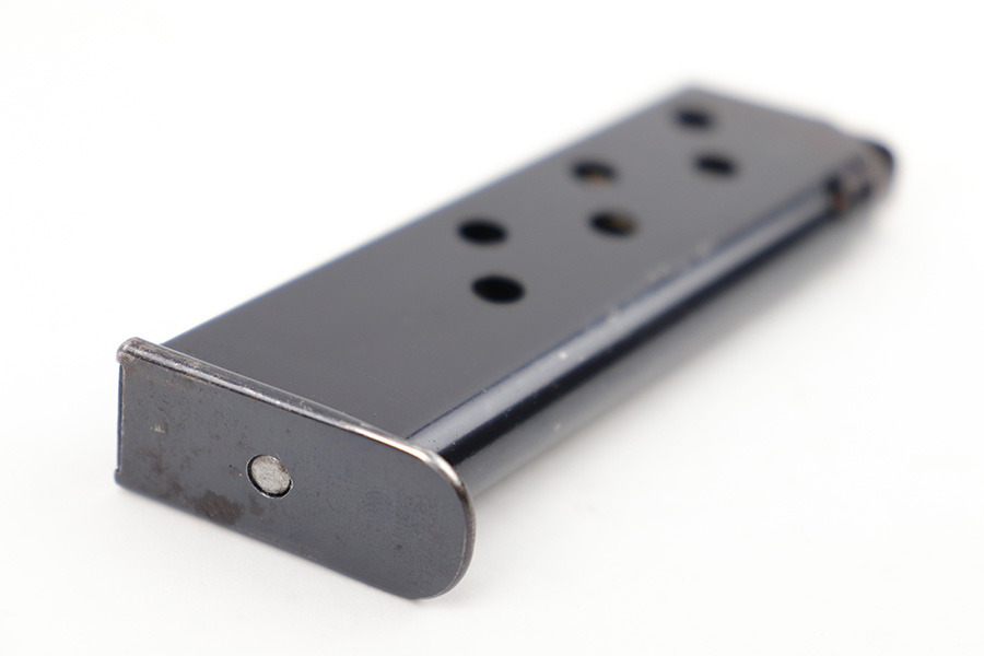 4/5/23 – This is an excellent, early variation Walther PPK magazine from the 1930s. The magazine has a very clean high polish finish and Walther banner stamped on the left side of the tube. There’s one small spot of surface wear / patina on the baseplate. Strong, fully functional spring.