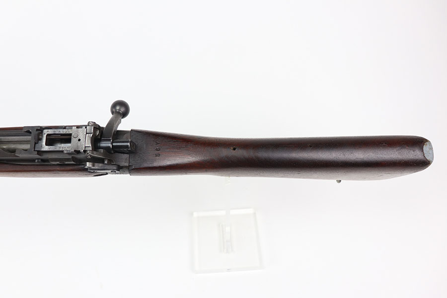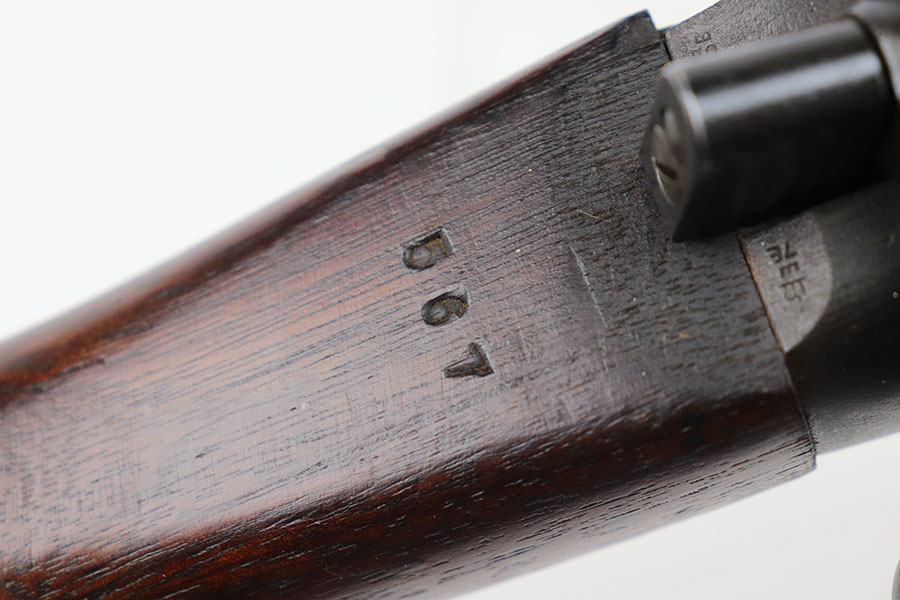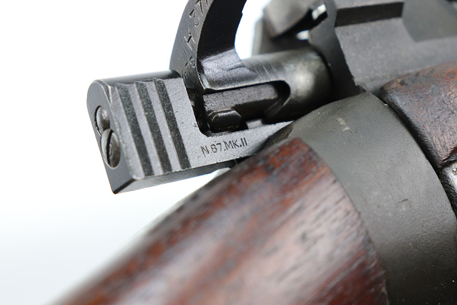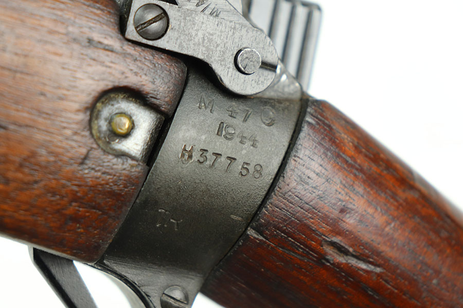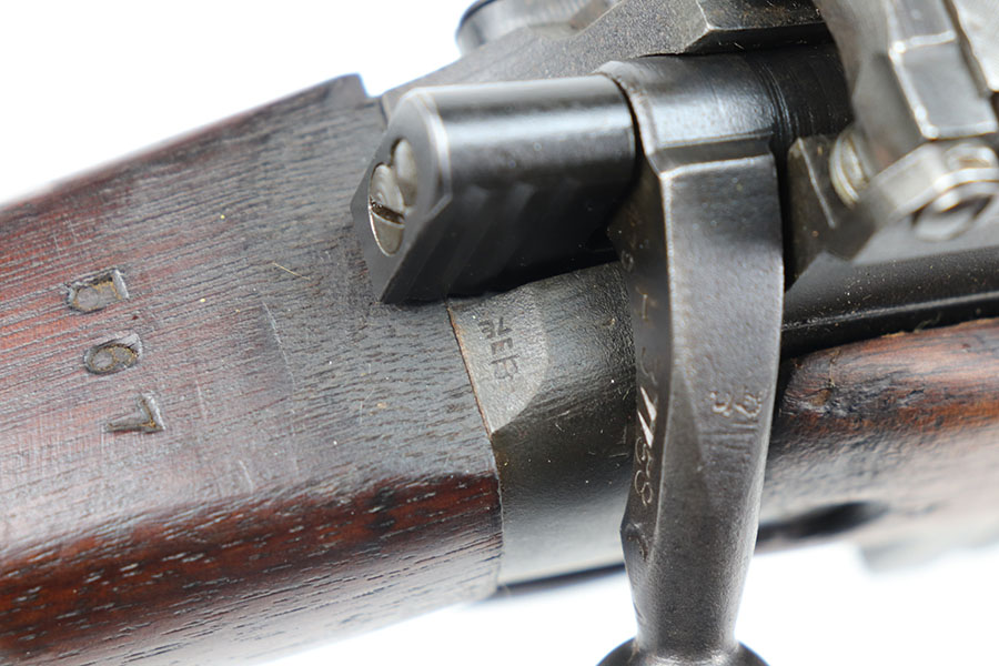 1/28/21 – This is a matching and original Enfield No4 Mk1 “T”, also denoted as the M47C when produced by Birmingham Small Arms. The rifle is mounted for the sniper rifle configuration, and cheek pad removed. Original finish is excellent on the receiver, some wear on muzzle and trigger group. Receiver is dated to 1944. Excellent bore and stock.