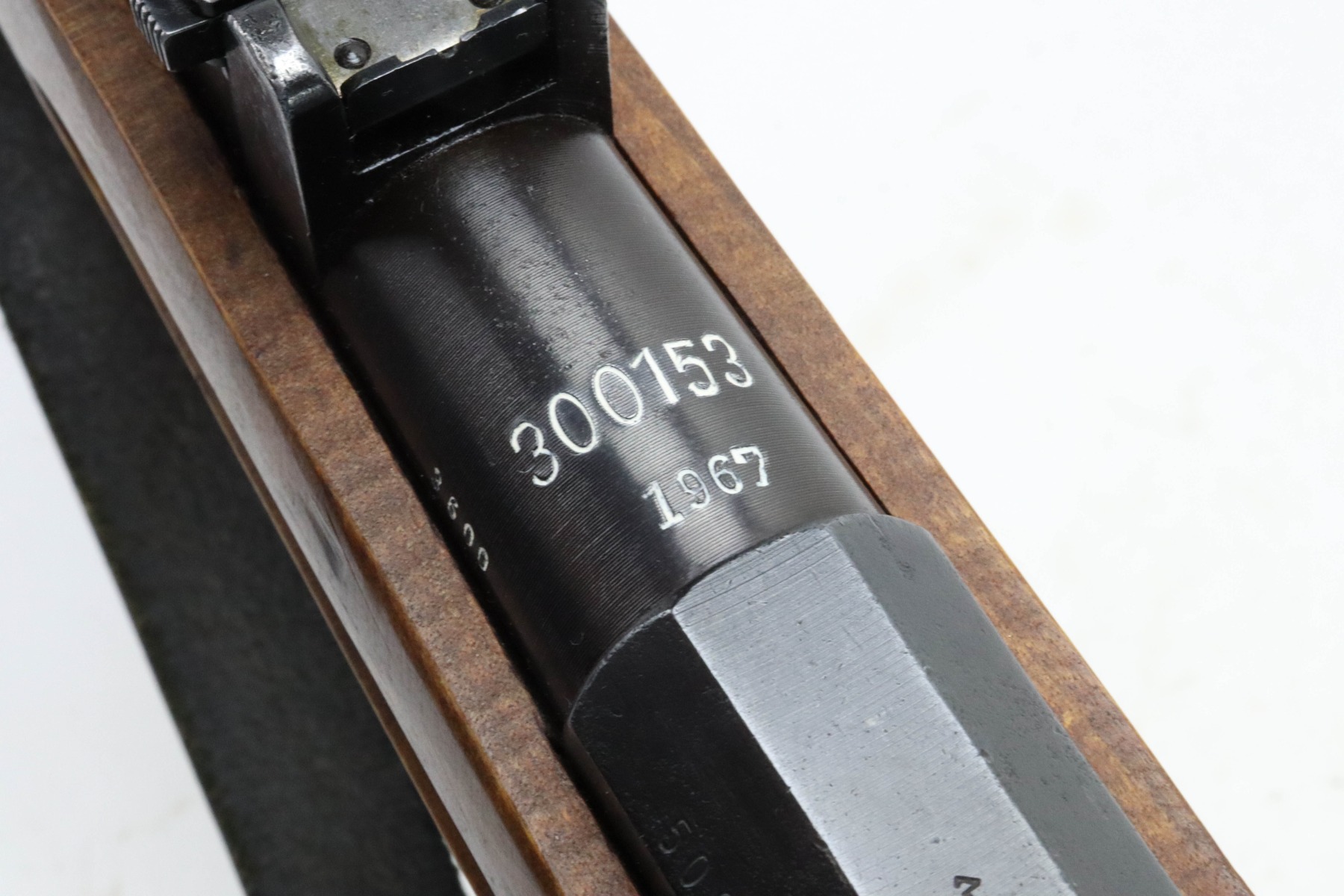 10/17/2024 – For sale is an excellent Finnish M39 rifle assembled in 1967 at the AV1 Arsenal. This rifle was assembled using leftover parts and used a recycled Izhevsk receiver made in 1894. The M39s are considered the pinnacle of the standard infantry Mosin Nagants with Finland replacing and replacing every parts except the receiver and buttplate. This rifle has excellent bluing throughout with very minor handling scratches visible. The stock is equally excellent with sharp edges. The stock is a post-war stock with square splice fingers. The bore is very bright with great rifling and there’s an import mark on the bottom of the barrel. The rifle is “Finnish Matching” with the barrel shank and bolt handle matching together.