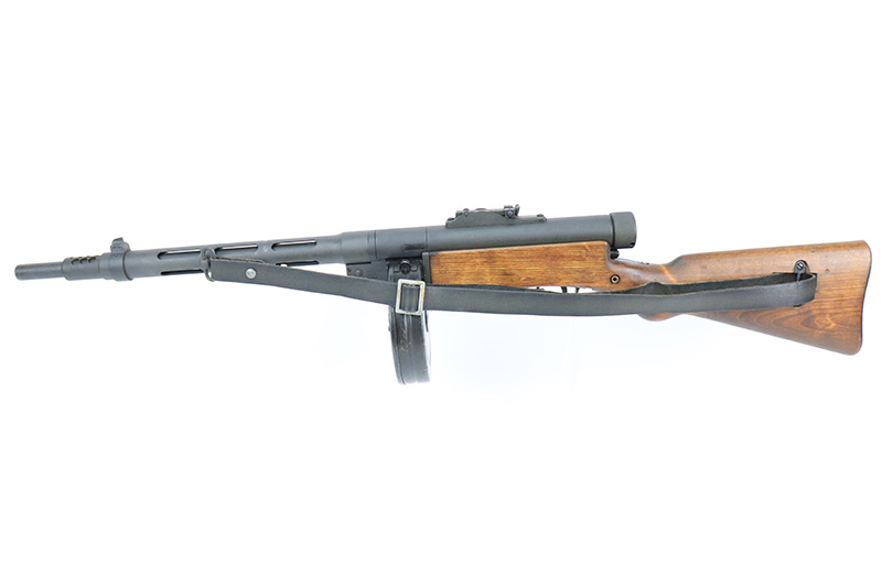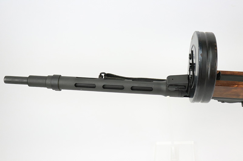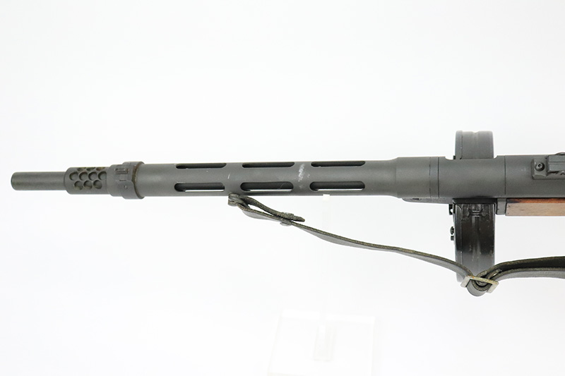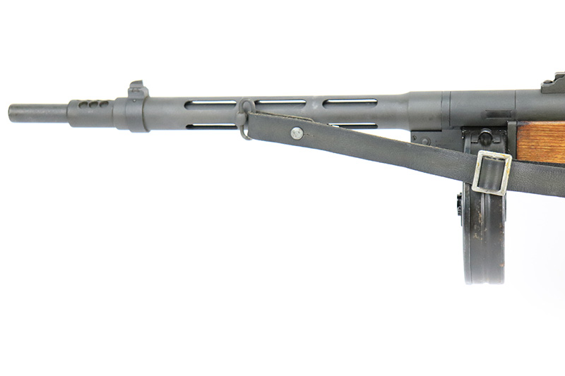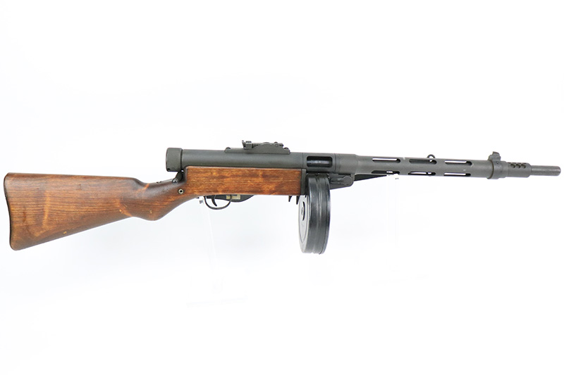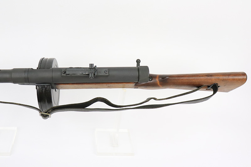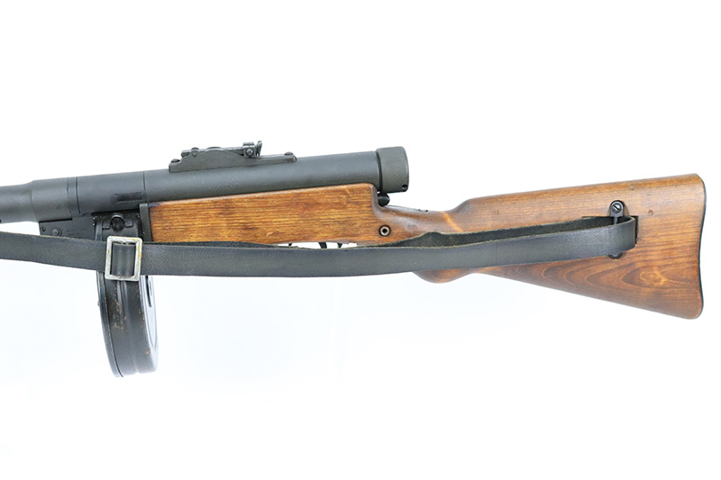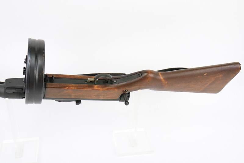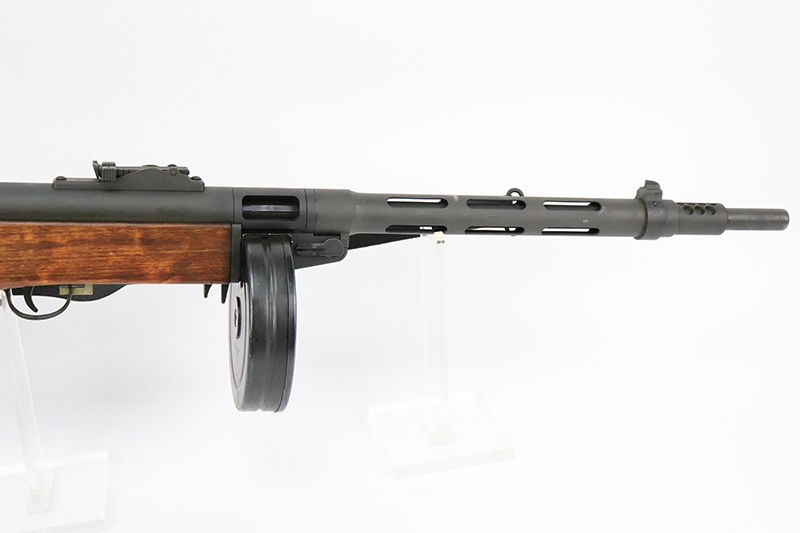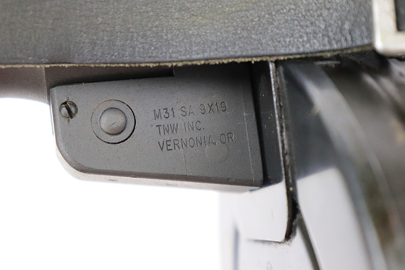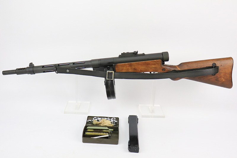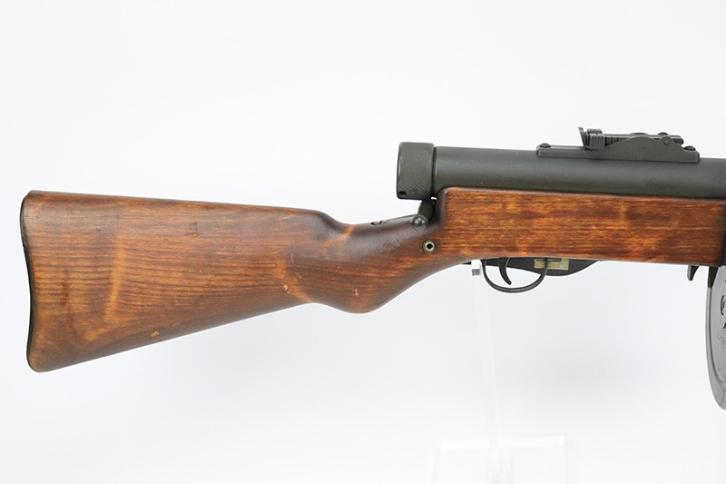 4/2/24 – This is an excellent Suomi M31 built by TNW Inc. of Oregon. These kits were built from Finnish KP31 submachine guns and converted into semi-autos. This rifle is in excellent condition with minimal blemishes to note, just one small area of finish loss on the top of the barrel and some very minor thinning towards the front of the muzzle. Wood furniture shows some minor dings here and there, but no cracks or major signs of damage. Excellent bore with strong rifling. This example comes with one stick magazine and one Suomi drum magazine.