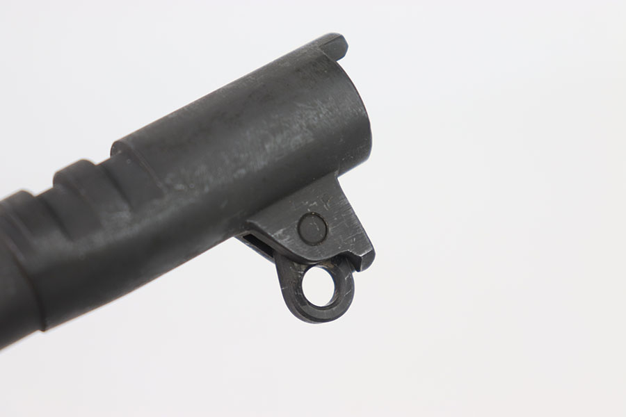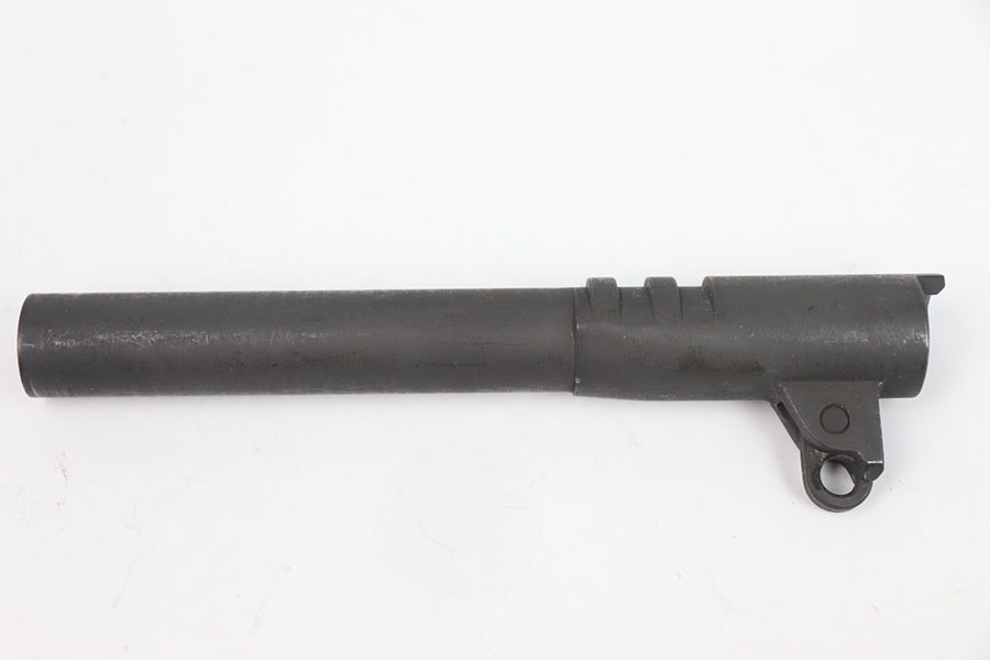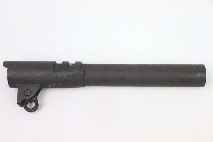 5/31/24 – This is an original Flannery Ithaca M1911 barrel. This barrel is marked with a P on the left side of the lug and a F on the right side of the lug. The barrel has an excellent dulled finish with an excellent+ 9/10 bore. The bore has no pitting or speckling just a few minor scratches which comes from been shot before. Comes with a link and pin.