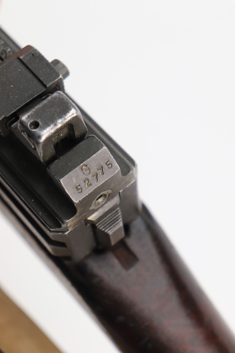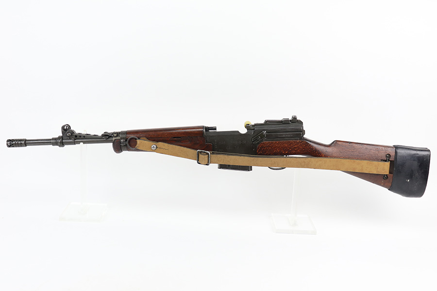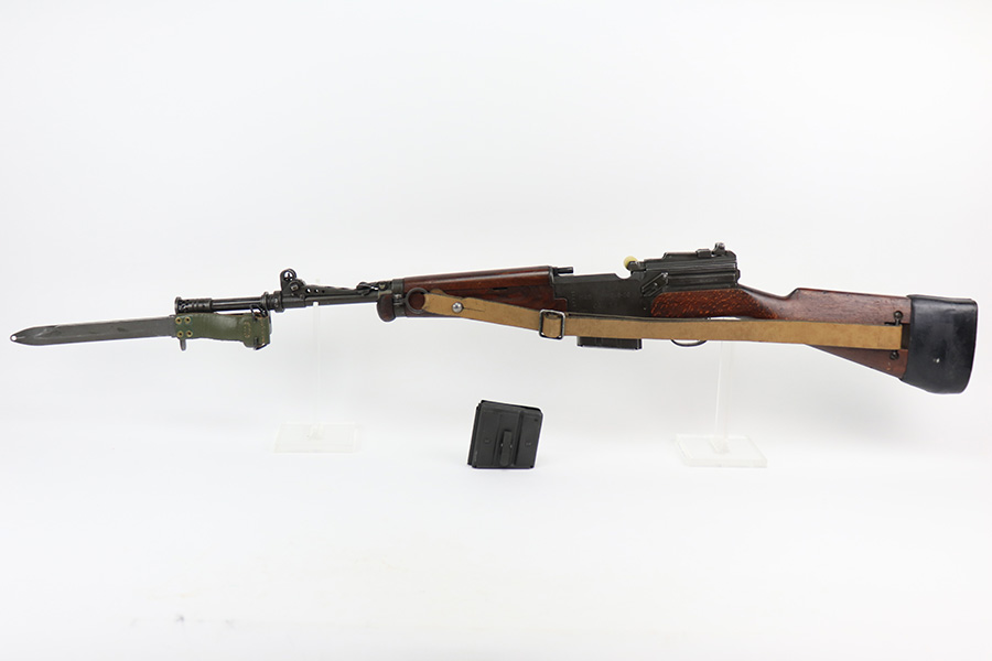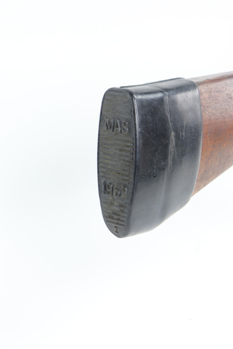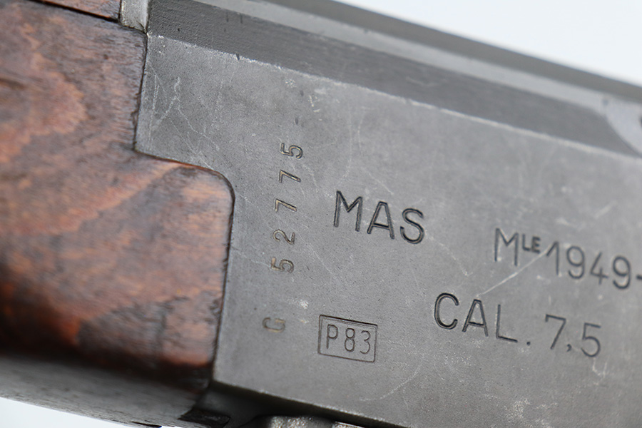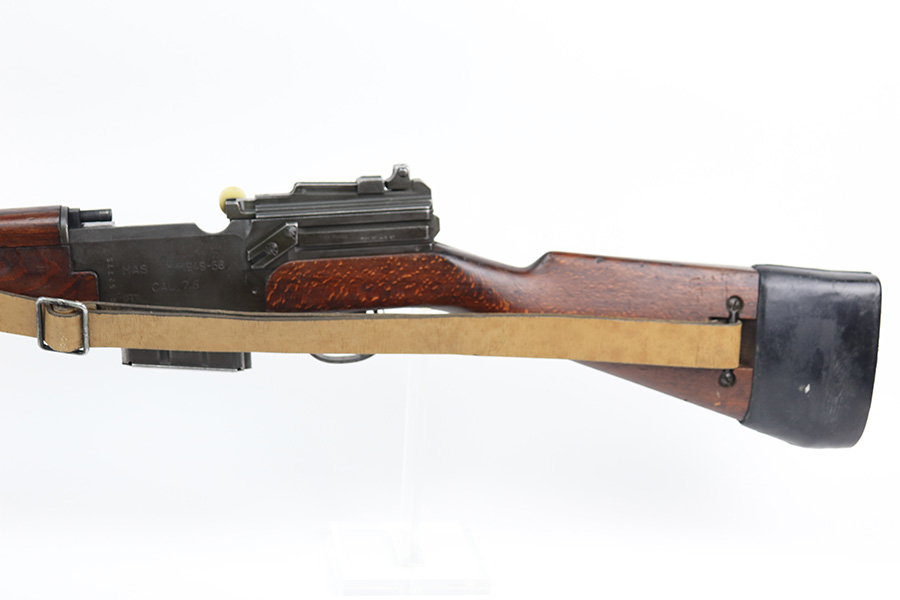 3/3/22 – This is a very nice example of a French military rifle known as the Model 1949-56 and produced by MAS. The MAS 1949-56 is a reliable, accurate, easy to maintain semi-automatic rifle with a detachable 10-round magazine and a side rail designed to allow for attachable rifle scopes. The MAS 49-56 is the 1956 adaptation of the MAS-49, which was adopted as standard issue for the French army in 1949. The 49/56 improved upon the original model based on its usage in Algeria, Indochina, and the Suez Crisis. The 49/56 was made shorter and lighter, a knife bayonet was added, and the built in grenade launcher was altered to combine a compensator with a rifle grenade launcher that fired 22mm rifle grenades. The MAS-49/56 saw significantly more production than the original MAS-49 (275,240 versus 20,600) and saw action in French conflicts around the world until it was replaced by the FAMAS in 1979. This is an excellent example with minimal handling wear. Import mark on right side of receiver. Minty bore. Excellent wood furniture with very minor handling wear. Listing includes an original sling, bayonet and spare magazine.