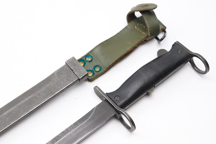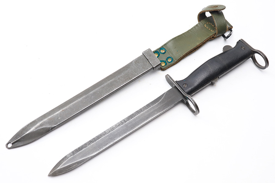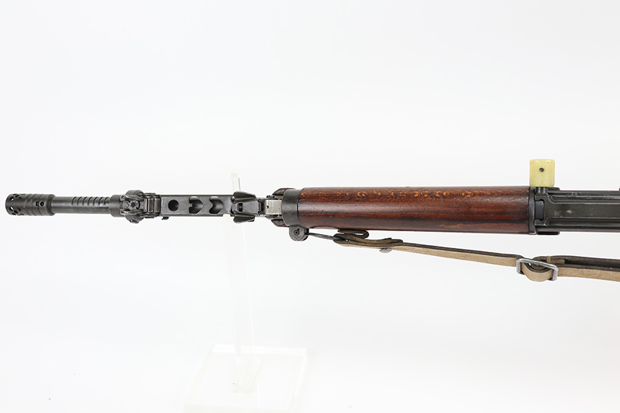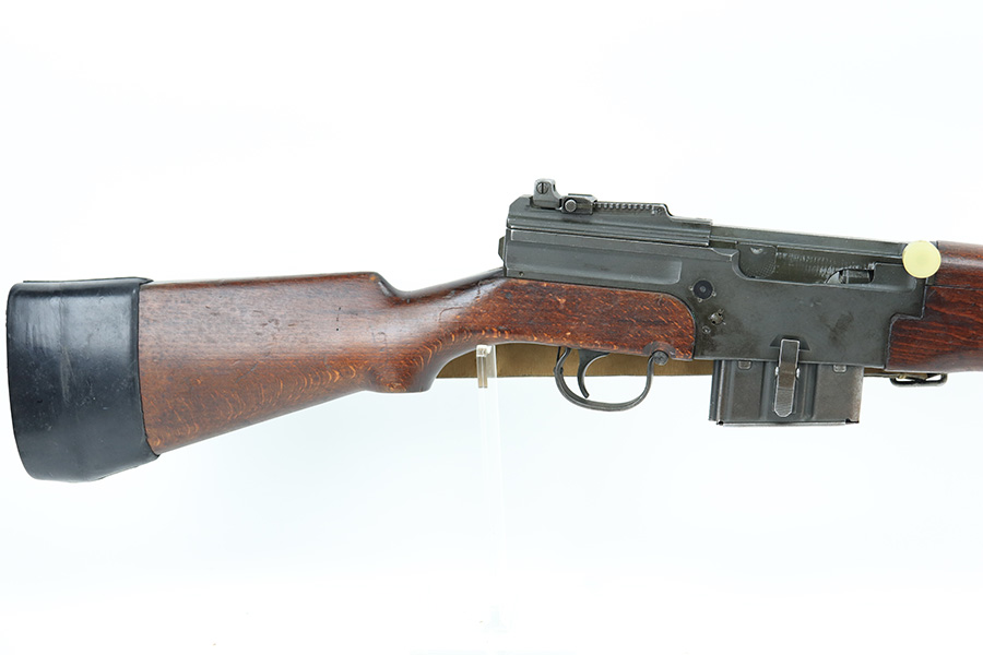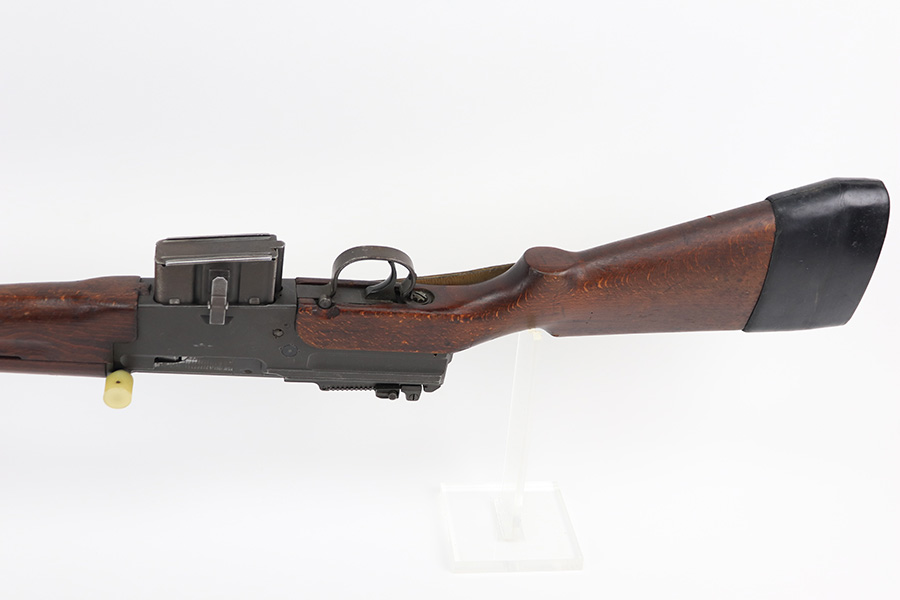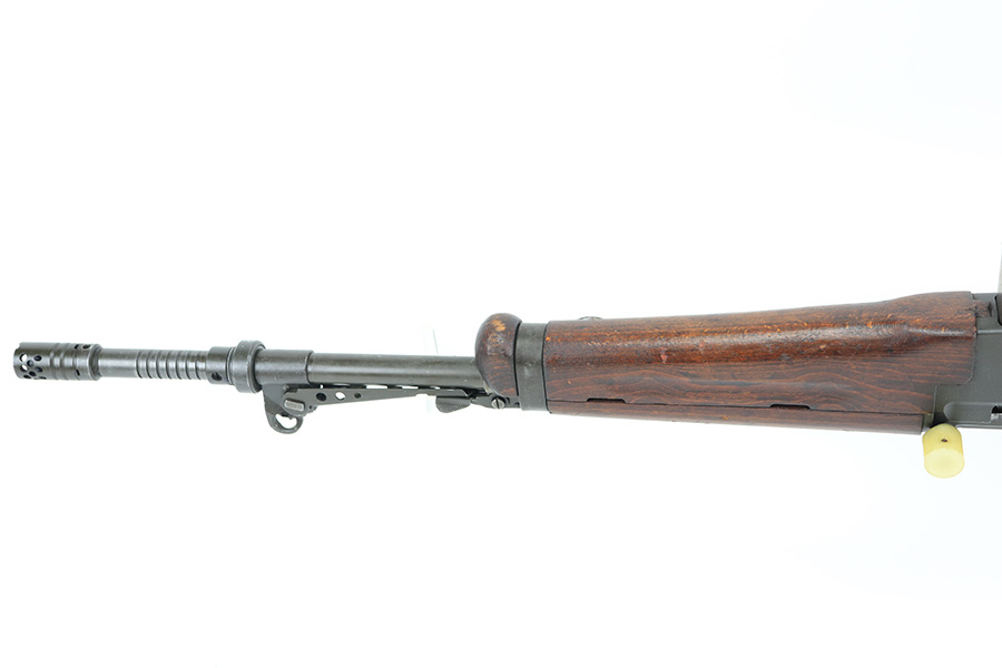 3/3/22 – This is a very nice example of a French military rifle known as the Model 1949-56 and produced by MAS. The MAS 1949-56 is a reliable, accurate, easy to maintain semi-automatic rifle with a detachable 10-round magazine and a side rail designed to allow for attachable rifle scopes. The MAS 49-56 is the 1956 adaptation of the MAS-49, which was adopted as standard issue for the French army in 1949. The 49/56 improved upon the original model based on its usage in Algeria, Indochina, and the Suez Crisis. The 49/56 was made shorter and lighter, a knife bayonet was added, and the built in grenade launcher was altered to combine a compensator with a rifle grenade launcher that fired 22mm rifle grenades. The MAS-49/56 saw significantly more production than the original MAS-49 (275,240 versus 20,600) and saw action in French conflicts around the world until it was replaced by the FAMAS in 1979. This is an excellent example with minimal handling wear. Import mark on right side of receiver. Minty bore. Excellent wood furniture with very minor handling wear. Listing includes an original sling, bayonet and spare magazine.