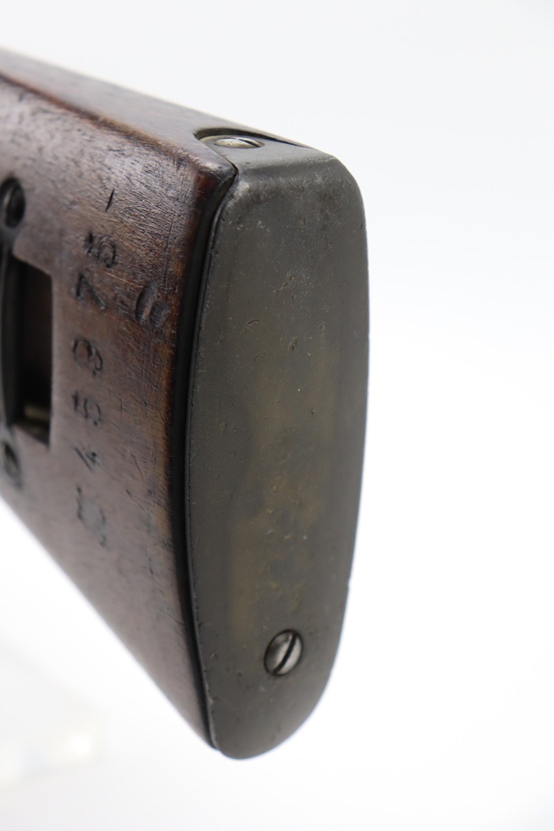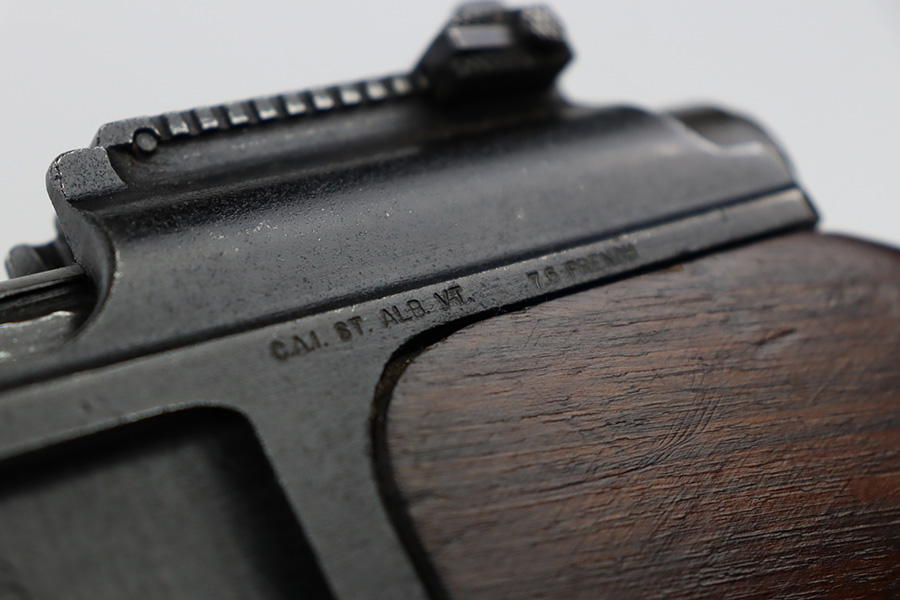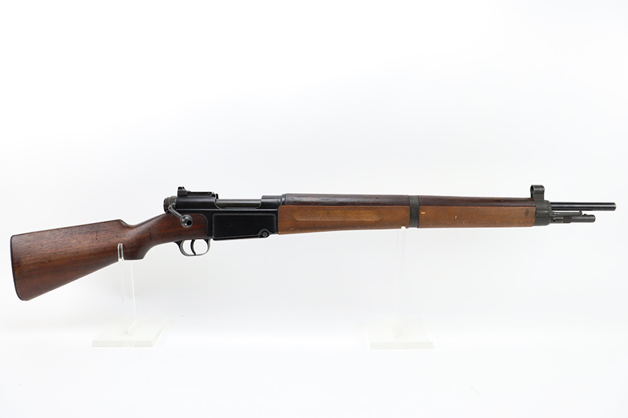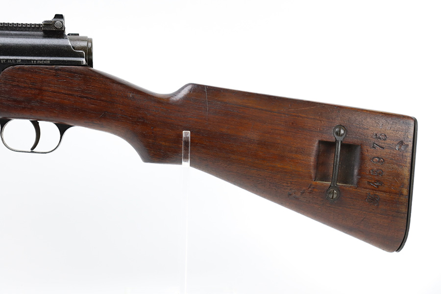1/3/24 – This is an excellent example of a MAS Model 1936 rifle. First adopted in 1936 by France and intended to replace the Berthier and Lebel series of service rifles, it saw service long past the World War II period. It was manufactured from late 1937 onward by Manufacture d’Armes de Saint-Étienne (MAS), one of several government-owned arms factories in France. Only 250,000 MAS-36 rifles were available to equip the French infantry during the Battle of France in 1940. Mass production finally caught up after World War II and MAS-36 rifles became widely used in service during the First Indochina War, the Algerian War and the Suez Crisis. The finish on this one rates about 95% with minor general high edge wear. The receiver and barrel have a dusty blue finish. Excellent wood stock. All matching with an import mark on the left side of the receiver. Excellent bore with strong rifling.