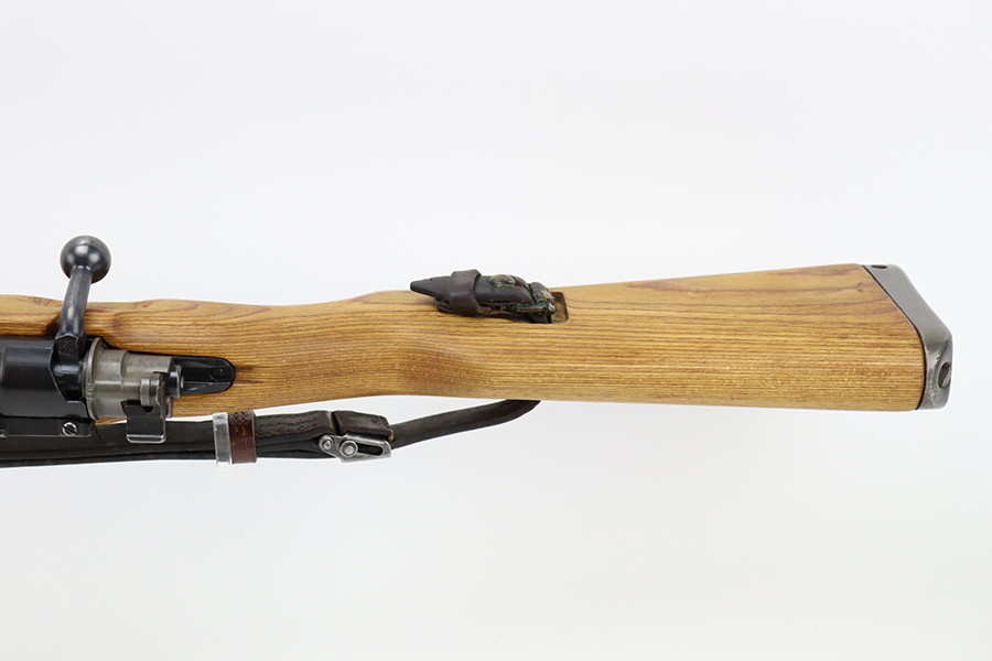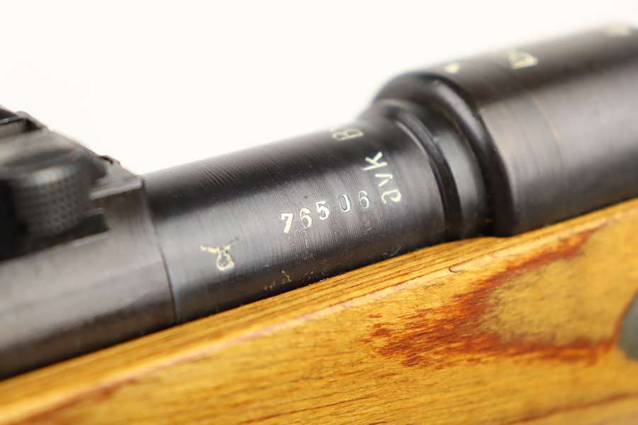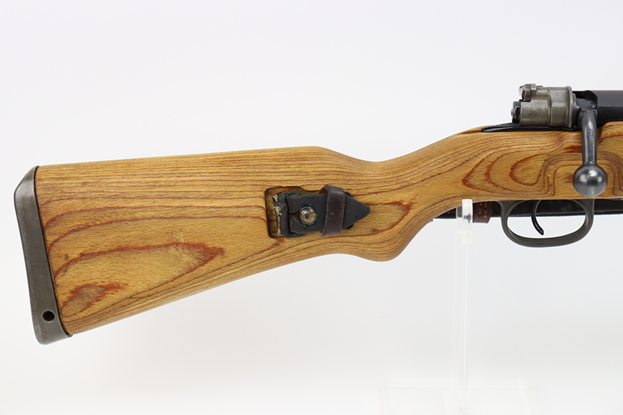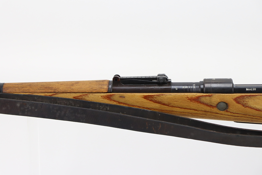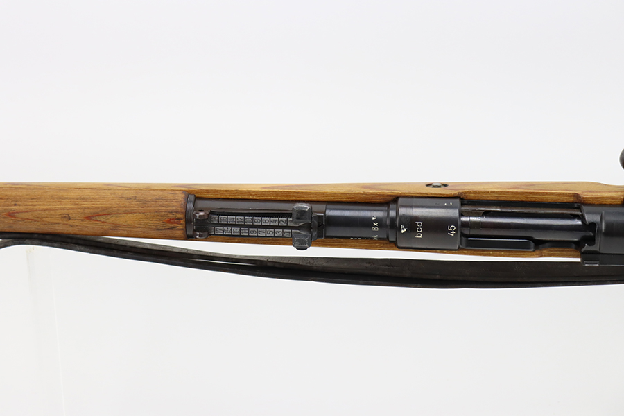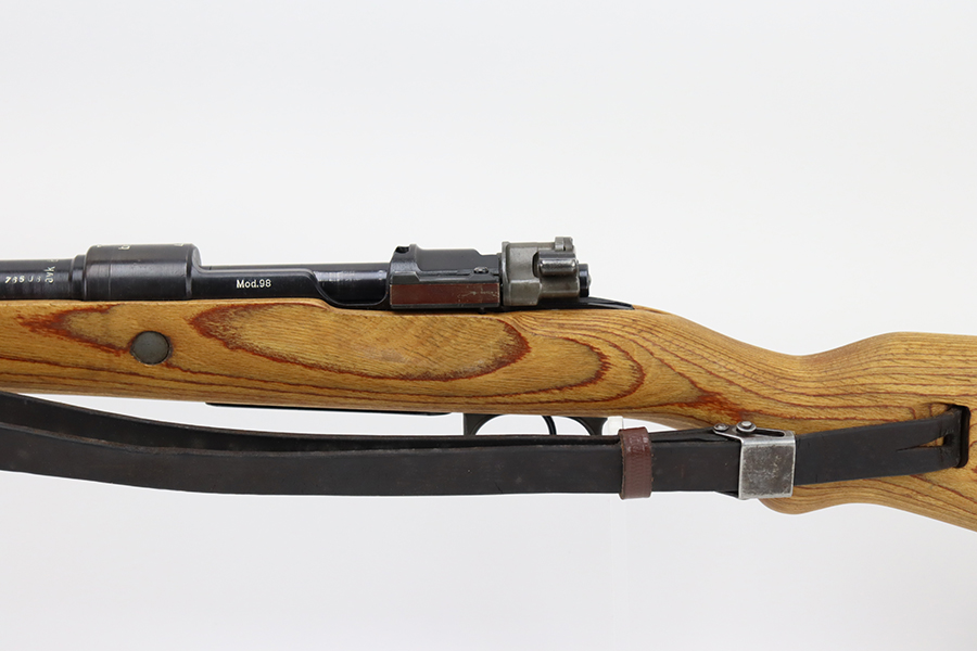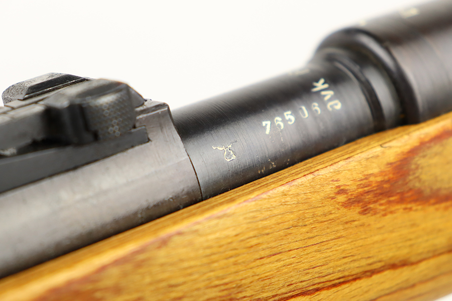 01/23/2024 – Up for sale is an excellent K98k made by Gustloff Werke in late WW2. The rifle is very clean with no damages of note. The bluing on the rifle is very clean without any pitting. The stock is solid and in original condition. The rifle is mismatched throughout. The bore is immaculate being very bright with sharp rifling. There is some debris towards the muzzle which should clean up nicely. Comes with a brown leather sling.