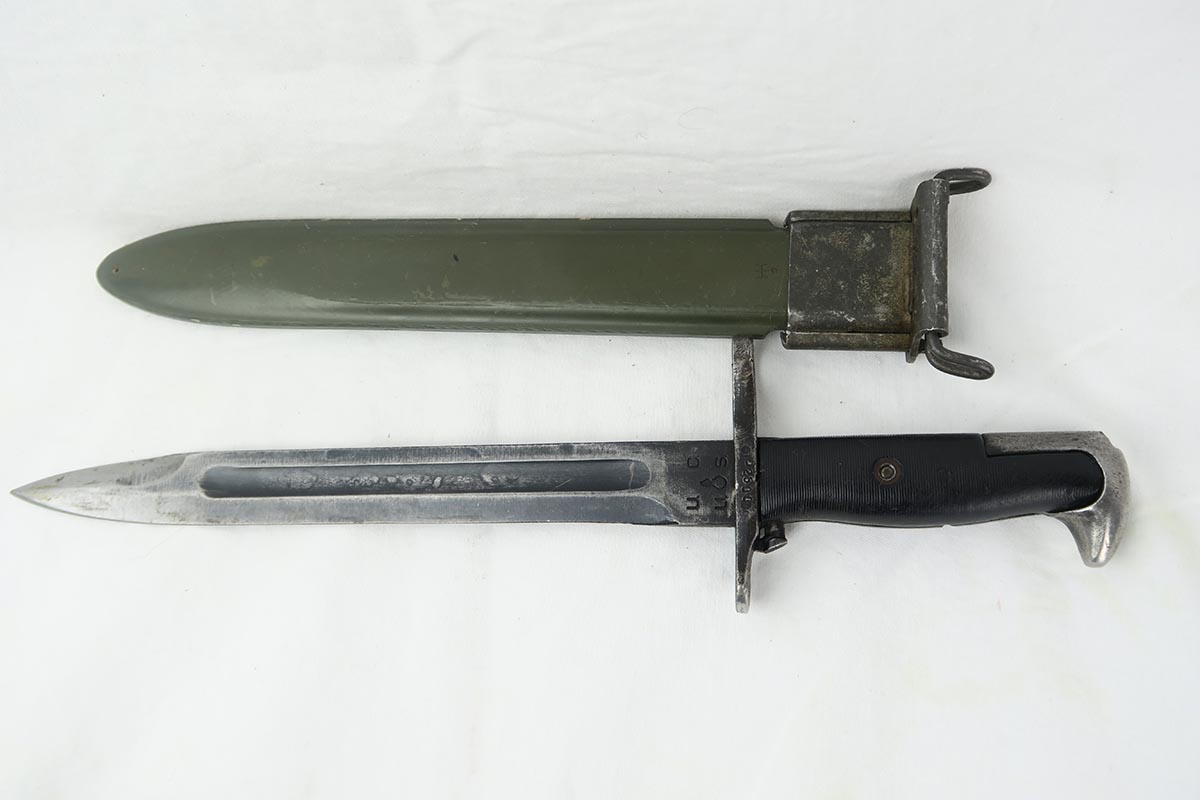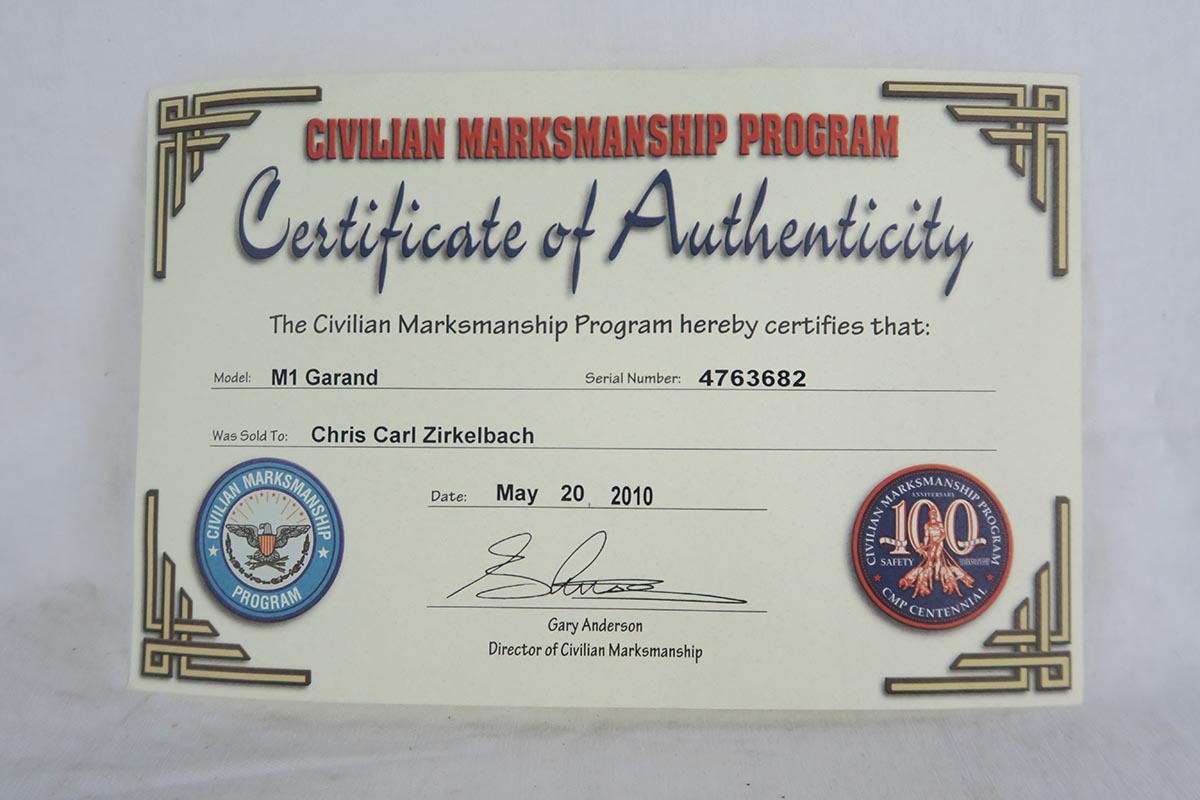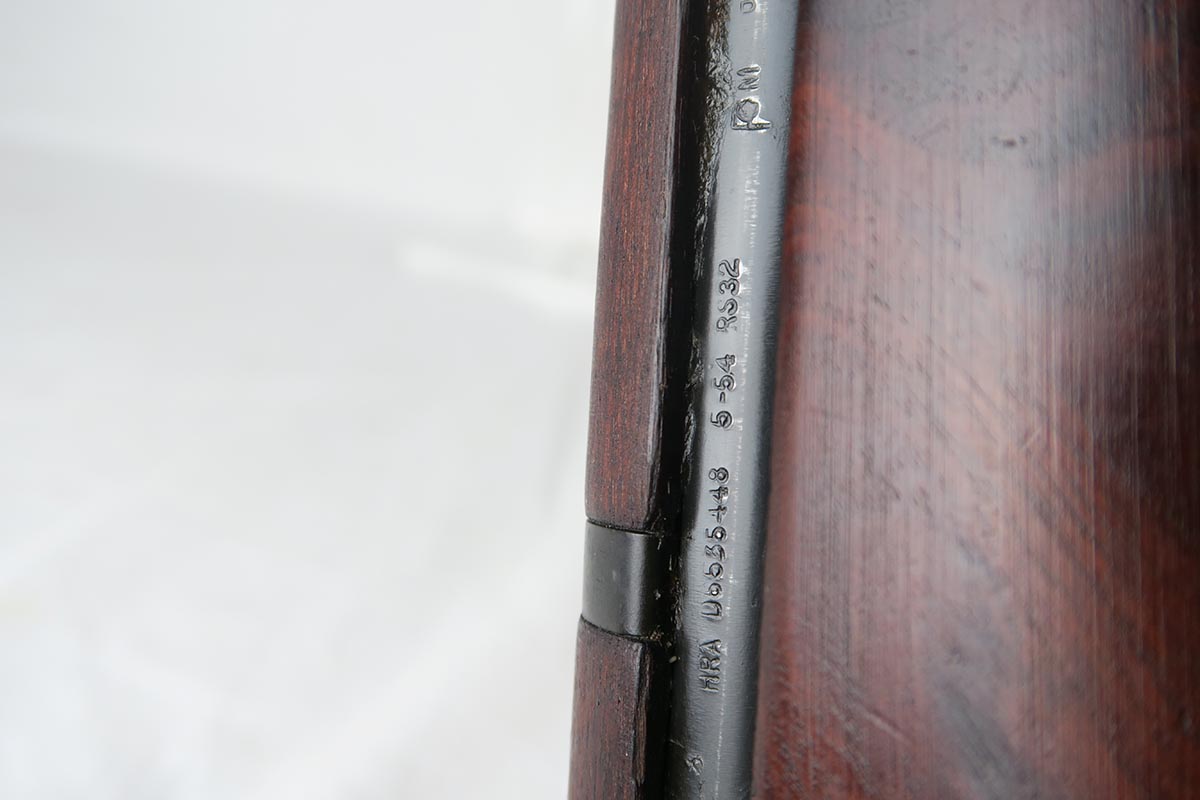 12/27/17 – This is a very nice CMP M1 Garand that was manufactured by Harrington & Richardson in May of 1954.  The gun is all original with excellent finish on the receiver and the stock in similar condition.  There are no cracks in the stock, just a few dings and scratches, and it is P marked on the wrist.  The rifle comes with the original CMP paperwork, sales receipt, manual, magazine, cleaning kit and WW2 bayonet with scabbard.  The rifle is shiny with strong rifling, and shows only minor use.  Canvas sling in good condition is included, as well, and is Korean War era.
