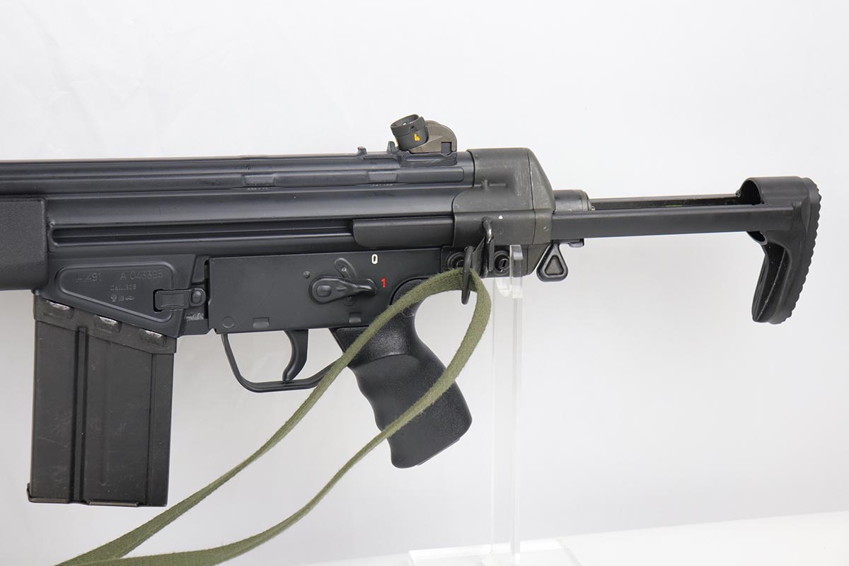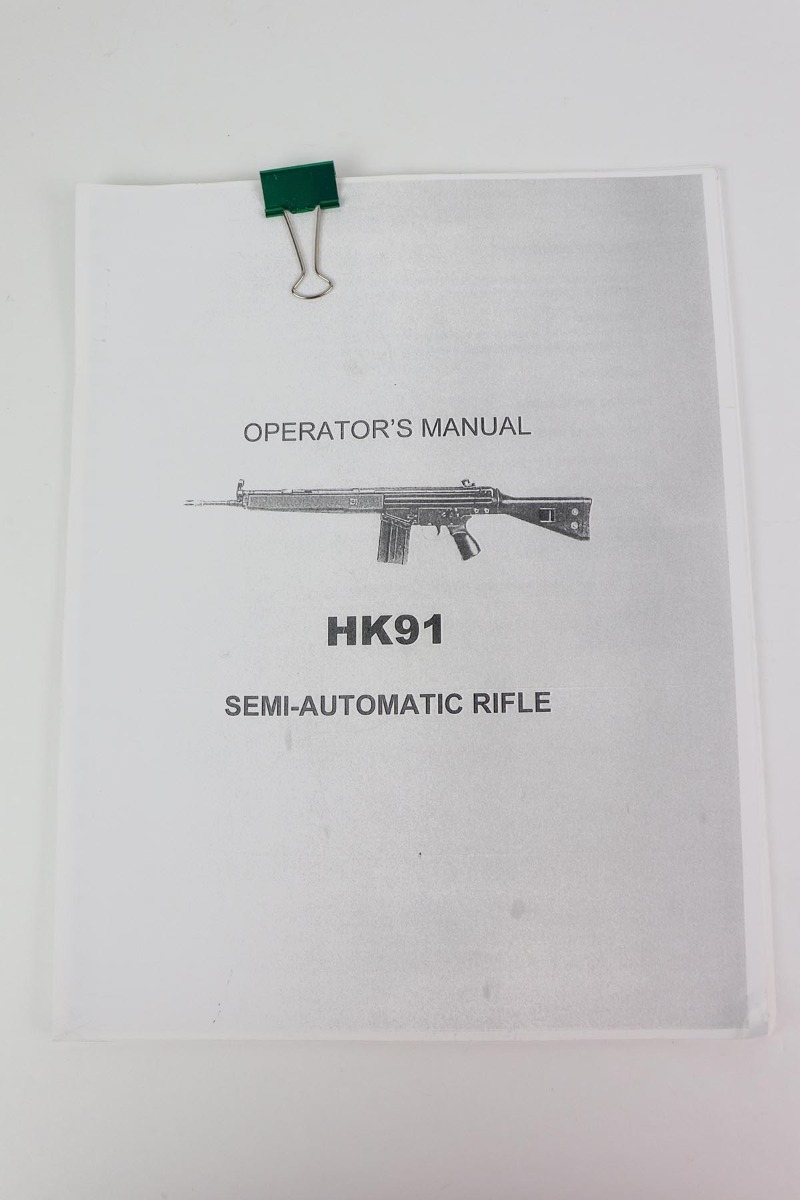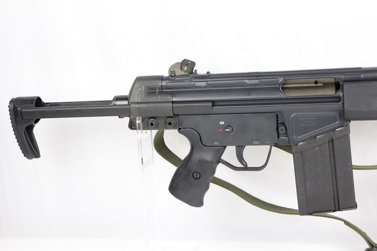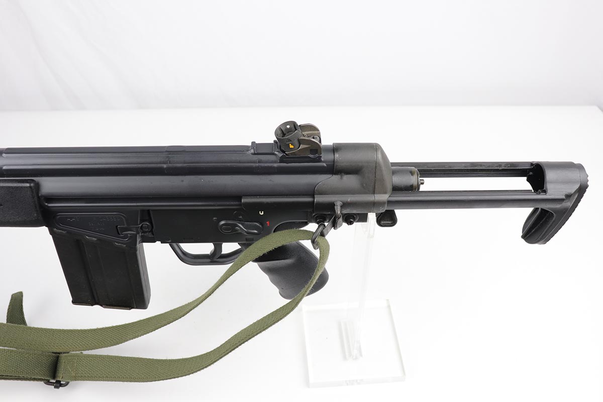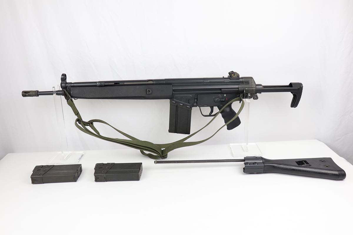 10/31/19 – This is a near-mint Heckler & Koch HK91 with all the extras. Made in 1981, the rifle is nearly unfired and has just a couple hints of wear near the back of the receiver. Mint bore and smooth mechanics. Included in this listing is an original fixed stock, two spare magazines and copy of the operations manual. We also have spare magazines we can add at $10 each.