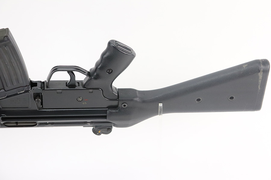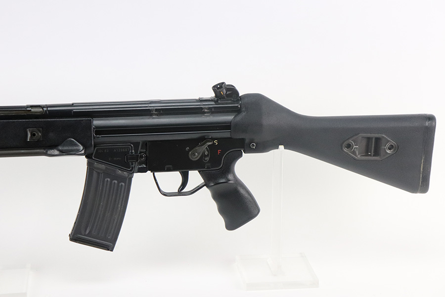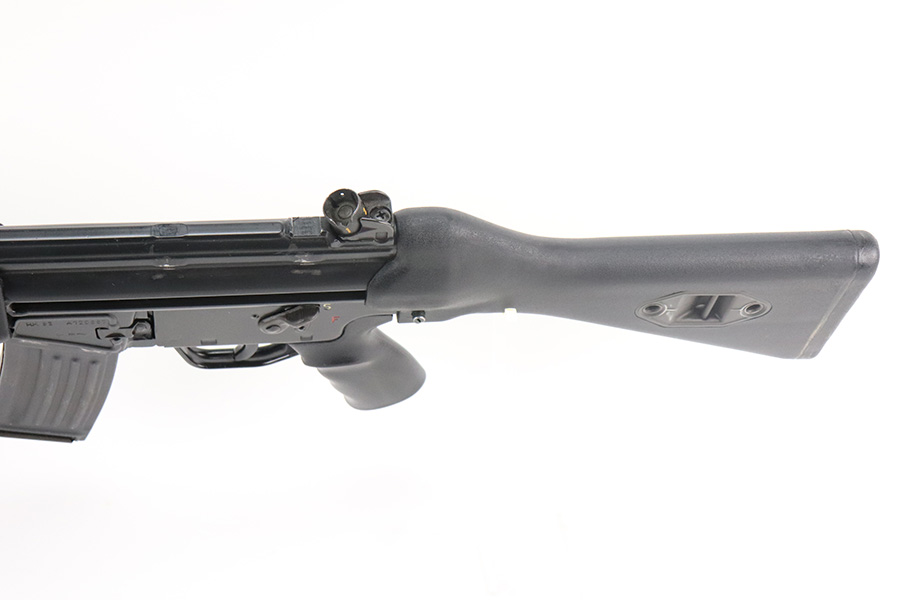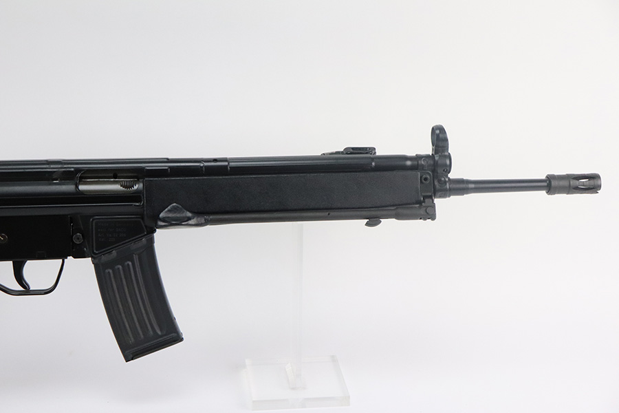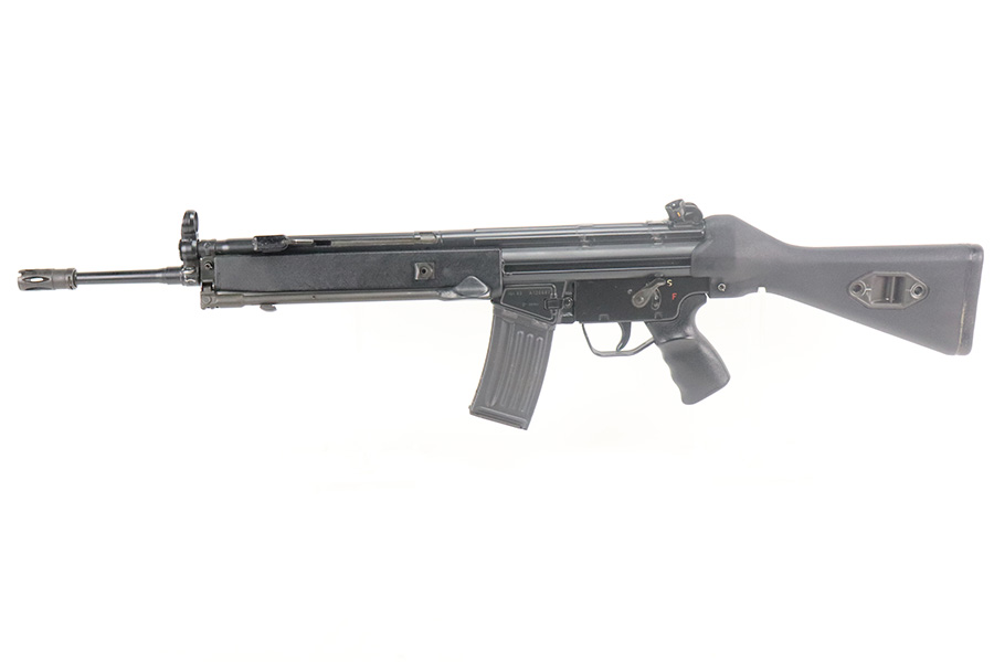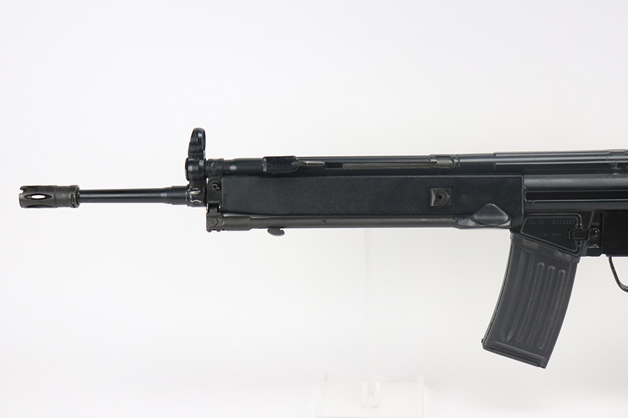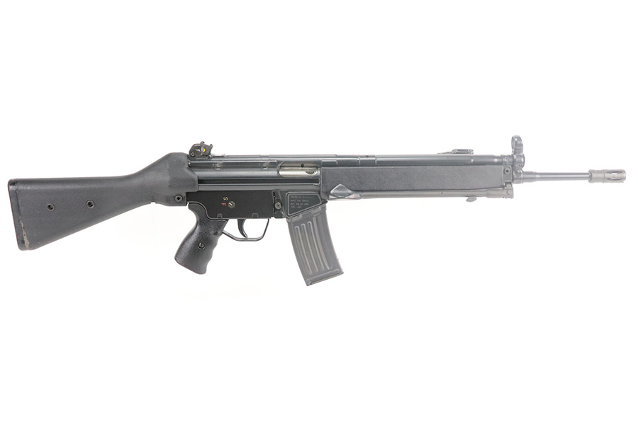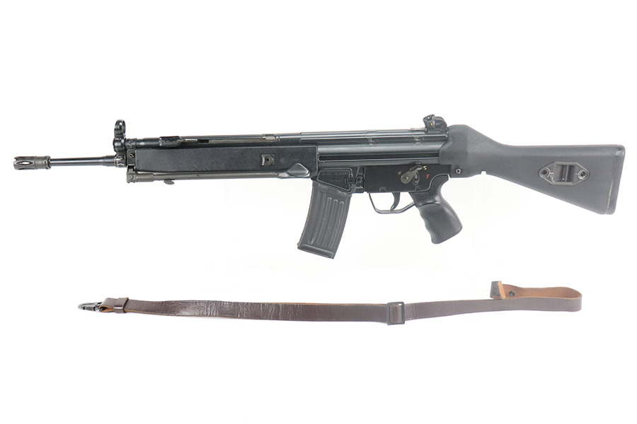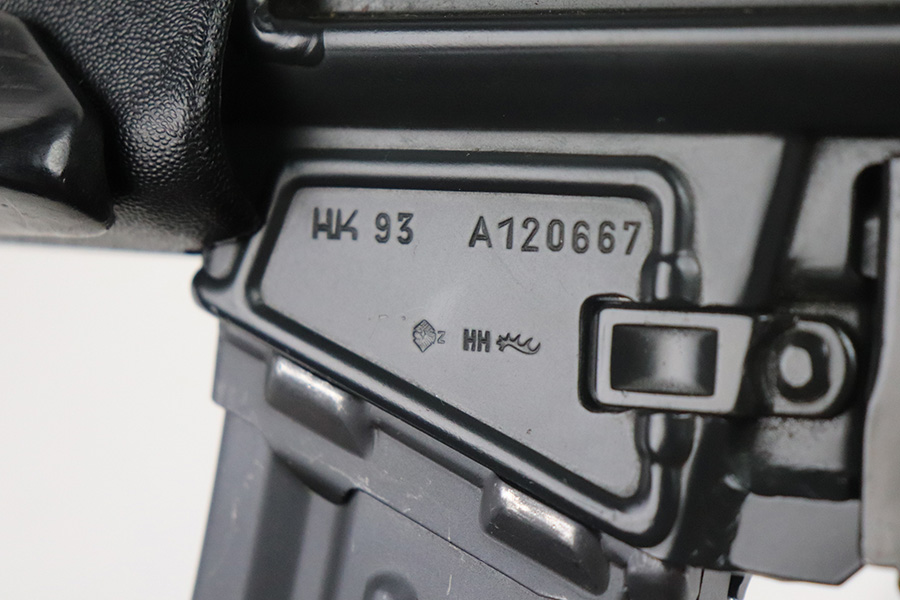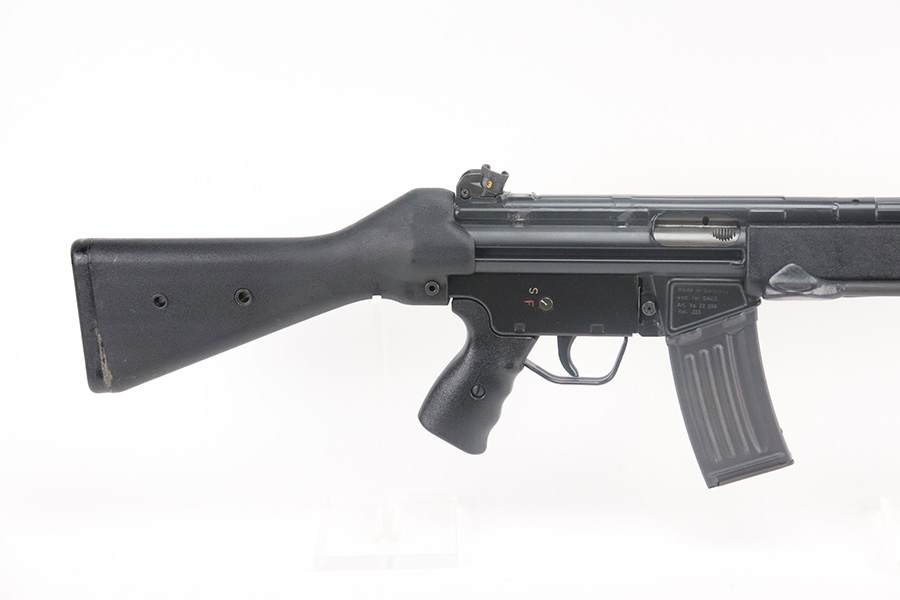 7/14/21 – This is an excellent Heckler & Koch Hk 93 that was made in 1977. It’s an early example that was made exclusively for SACO import. Excellent condition aside from claw marks along the top of the receiver where a scope was once mounted. Fixed stock. Buffered carrier. Strong, shiny bore with very minor signs of use. Comes with a leather sling. FFL required.