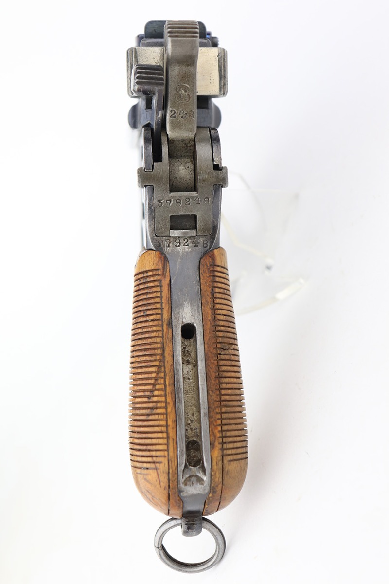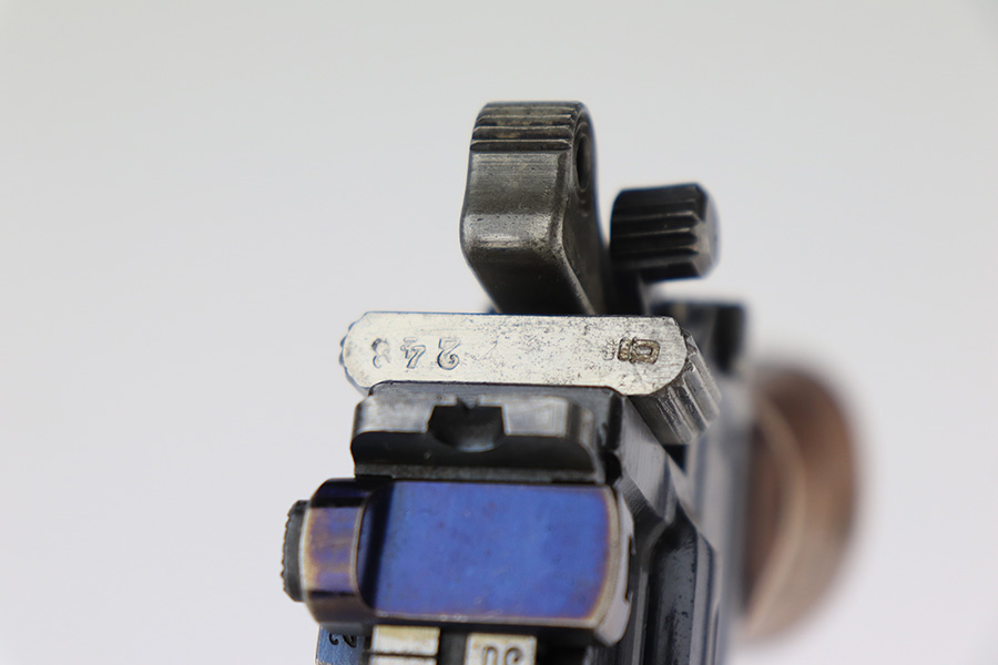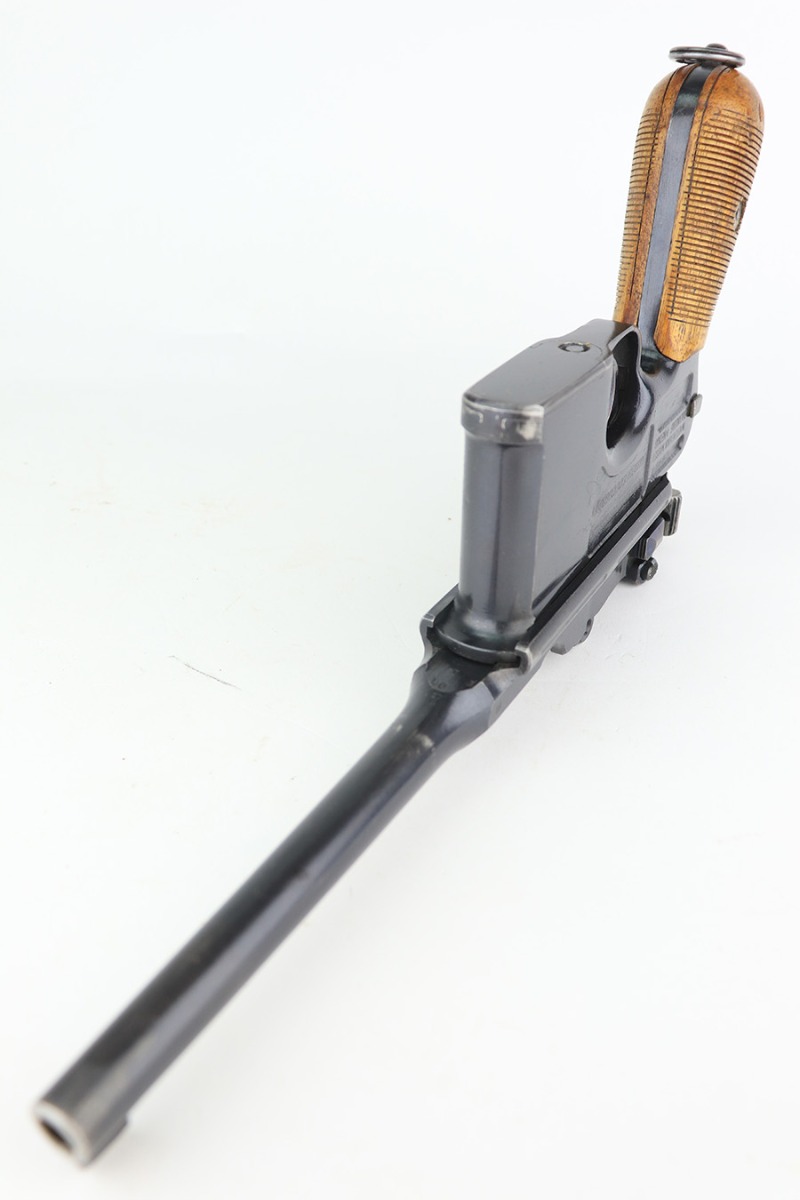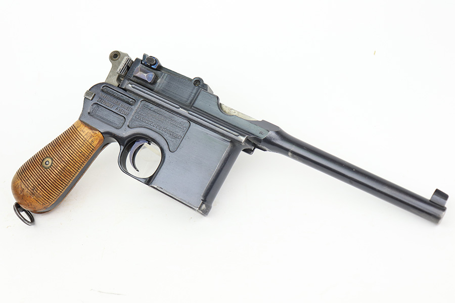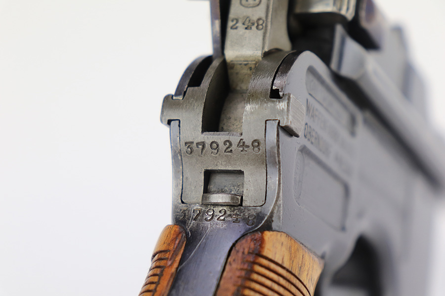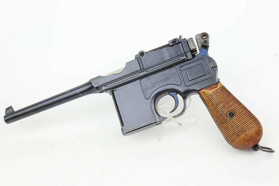 3/20/23 – This is an excellent example of a Mauser C96 issued to the Imperial German military during WW1. Chambered in 7.63mm. All matching with an imperial military proof on the right side of the slide. It has retained about 97% of its original finish. There are just hints of wear on some of the high edges and a few light streaks of wear on the barrel. Excellent matching-numbered wood grips. Near-mint bore.