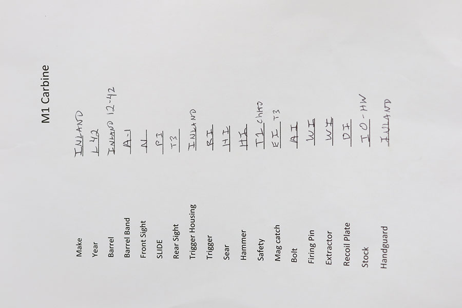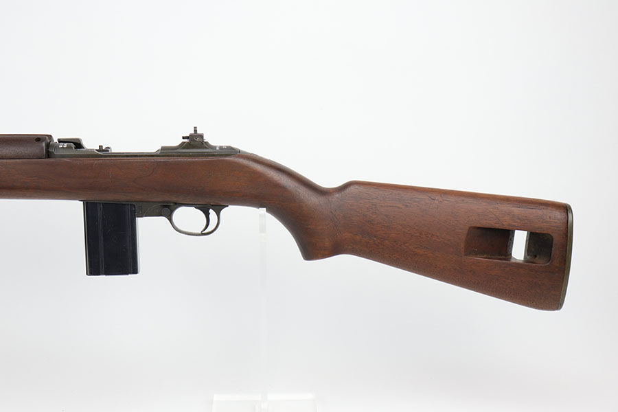 10/1/20 – This is an excellent, early Inland M1 Carbine with additional documentation showing a bill of sale out of the Red River Army Depot. A full parts guide is included in the photos of the listing, but the rifle has Inland parts throughout with barrel date of December of 1942. It correctly has a high wood stock with OI marking in sling well. Excellent finish throughout with most of the wear on the trigger group. Terrific bore. Minty stock with no defects and a crossed cannons cartouche on the right side.