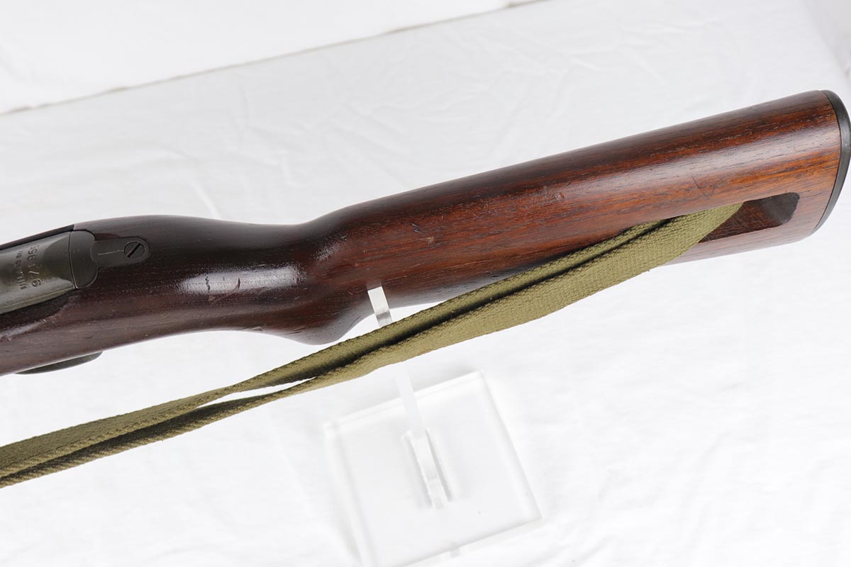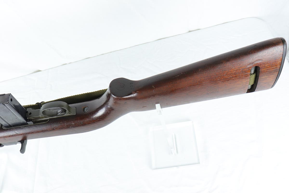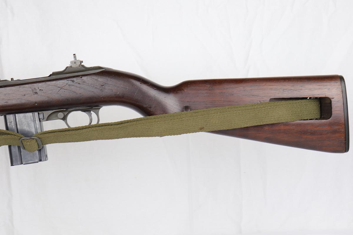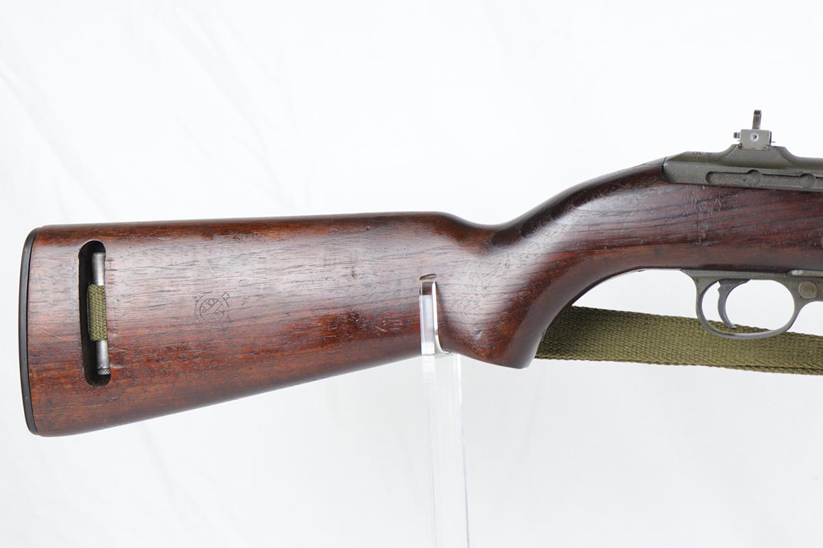 10/17/18 – This is an all original configuration M1 Carbine from October of 1943. All correct Inland parts with excellent stock that’s IO marked in the sling well. Early high wood. Sharp, original cartouche on stock. P on the bottom of the stock. Hand guard is original two rivet with IO underneath. Original finish rates at 98+% with only minor barrel/muzzle wear. Early flip sight with no signs of staking. Correctly has no bayo lug. Original WW2 sling. Fantastic bore.