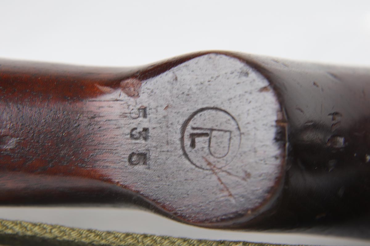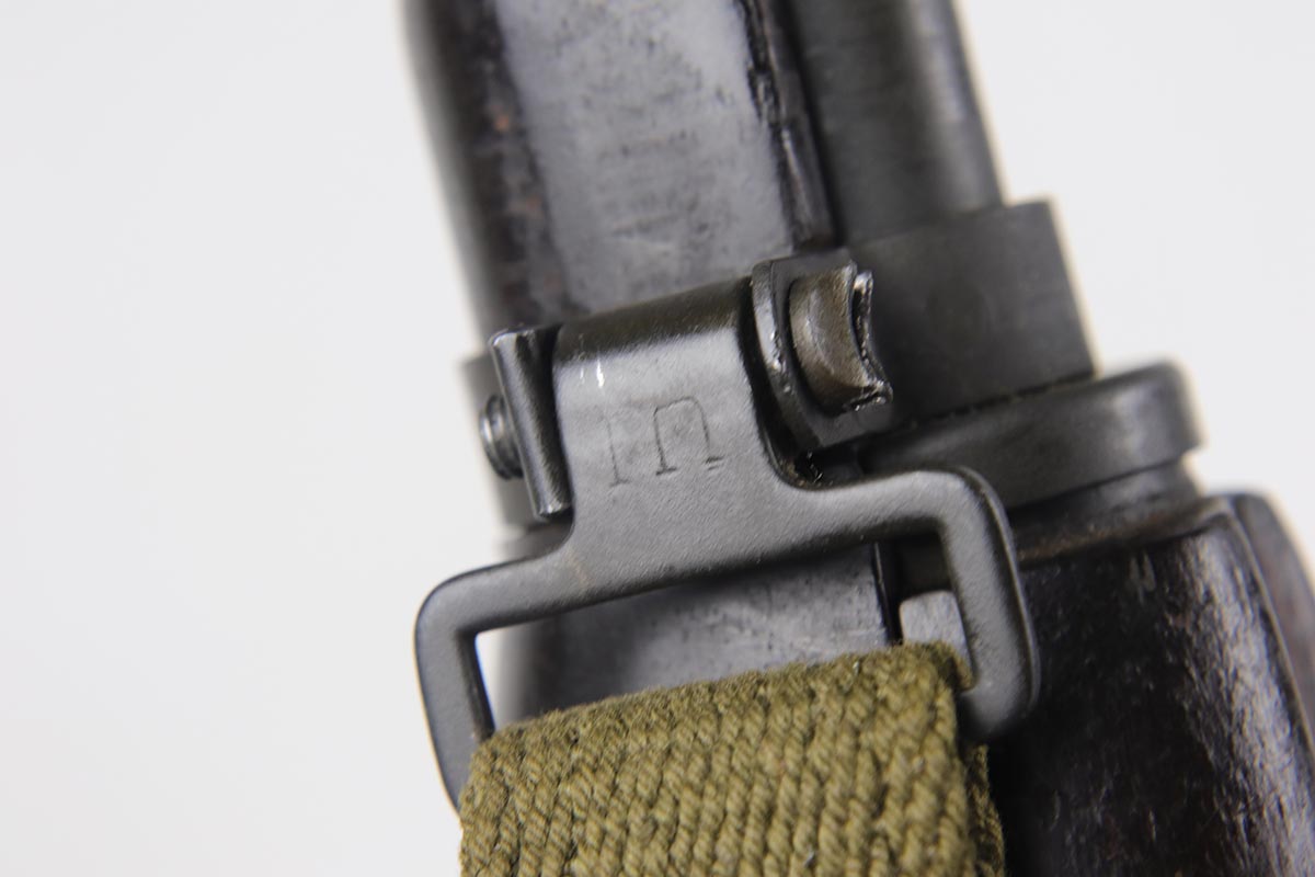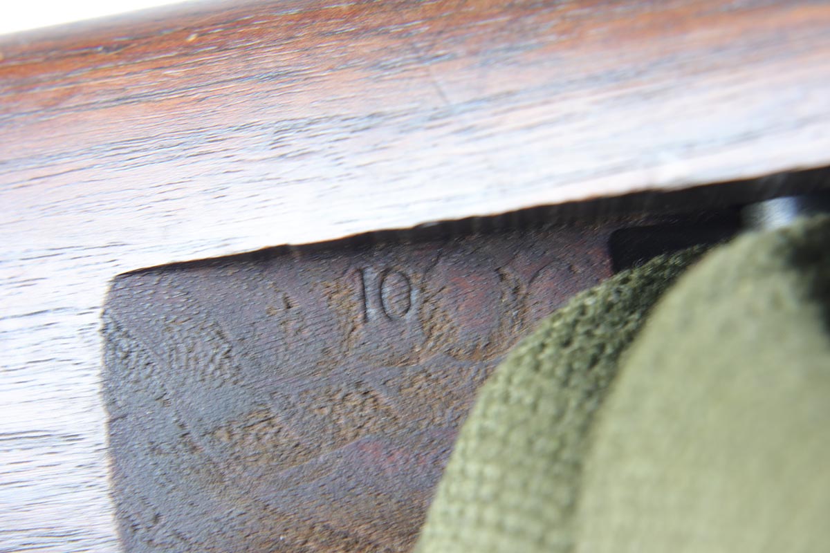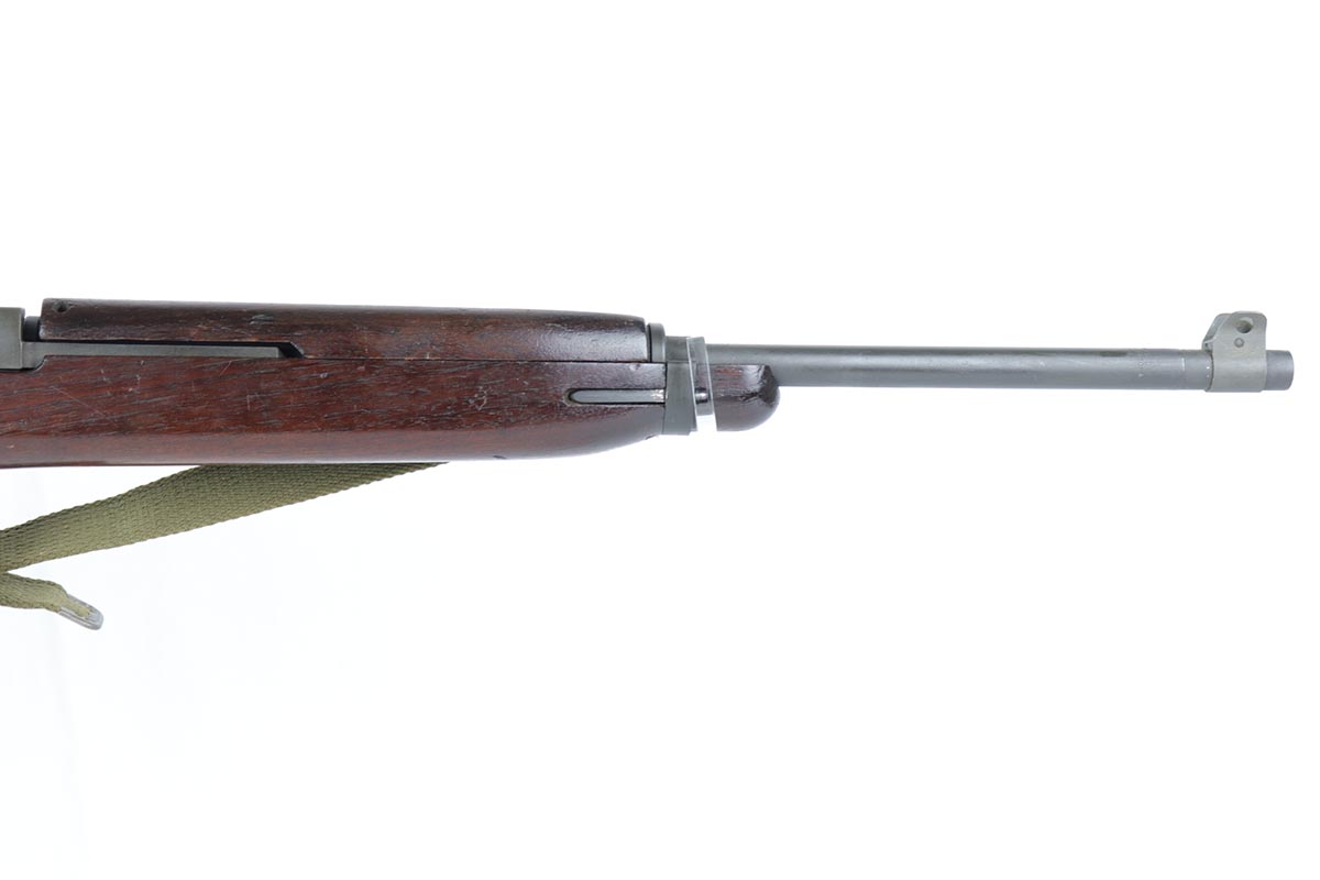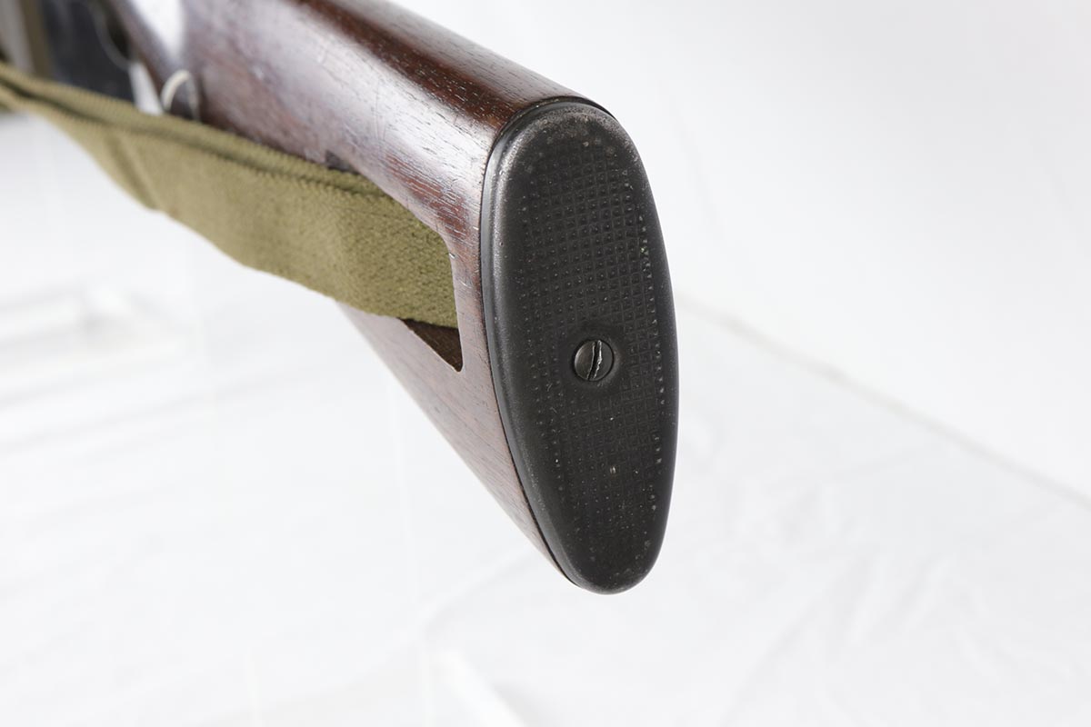 10/17/18 – This is an all original configuration M1 Carbine from October of 1943. All correct Inland parts with excellent stock that’s IO marked in the sling well. Early high wood. Sharp, original cartouche on stock. P on the bottom of the stock. Hand guard is original two rivet with IO underneath. Original finish rates at 98+% with only minor barrel/muzzle wear. Early flip sight with no signs of staking. Correctly has no bayo lug. Original WW2 sling. Fantastic bore.
