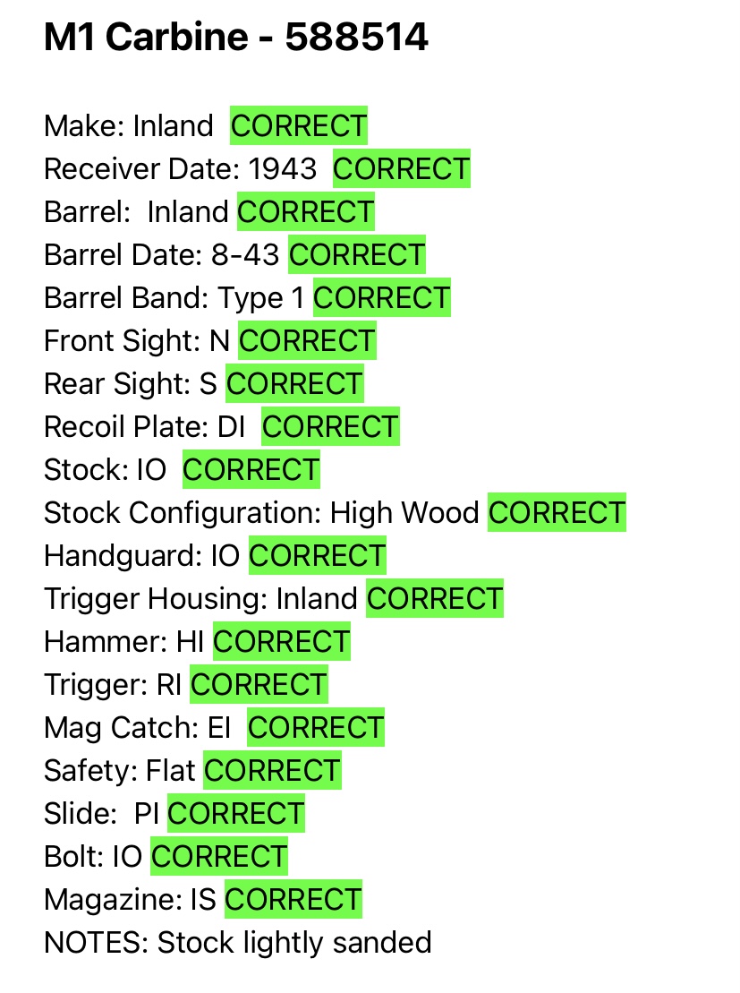6/15/22 – This is a beautiful example of a fairly early Inland M1 carbine from 1943. All correct and original, only minor issue is that the stock was lightly sanded at some point. A full parts guide is included in the photos of this listing. Excellent finish throughout with a minty. No cracks or major chips in the wood. Comes with period canvas sling.