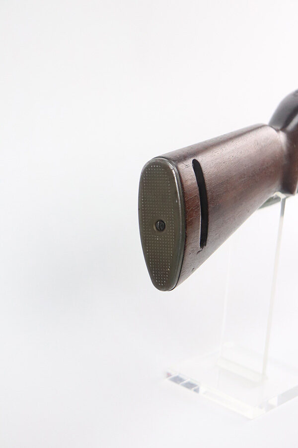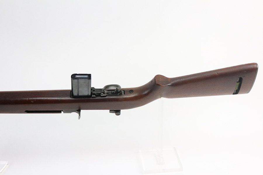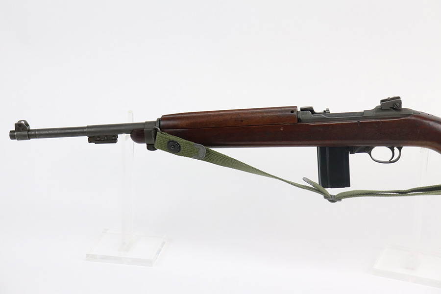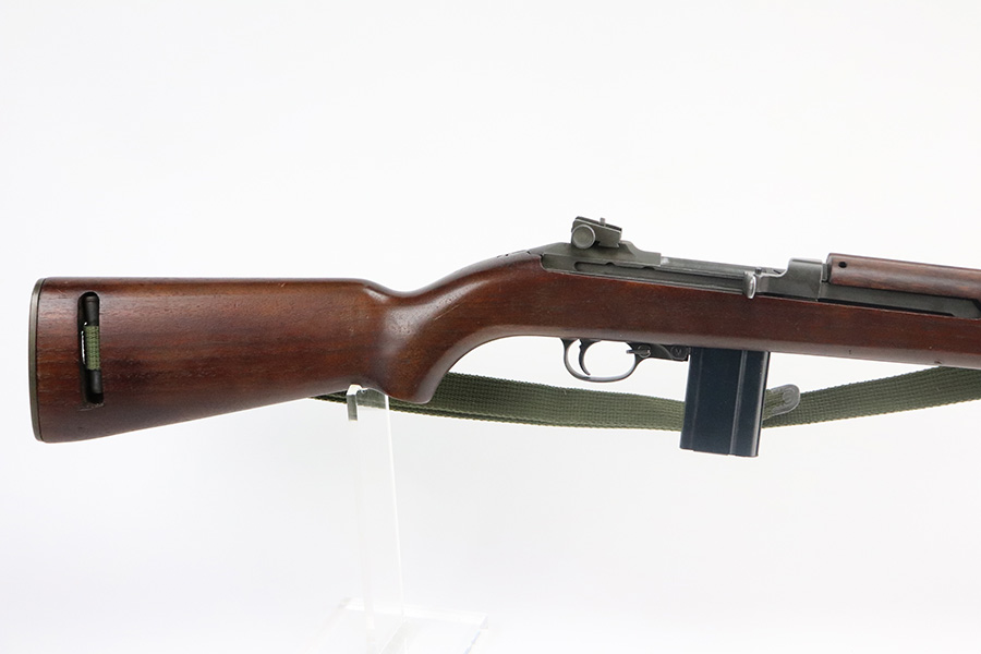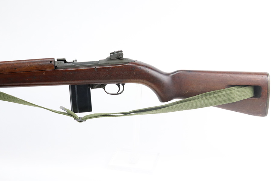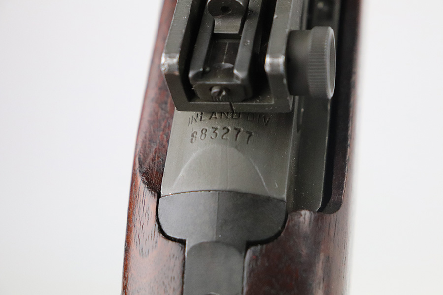 7/2/21 – This is an excellent example of an Inland M1 Carbine issued to the US military in 1942-43. Below is complete list of parts with their markings. It has a bayonet lug and adjustable rear sight, likely added of the Korean War. It has retained most of its finish with minor handling marks and scuffs on the barrel. The stock is very nice with some minor chips and scratches here and there. Faint cross-canon cartouche on the right side of the butt stock. Comes with one magazine, an original sling, and oiler. Import mark on the underside of the barrel. Mint bore.
