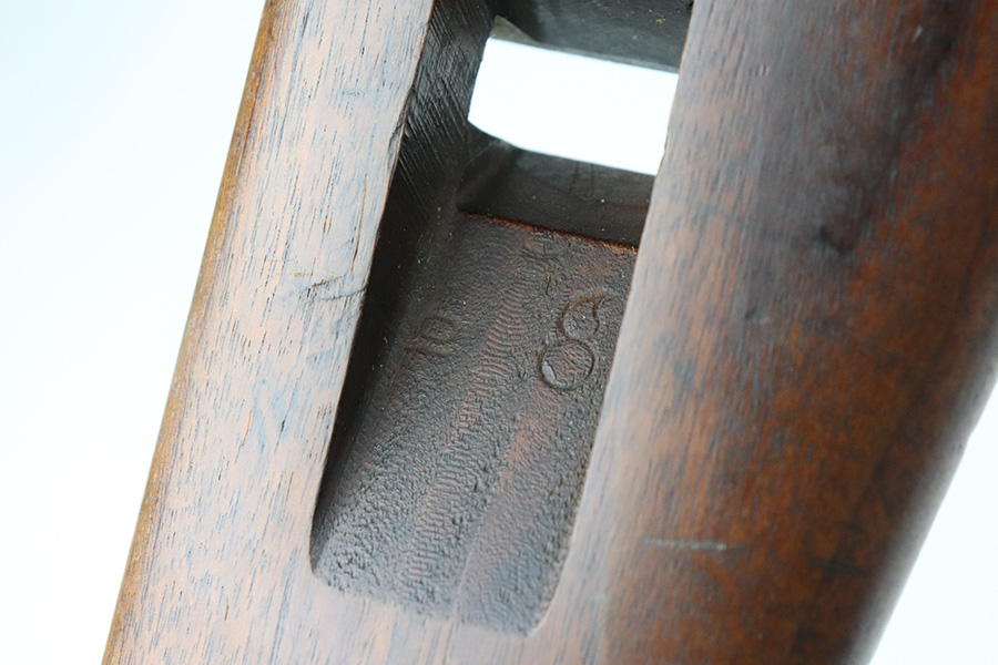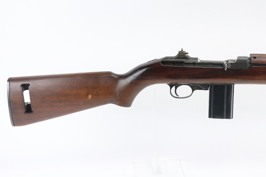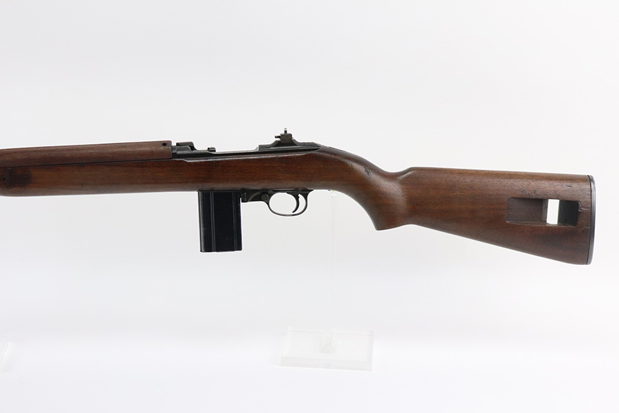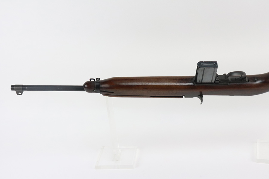 9/28/22 – This is a very nice example of an early Inland M1 Carbine with six digit serial. A full parts list is included in the photos for the listing. It’s all correct and original except for the handguard, which is unmarked and was likely replaced at some point. Excellent original finish on the metal parts with minor patina, and a little bit of wear on the barrel. Nice, early stock with flaming bomb in sling well and crossed cannon cartouche on right side. Terrific, shiny bore.