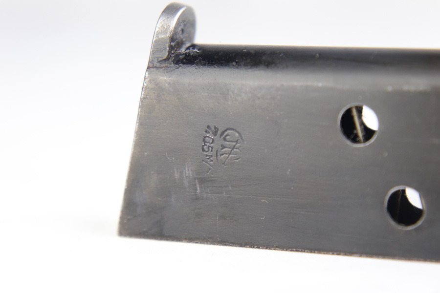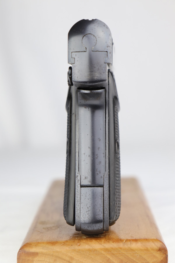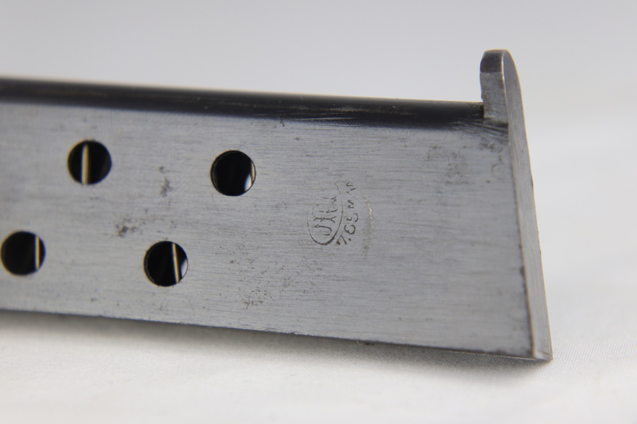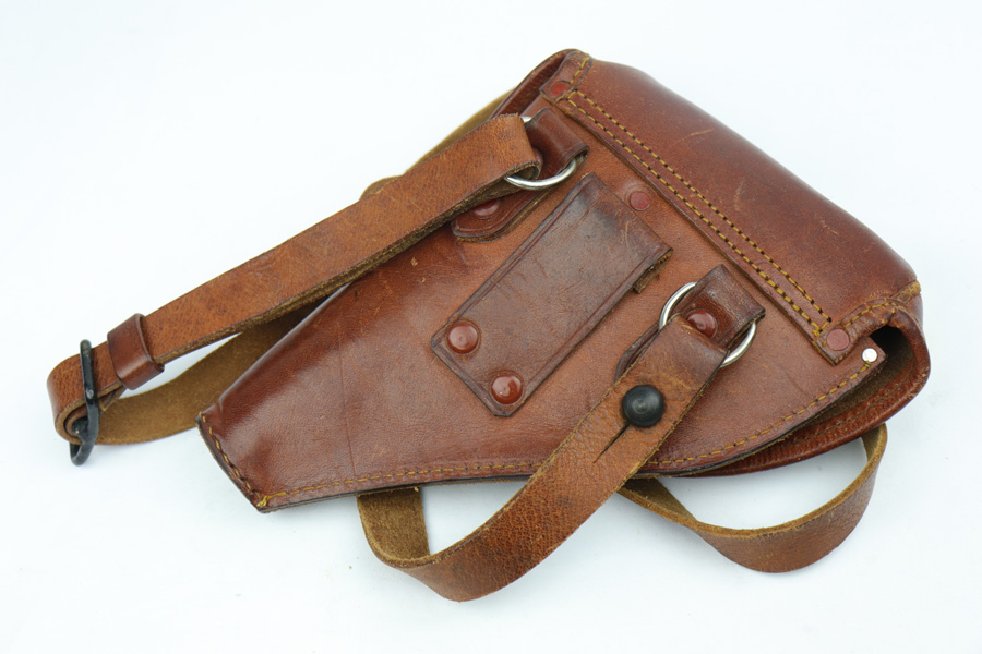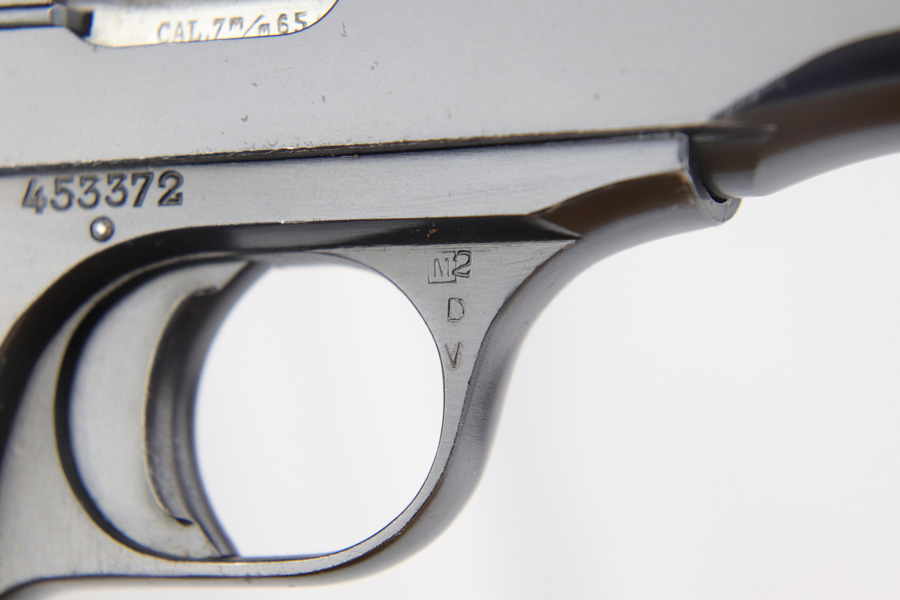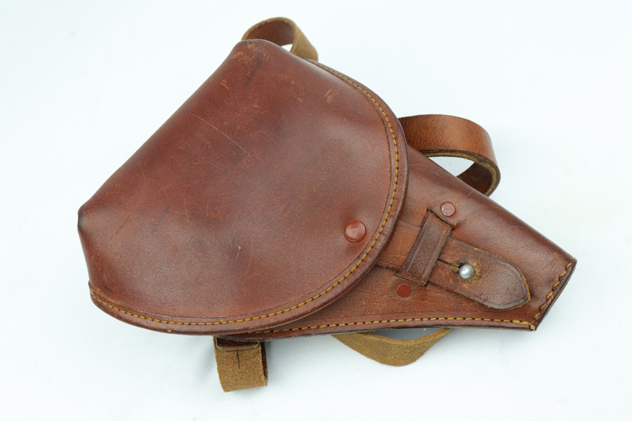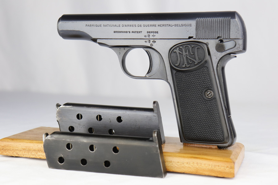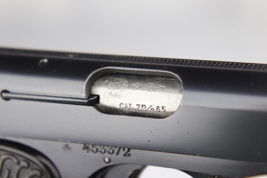 2/26/19 – This is a great example of a scarce Japanese contract FN1910 pistol that was a late 1930s production. It is in very good original condition and retains nearly 99% of its original blue with just a hint of high edge wear and mild spotting/oxidation on the front and rear grip straps. There is absolutely no pitting or rust present anywhere. It is an all matching gun and has excellent bore and grips. It comes with an original Japanese made holster in mint condition, with an original shoulder strap – probably the best one we’ve had in years – with some Japanese kanji stamped under the lid. There is a spare magazine as well. A very desirable, high condition example of a private purchase Japanese handgun – all of these were carried by high ranking officers who had to buy their own sidearms.