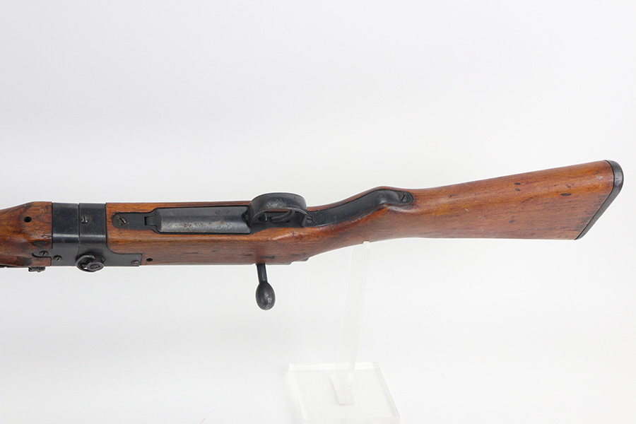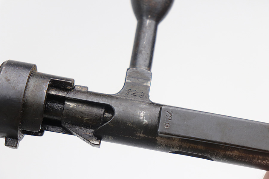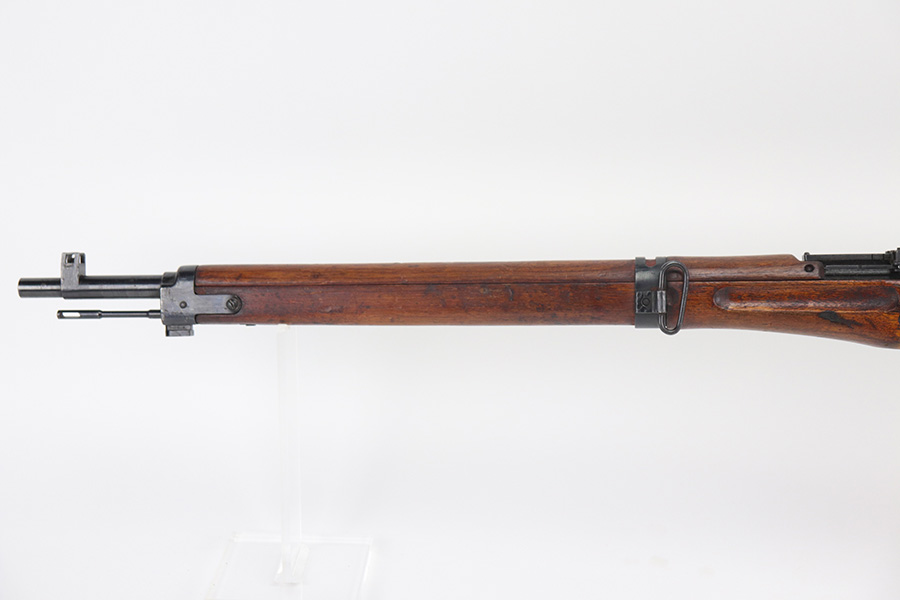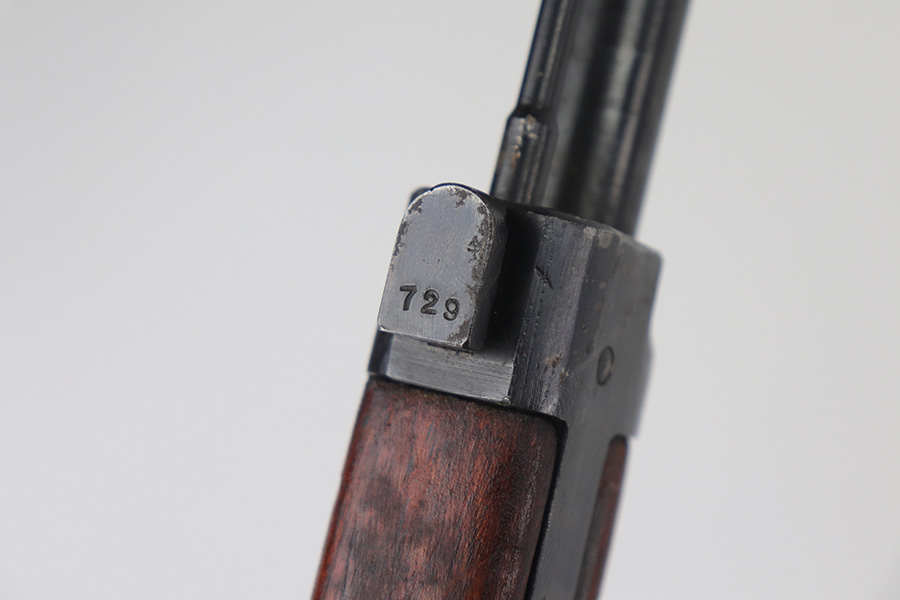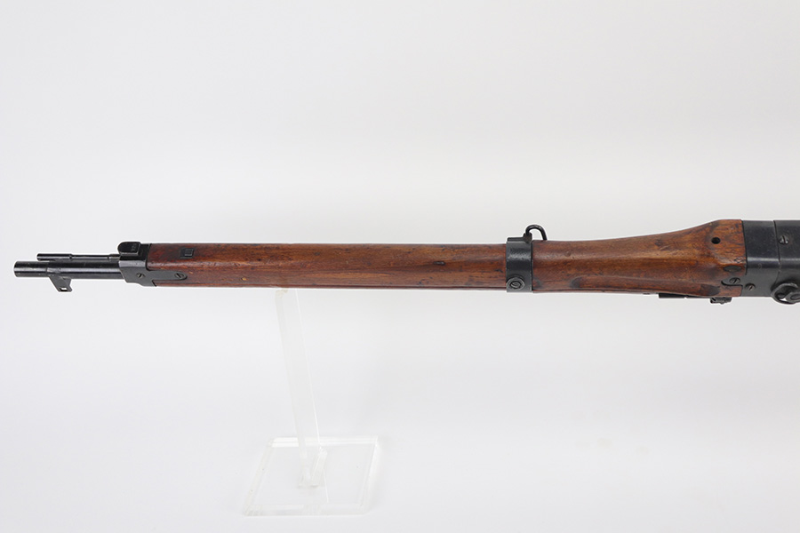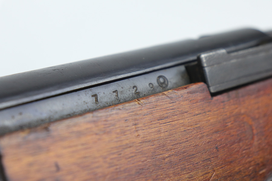 11/23/21 – This is an excellent example of a Type 2 Paratrooper Rifle issued to the Japanese military during WW2. The mum stamp on the receiver has been ground off, but the gun is all matching. It comes with an original dust cover that does not match the gun and an original cleaning rod. The gun has retained most of its bluing with tiny dots of oxidation here and there. There is obviously finish loss on the receiver where the mum was ground. Some light spotty discoloration on the floor plate. There is some very light spotty rust on the front sight, on the butt plate, and just in front of the front barrel band. The stock is excellent with very minor dings, dents, and scratches here there. The bore is shiny, but the rifling is a little worn.