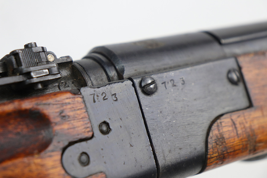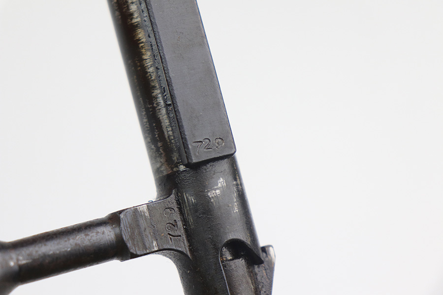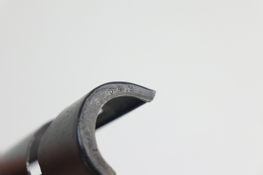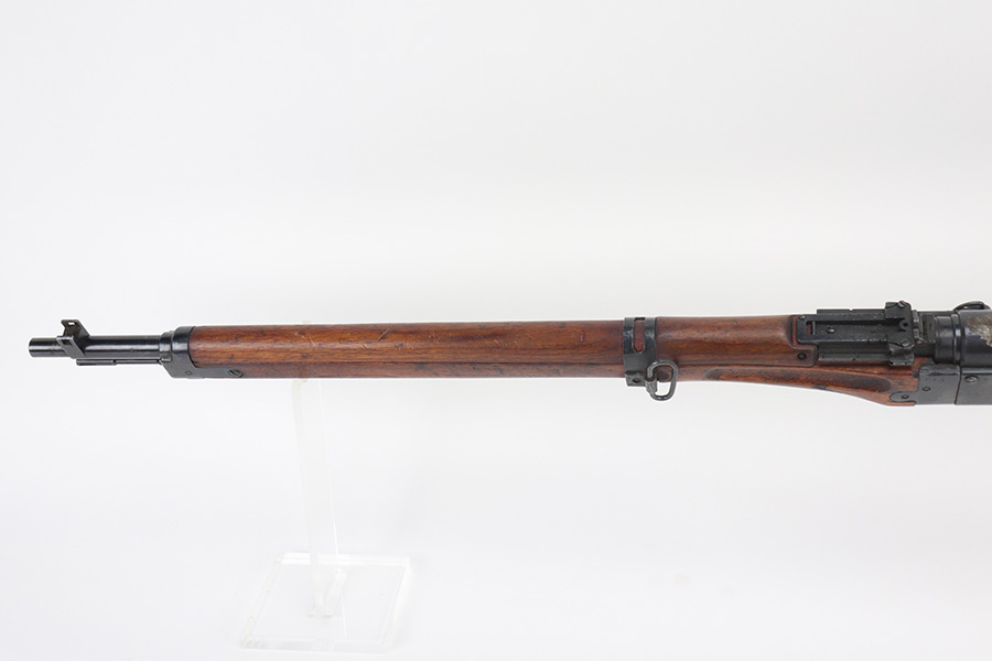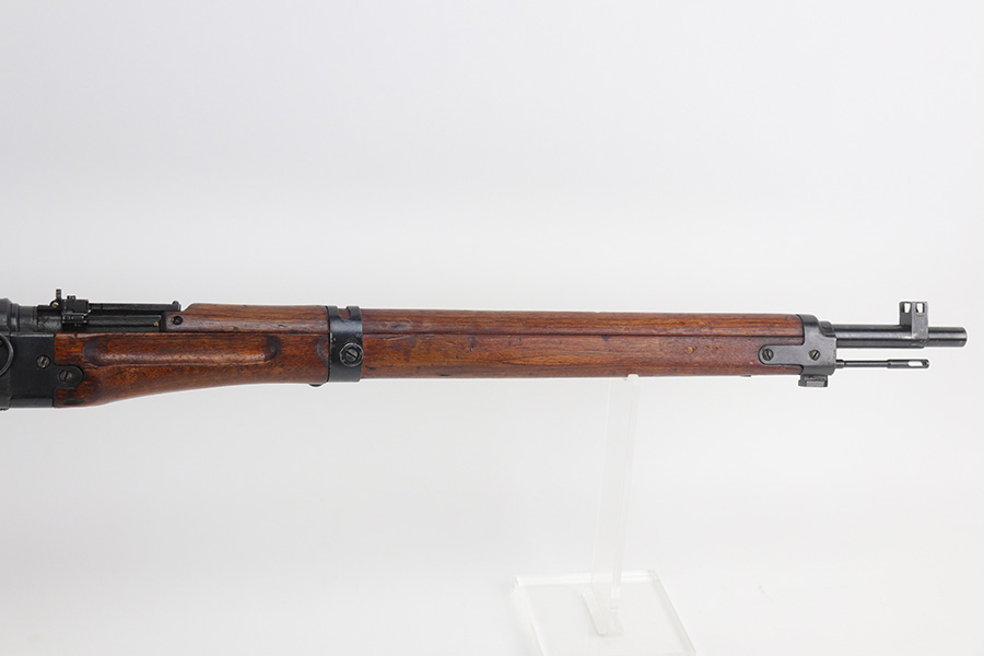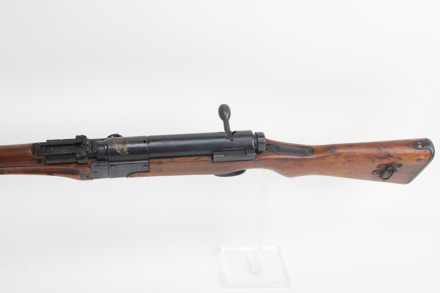 11/23/21 – This is an excellent example of a Type 2 Paratrooper Rifle issued to the Japanese military during WW2. The mum stamp on the receiver has been ground off, but the gun is all matching. It comes with an original dust cover that does not match the gun and an original cleaning rod. The gun has retained most of its bluing with tiny dots of oxidation here and there. There is obviously finish loss on the receiver where the mum was ground. Some light spotty discoloration on the floor plate. There is some very light spotty rust on the front sight, on the butt plate, and just in front of the front barrel band. The stock is excellent with very minor dings, dents, and scratches here there. The bore is shiny, but the rifling is a little worn.