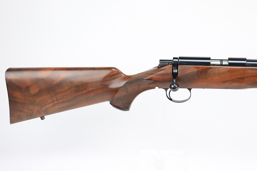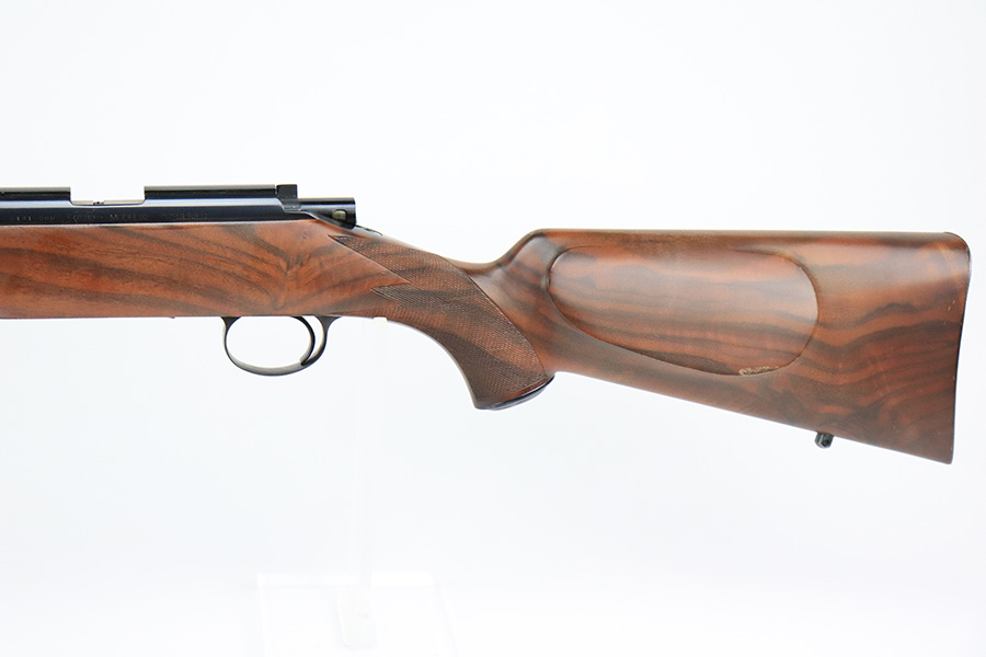 8/5/22 – This is an excellent example of a Kimber Model 82 “S” series rifle chambered in .22 LR. There is virtually no finish loss across the rifle. The wooden stock is in very nice condition with some handling wear here and there with some areas of wear on the cheek rest and wrist. The rifle is magazine feed and the action is smooth. The bore is shiny and mint.