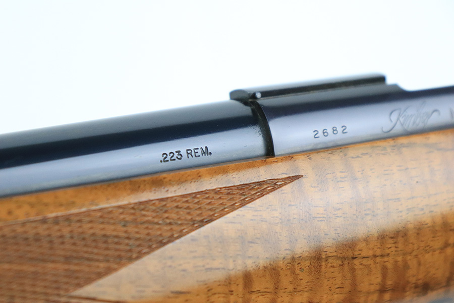 8/5/22 – This is an excellent example of a Kimber Model 84 rifle chambered in .223 manufactured in Oregon USA. The original blued finish is in gorgeous condition. The wooden stock is in excellent condition with virtually no signs of use or handling wear. The action is smooth. The bore is mint.
