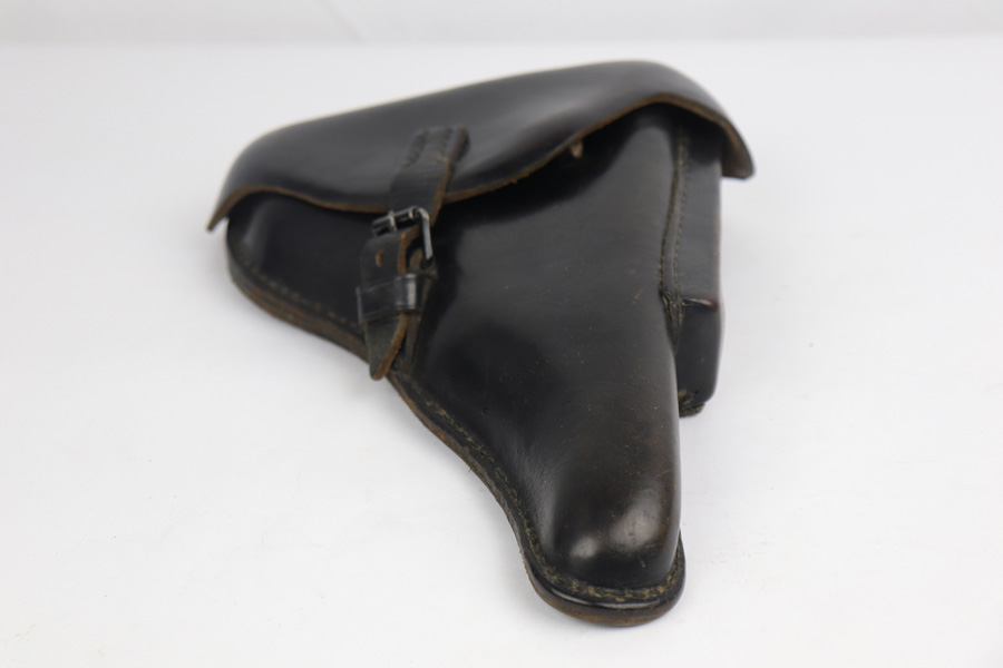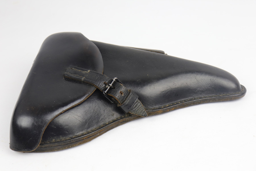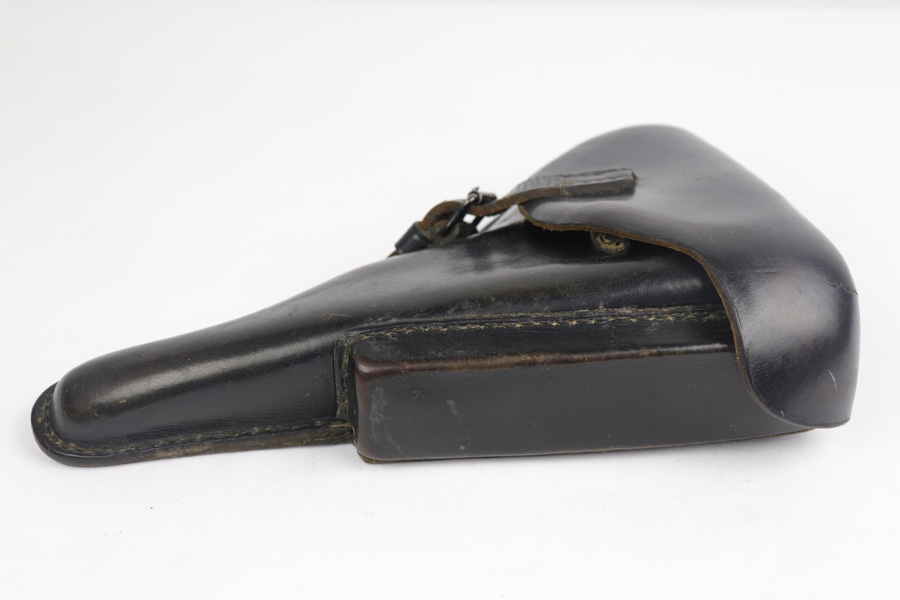 5/8/19 – This is an original and excellent Krieghoff luger holster from WW2. One of the nicest we’ve ever offered, this holster is very clean and all original. The interior leather has a crisp and strongly struck Krieghoff proof stamp. The black leather has normal pliability and a few surface wrinkles but no major issues. No notable stitching issues either. These are extremely hard to find in this condition.