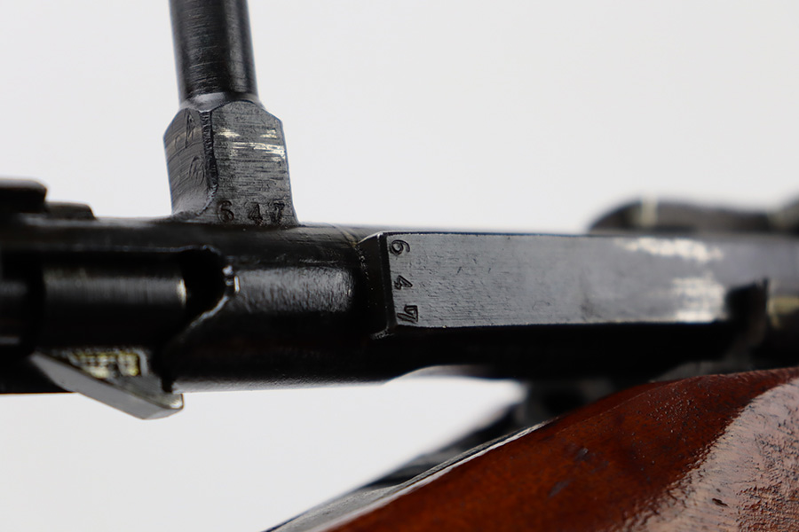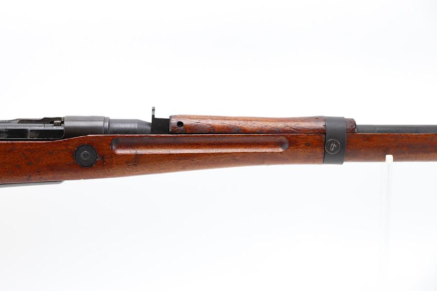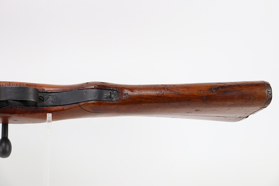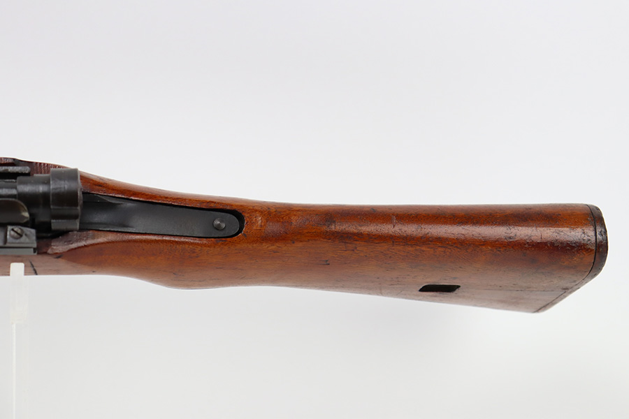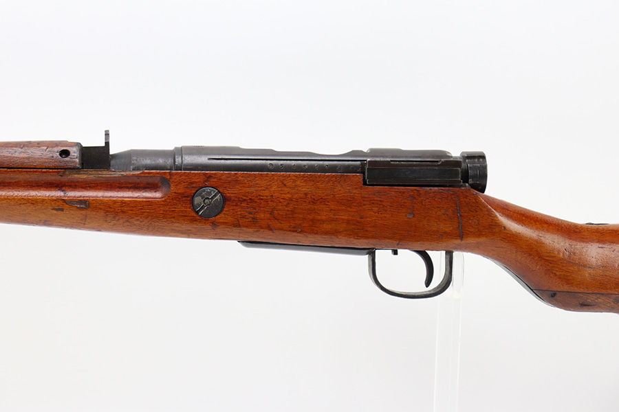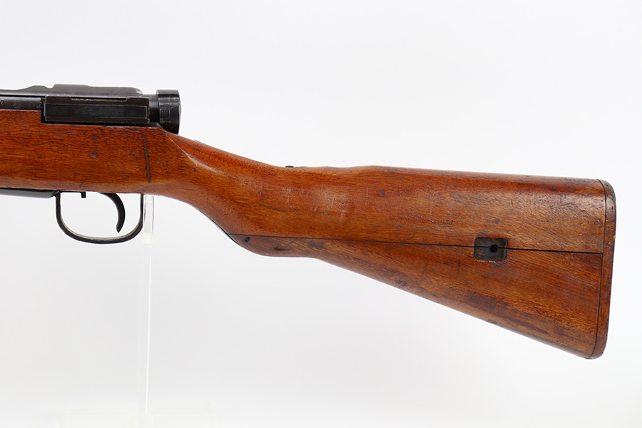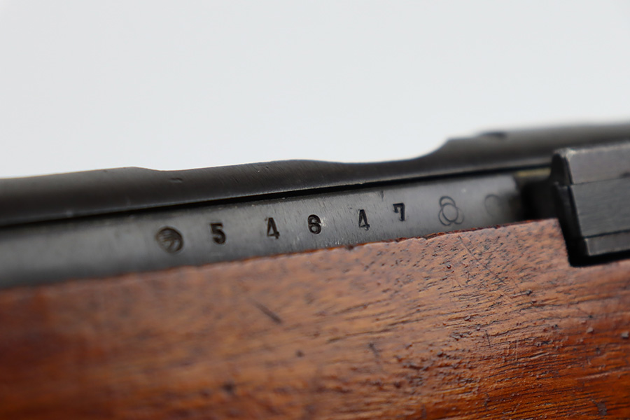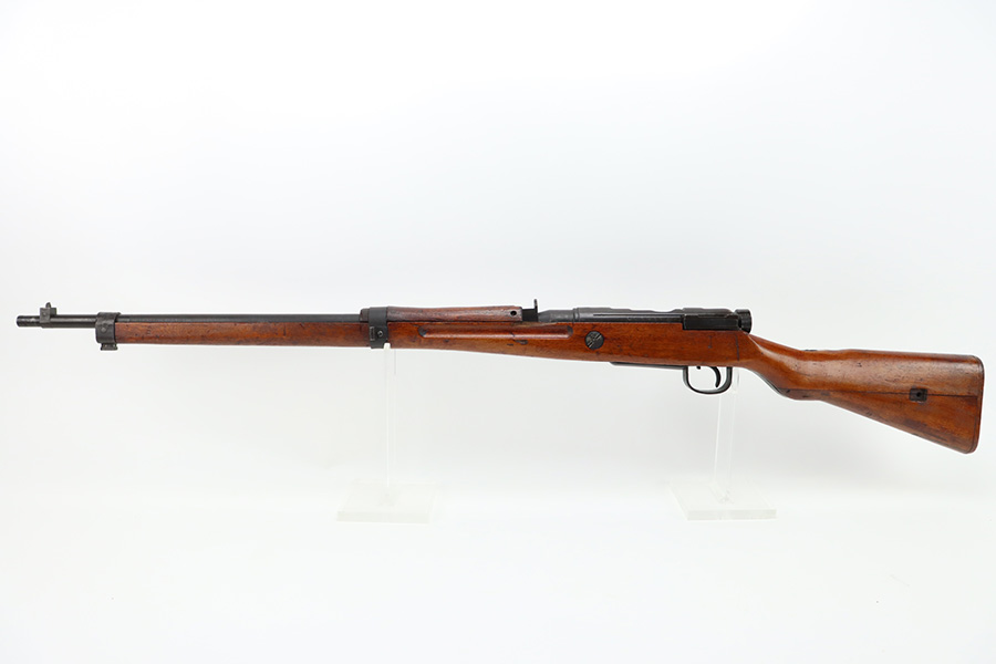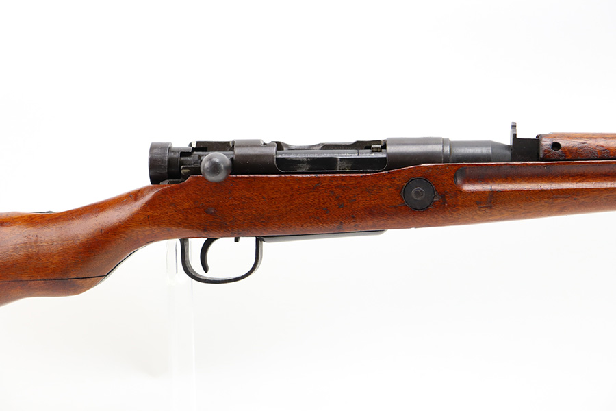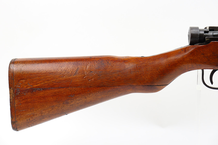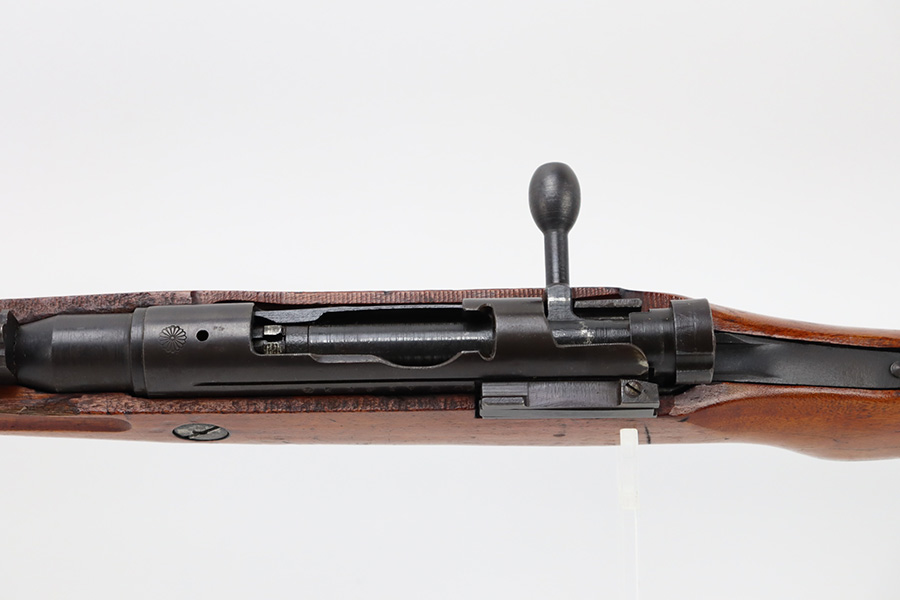 1/15/24 – This is an excellent example of an Arisaka Type 99 rifle issued to the Japanese military toward the end of WW2. It has late-war features, such as peep-style rear sight and a wooden butt plate. It is all matching and has a completely intact Imperial mum stamp on the receiver. The metal parts have retained nearly all of their finish. The wood furniture is excellent with below-average signs of wear and use. Mint bore.