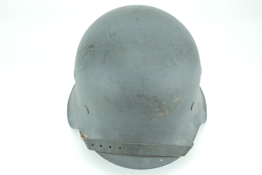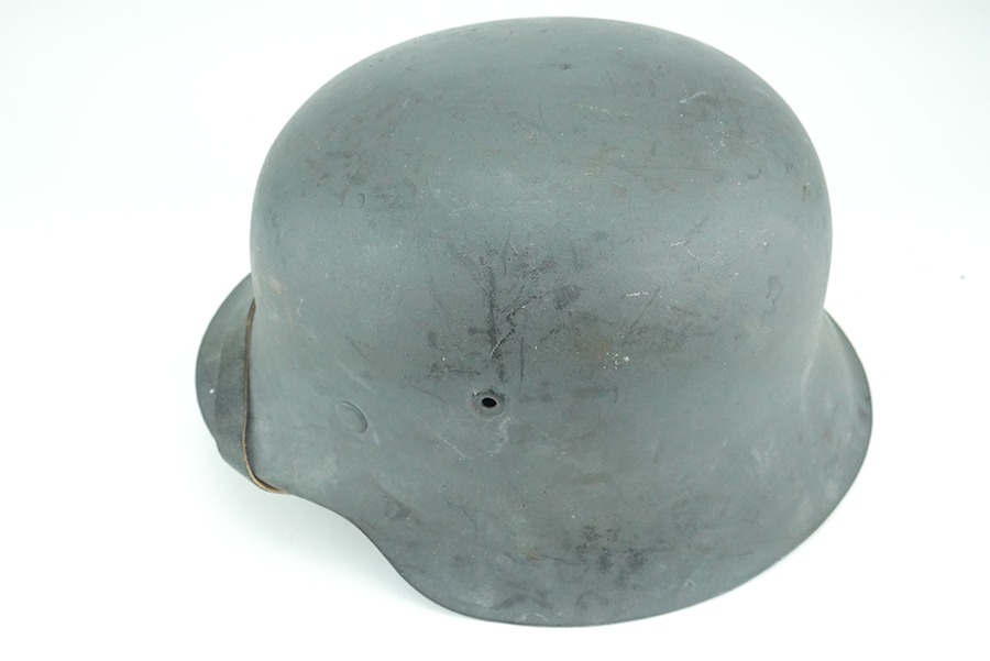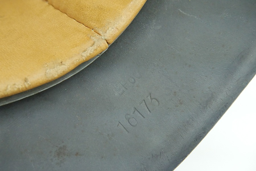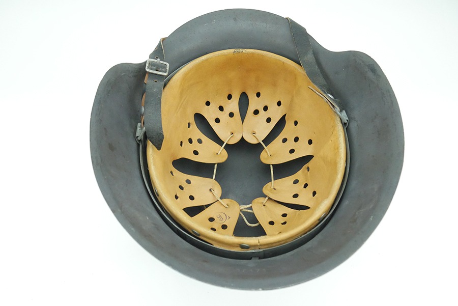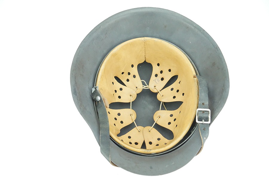 11/4/24 – This is an original WW2 German M42 helmet. The helmet is a model 42 with flat (not rolled) edges around the brim of the shell. The shell has a field grey paint job and retains almost all of its original paint. The shell has wear typical of its age, but does not have any dents or dings in the shell. The shell has the makers mark of “EF66”. This stamp points to the manufacturer of Emaillerwerke A.G. in Fulda, Germany. The 66 is for the size of the helmet shell. The shell is also heat stamped “16173”. The helmet also has a liner inside that is ink stamped with “59”. The helmet also has it’s chin strap.