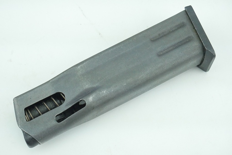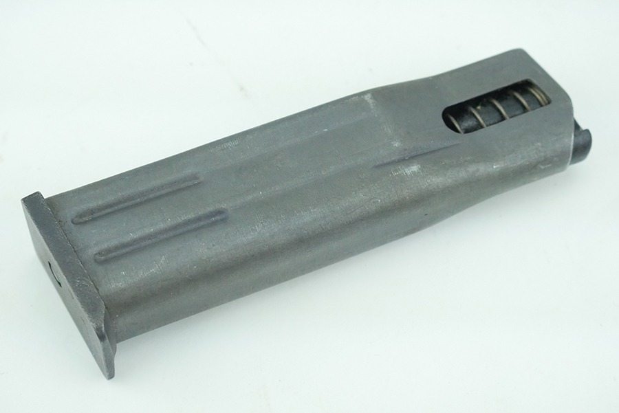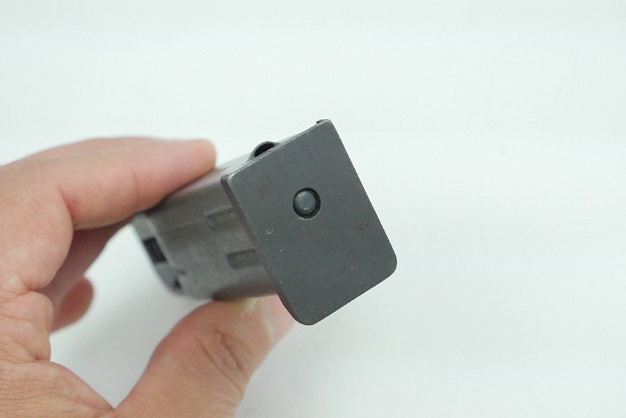 10/17/24 – This is an excellent example of Makarov PMM magazine. The Makarov PMM is a double stack variant of the standard Makarov pistol. The body of this magazine still has all of its original grey phosphate finish. There are no markings on the magazine. The spring on this magazine is still strong and fully functional.