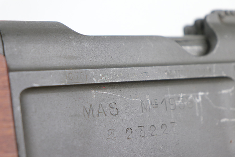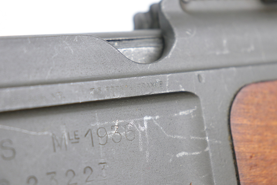 11/19/21 – This is a minty example of a MAS Model 1936 rifle. First adopted in 1936 by France and intended to replace the Berthier and Lebel series of service rifles, it saw service long past the World War II period. It was manufactured from late 1937 onward by Manufacture d’Armes de Saint-Étienne (MAS), one of several government-owned arms factories in France. Only 250,000 MAS-36 rifles were available to equip the French infantry during the Battle of France in 1940. Mass production finally caught up after World War II and MAS-36 rifles became widely used in service during the First Indochina War, the Algerian War and the Suez Crisis. The parkerized finish is excellent throughout on this rifle, and it has a mint bored that looks unfired. Terrific stock with no chips or cracks. Matching receiver and bolt. Period sling. Import mark on left side of receiver.