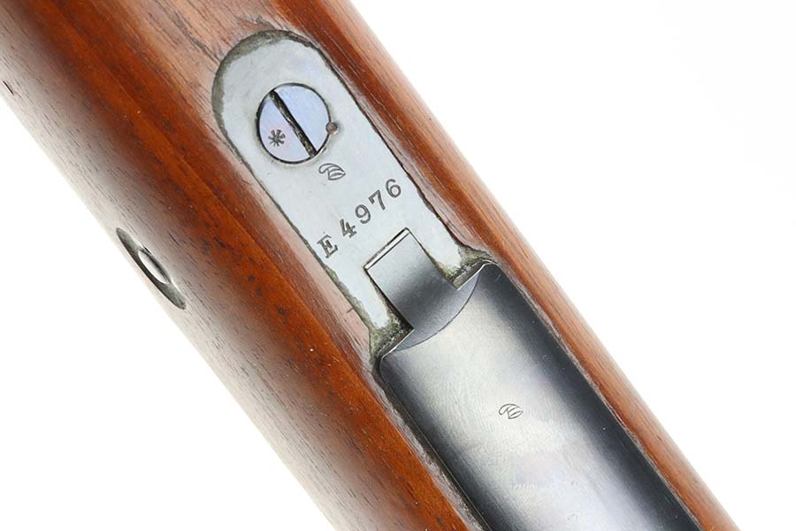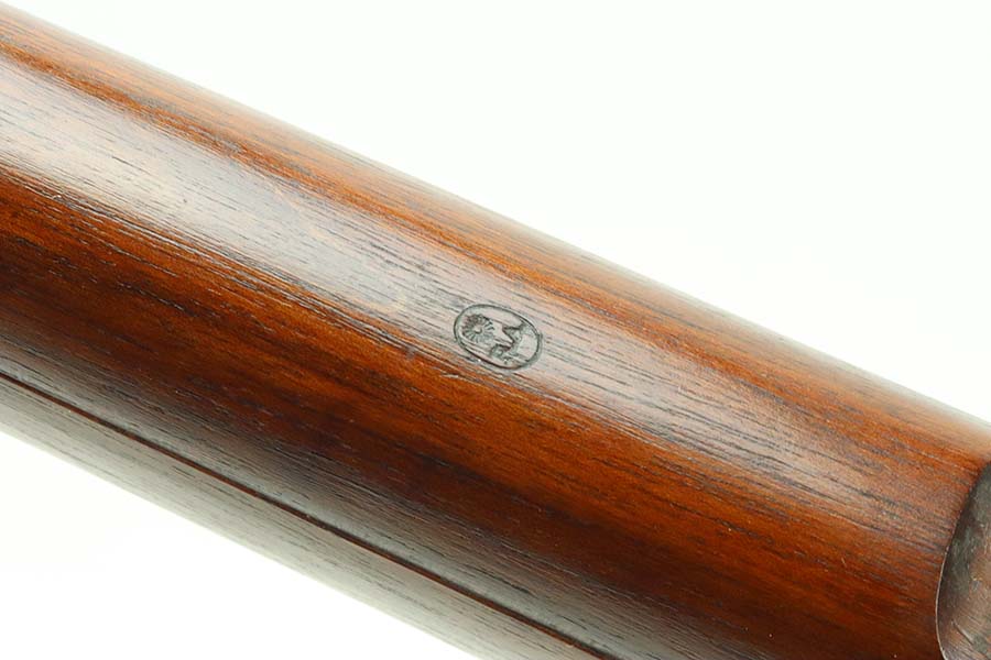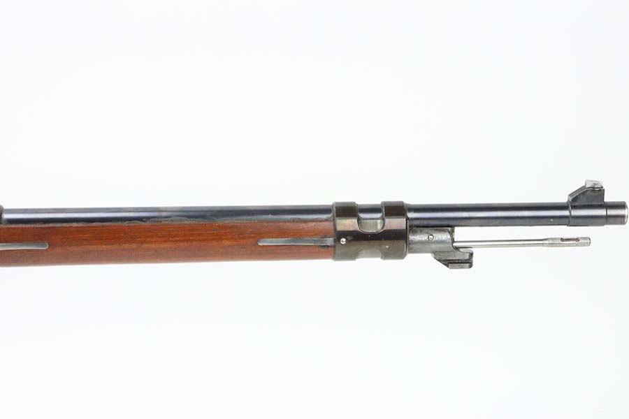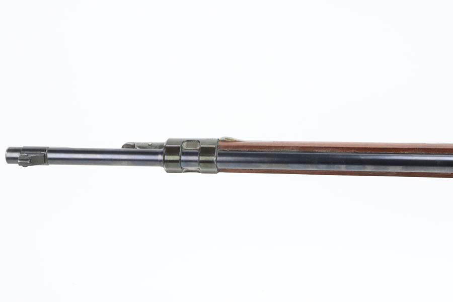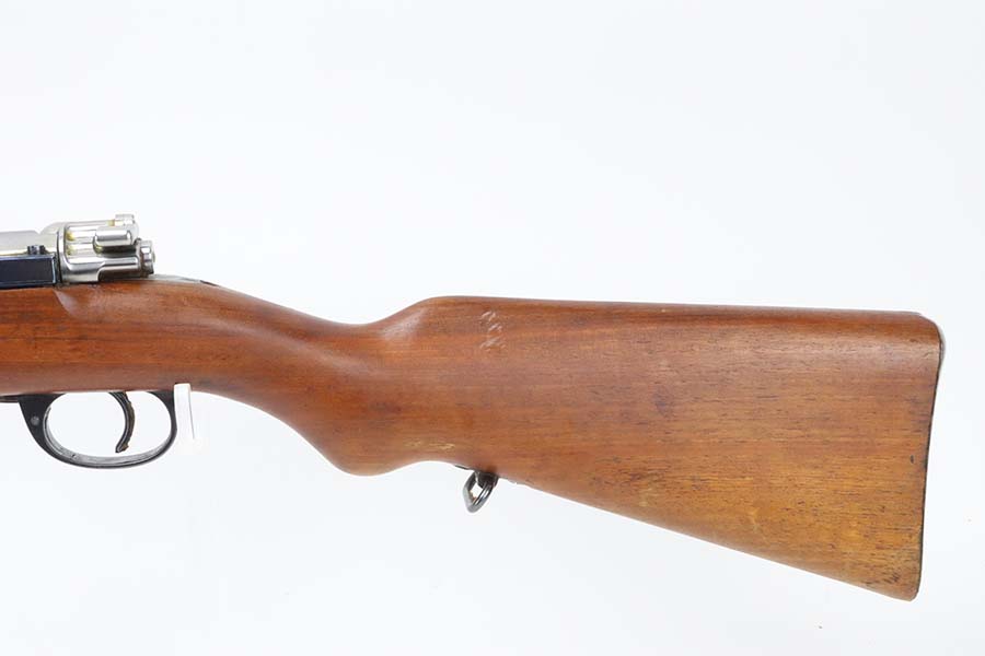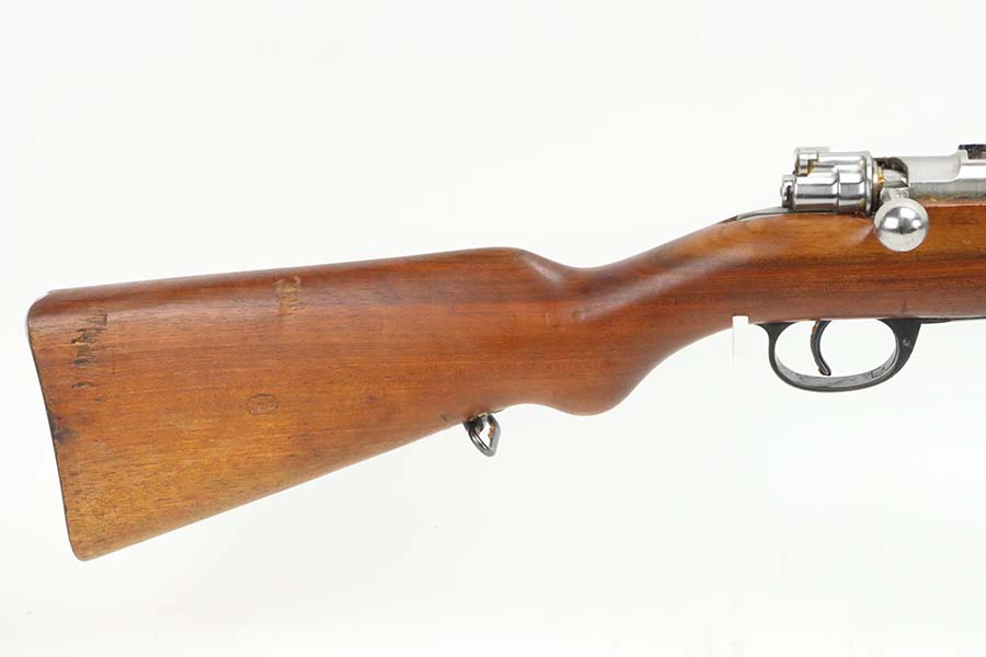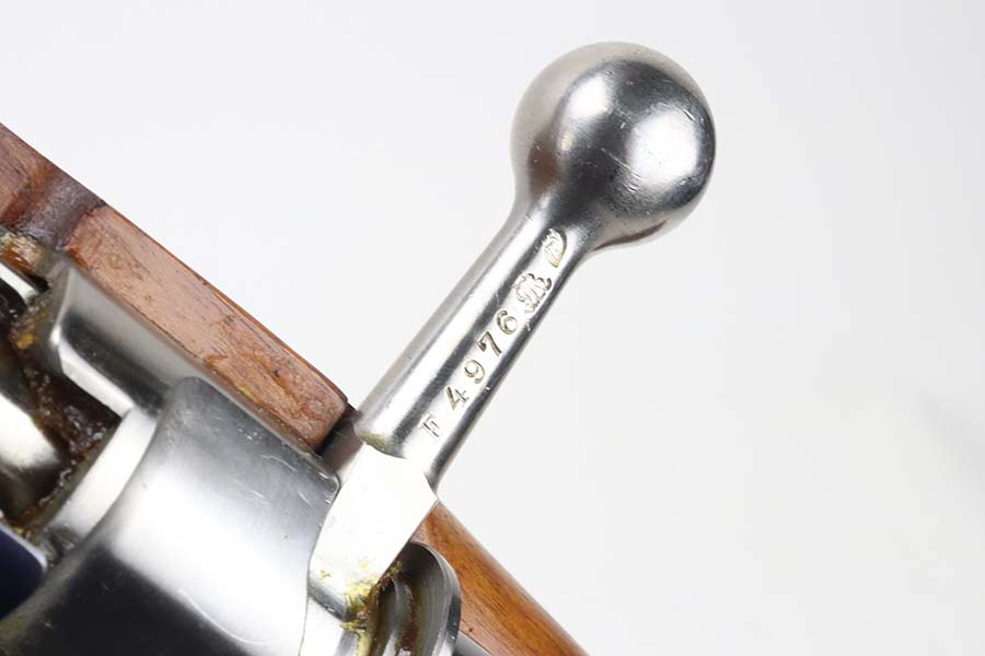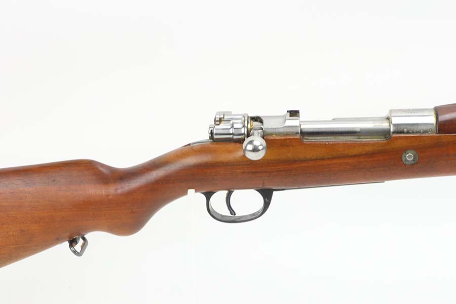 04/02/2024 – For sale is an excellent Argentine Model 1909 Mauser made by DWM around 1910. These rifles are large ring Mauser 98 action rifles made in contract to Argentina as an upgrade to their Model 1891 Mauser rifles. This rifle looks fresh from the arsenal with pockets of cosmoline throughout. The “In the white” finish is excellent and the bolt release has a gorgeous fireblue finish. The wood stock is in excellent condition but there ar some chatter marks on the rear of the stock. The bore looks to be excellent and shines light through with great rifling, but there are still pockets of cosmoline inside. The rifle matches on the bolt, receiver, cleaning rod, and stock. The receiver is stamped with the clean Argentine Crest.