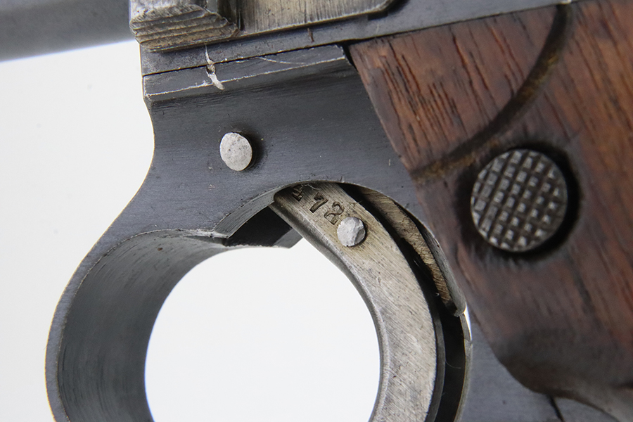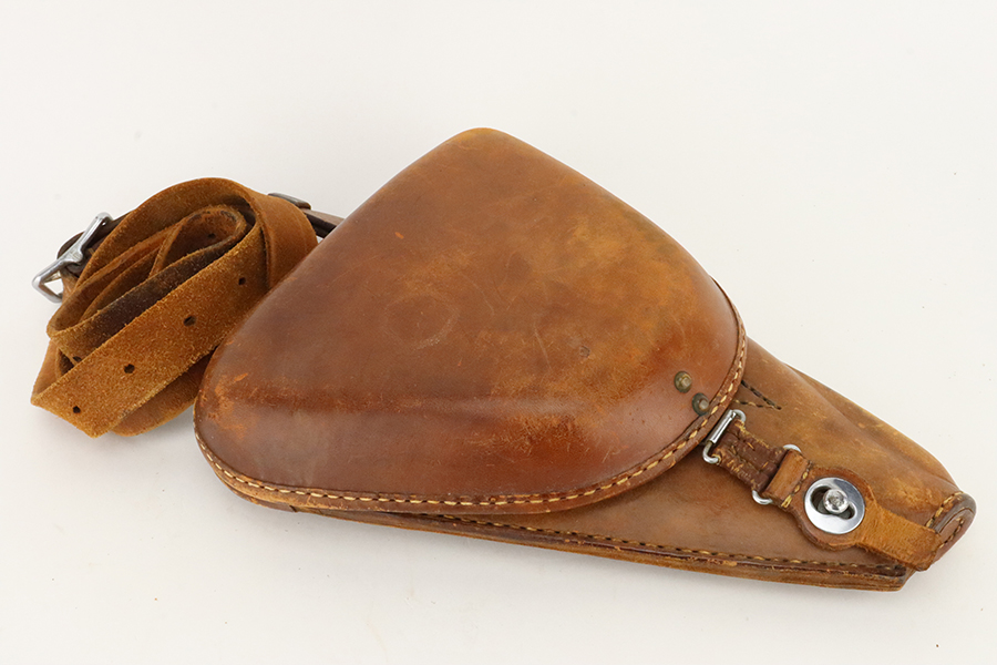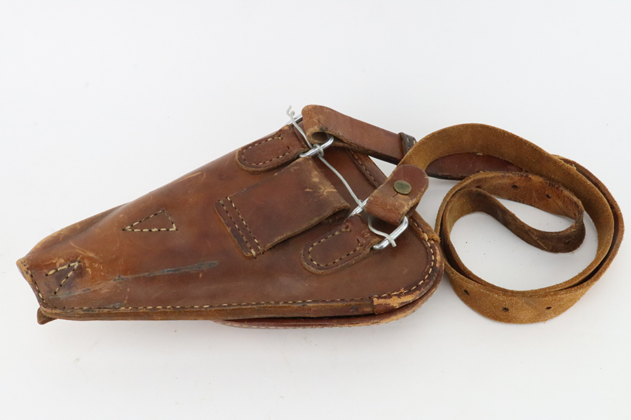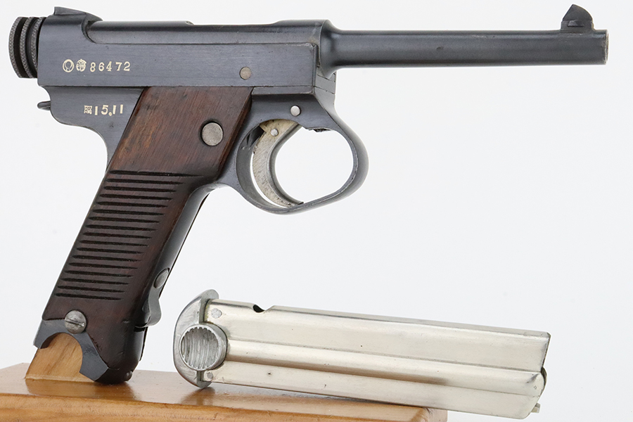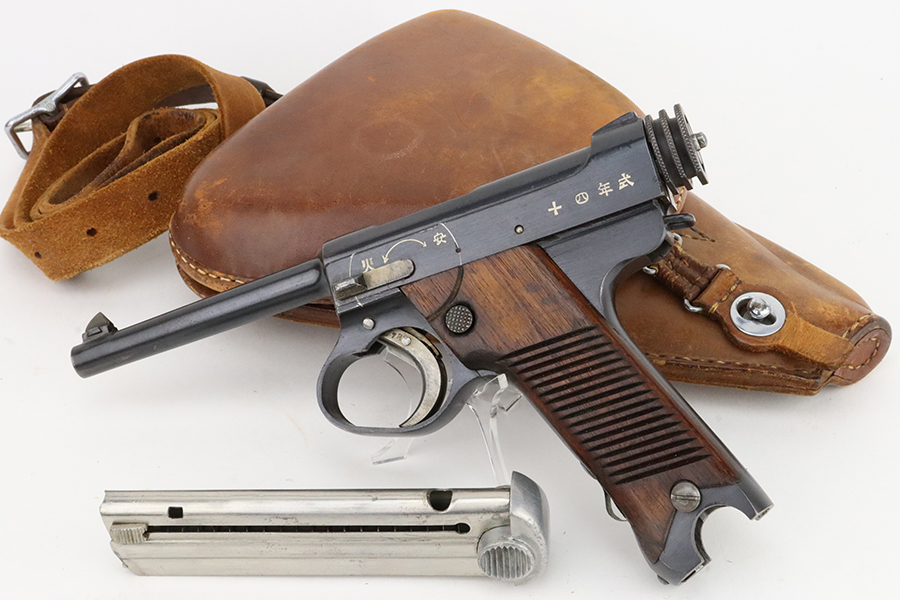02/12/2024 – For sale is an excellent condition Type 14 Nambu made at the Chuo Kogyo arsenal. The handgun comes with a rig marked with an officer’s name. The handgun is matching on the receiver, trigger guard, trigger, bolt knob, bolt body, barrel, Locking block, and grips. The magazine does not match. The bore is in good condition and is very bright. The handgun comes with a hardshell holster with shoulder strap. The holster has “First Lieutenant Yahaba” on the inside of the hardshell.