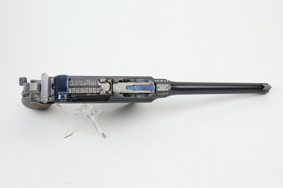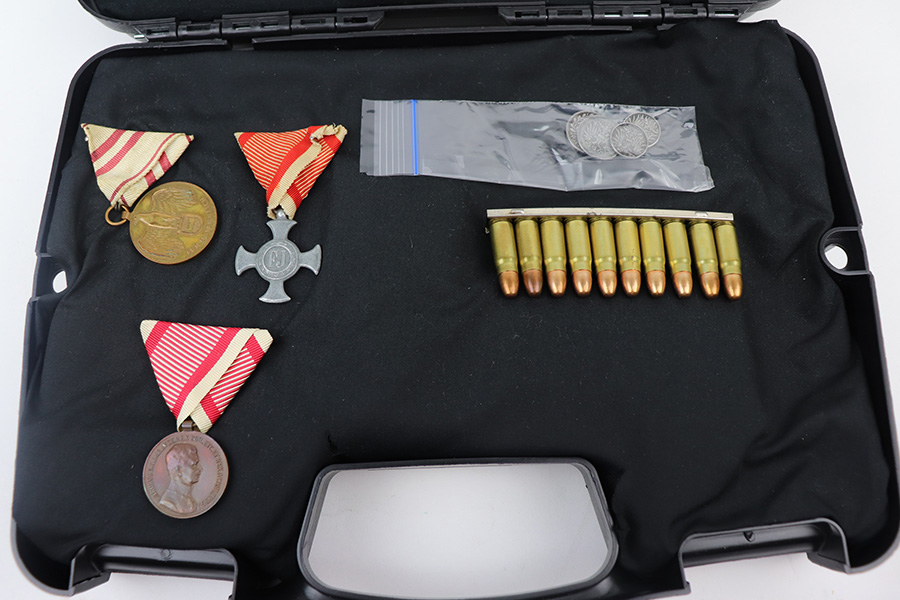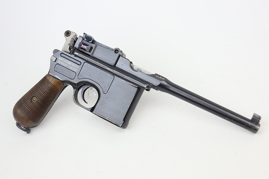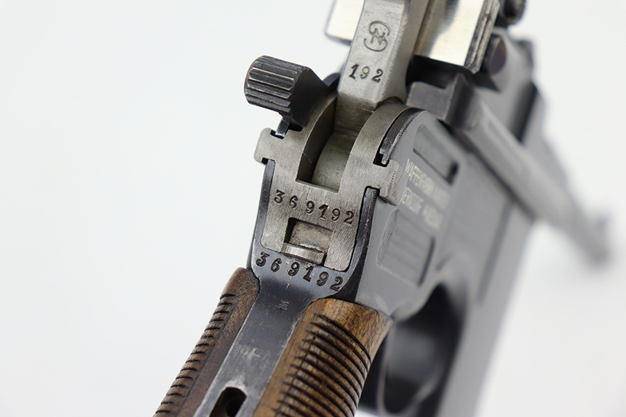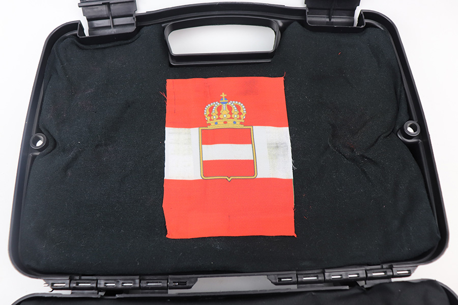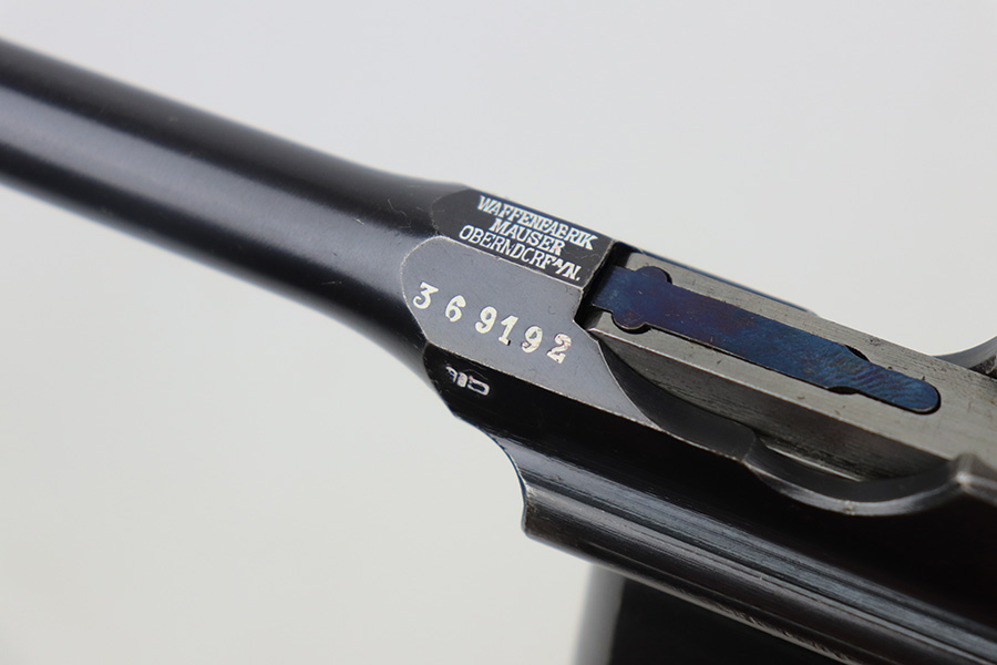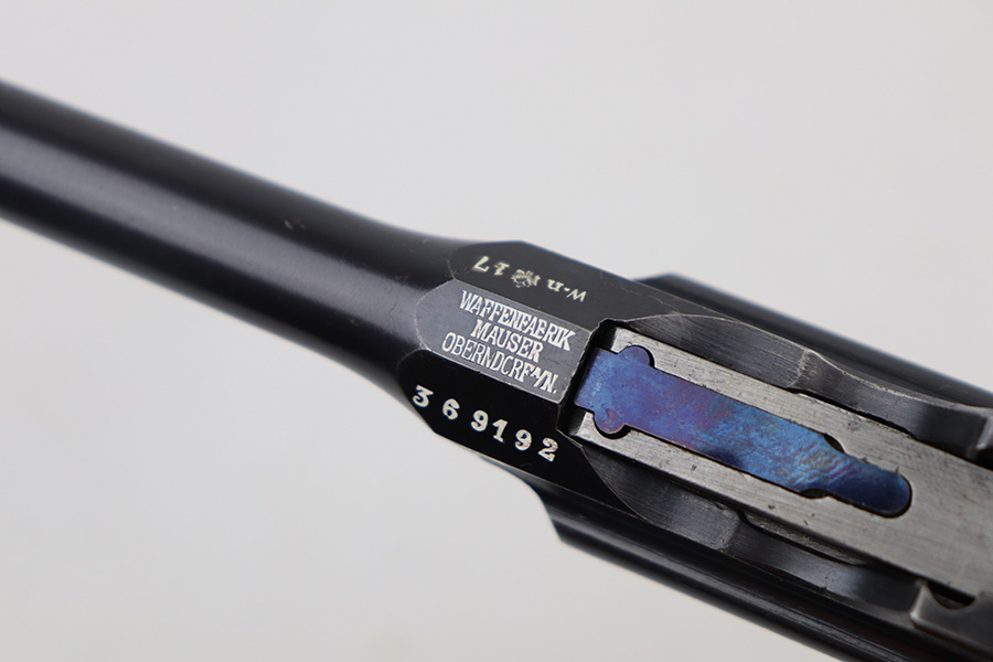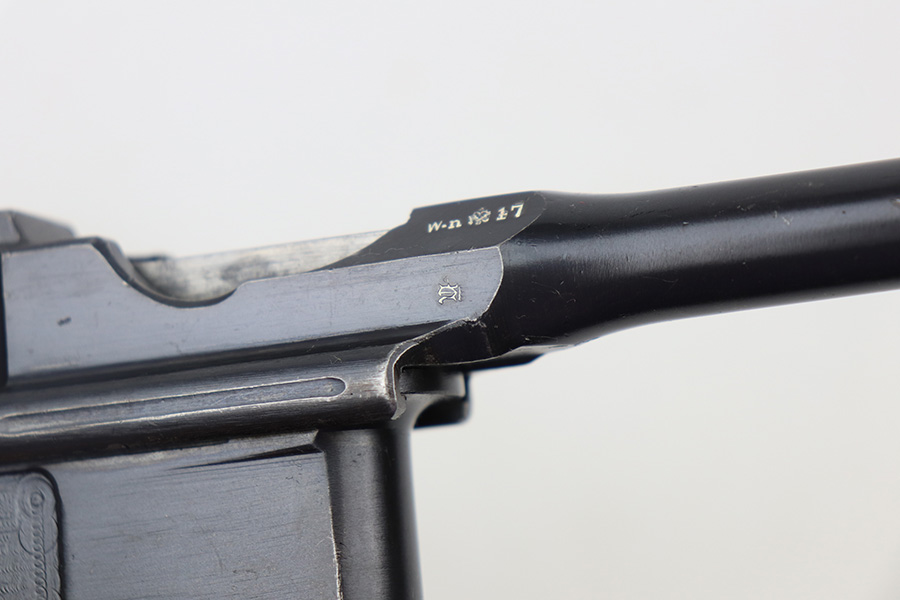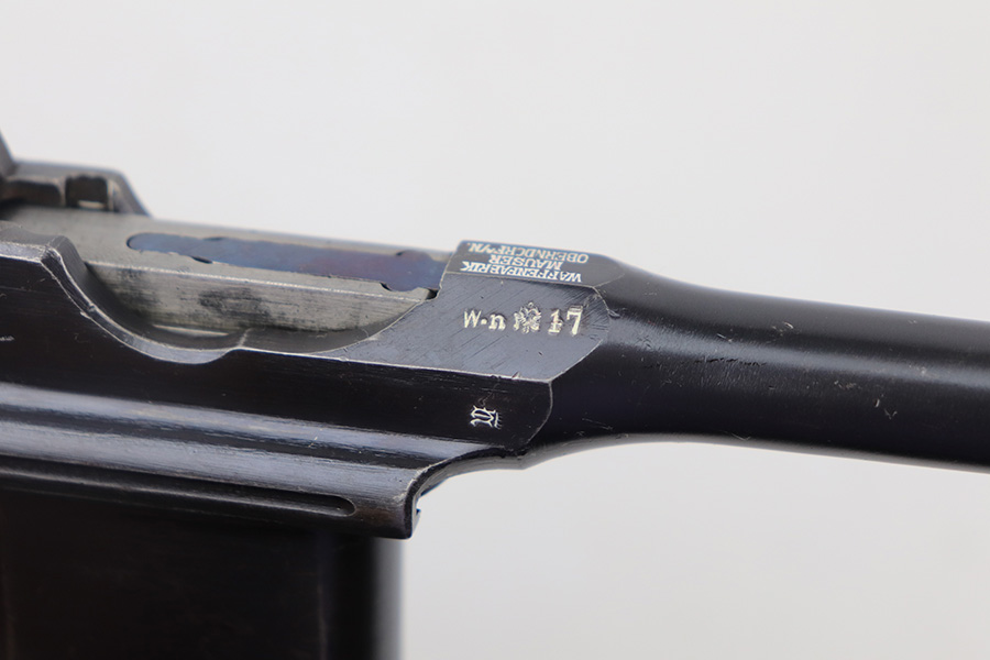 5/7/21 – This is a rare Mauser C96 Broomhandle that went to the Austrian Army during World War I. It’s all original and in excellent condition with only minor bluing loss on the muzzle, right side rail and front edge of the magazine well. All matching numbers throughout, aside from the magazine floorplate which is very commonly replaced. The finish is uniform throughout, so this part was likely with the gun for a very long time. The original, matching grips are also present. This gun was shipped from Germany’s Erfurt Arsenal to the Austrian Imperial Army in 1917. It has both the German Army acceptance stamp and the Austrian Imperial Army acceptance mark. There were only about 13,000 such examples ever produced/ordered. This one has beautiful fire blue on small parts and a minty bore. It also comes with a stripper clip full of dummy rounds, an Austrian First World War Commemorative Medal, an Empire Bronze 3rd Class Bravery Medal and an Empire Iron Cross of Merit from 1916.