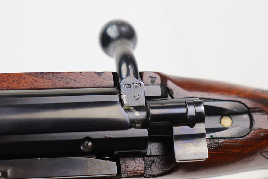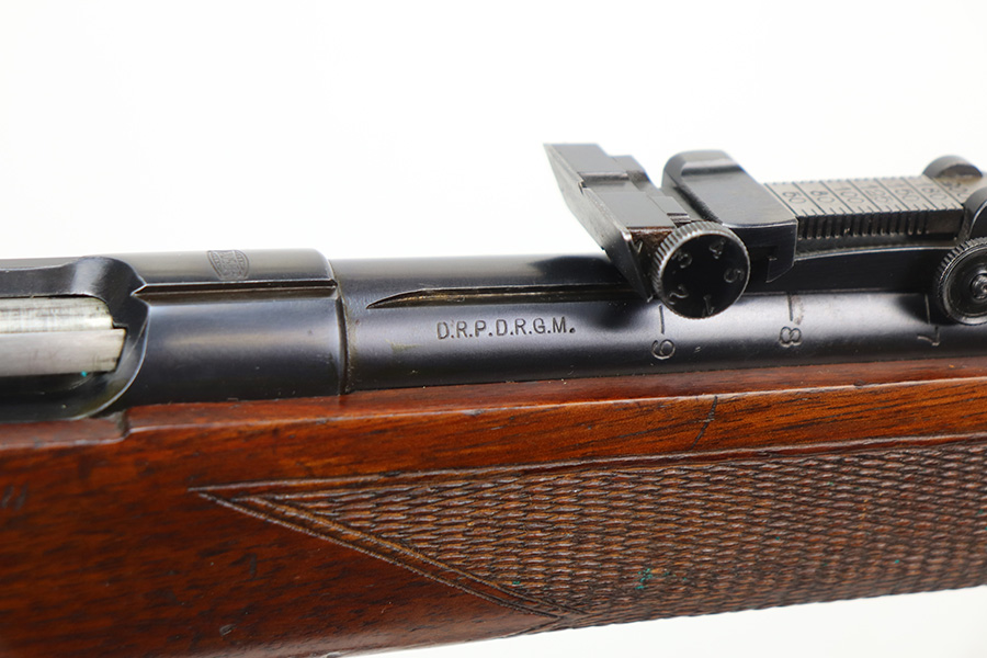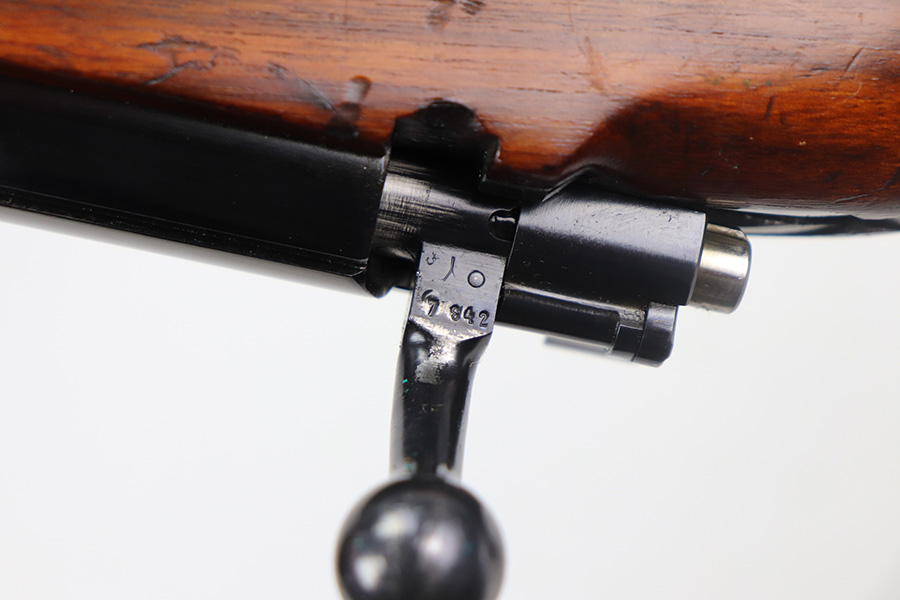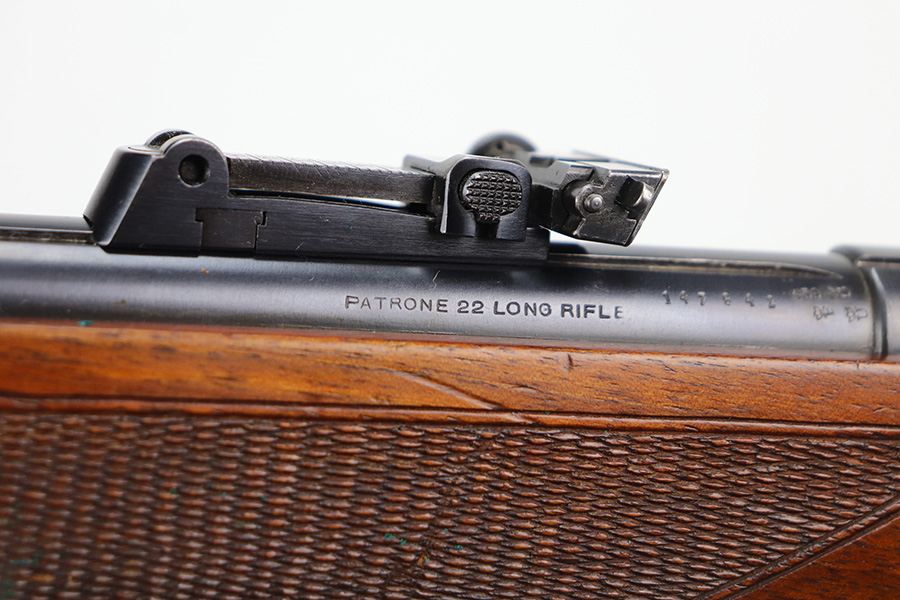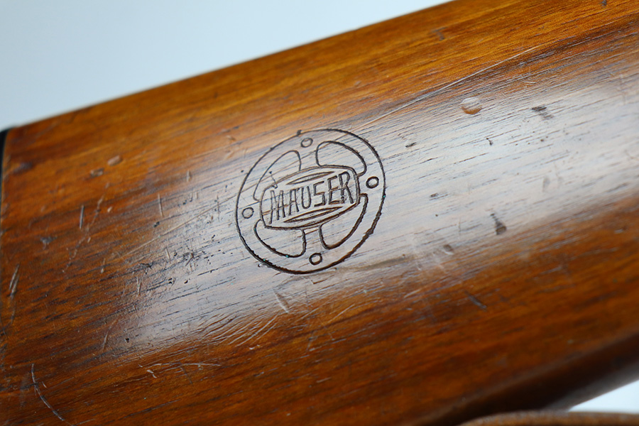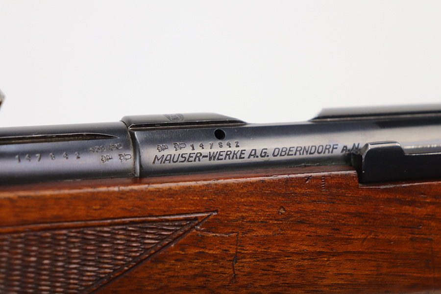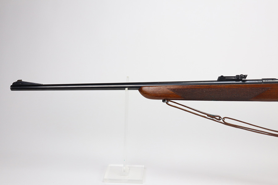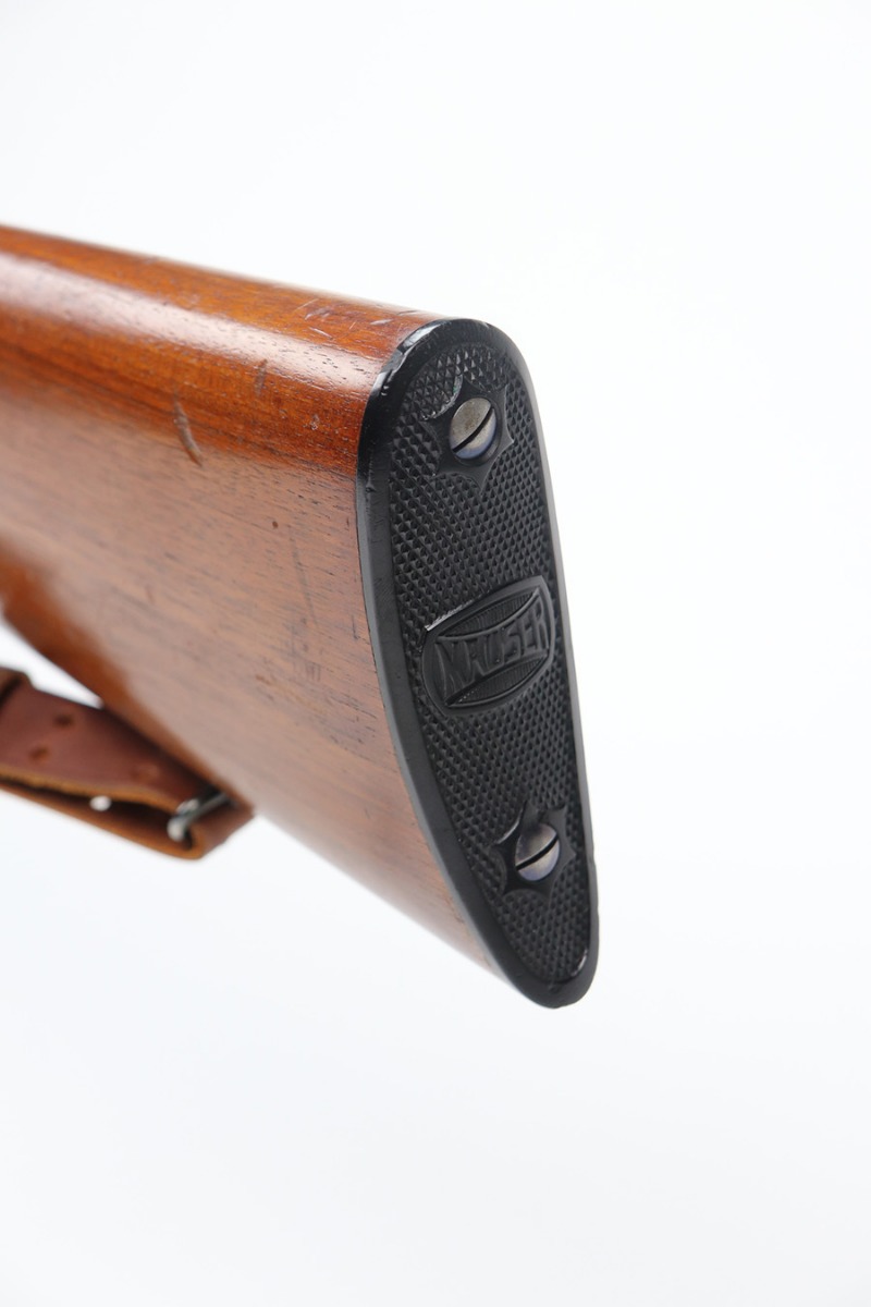 5/10/21 – This is an excellent example of a Mauser ES 350 B Target Rifle, chambered in .22LR. The gun is all matching and has “Crown BUG” proofs throughout. It has an adjustable rear sight that slides on a dovetail rail. The gun has retained most of its bluing with minor handling marks along the barrel. Very nice stock with minor bruising and surface scratches here and there. Comes with a leather sling. Mint bore.
