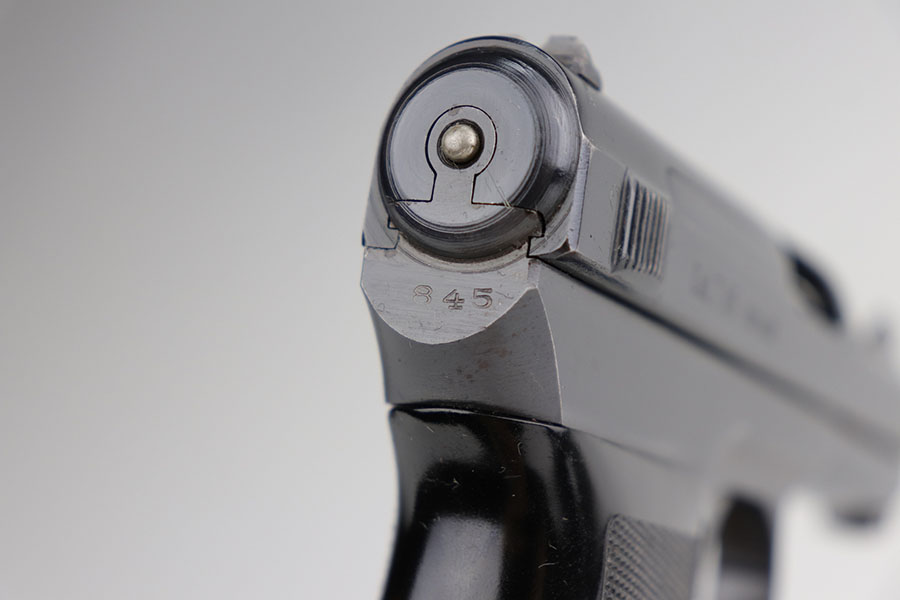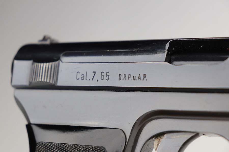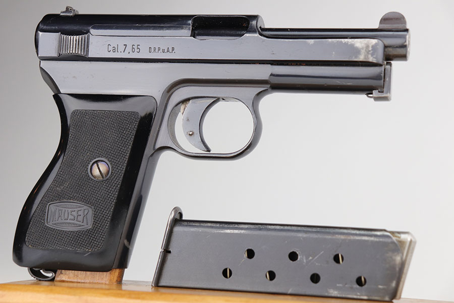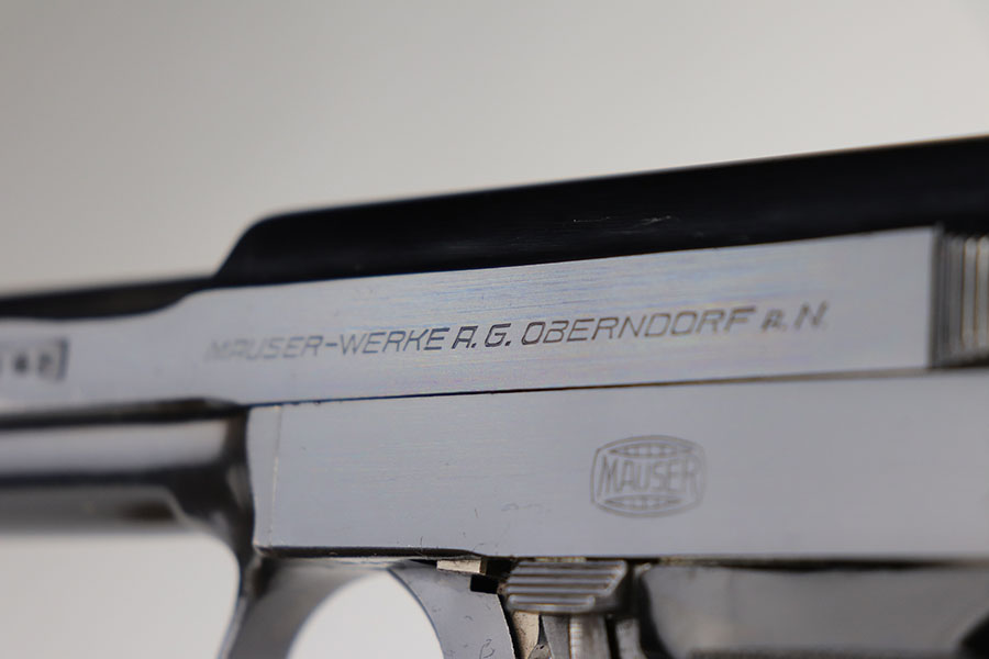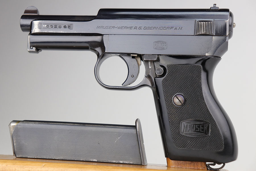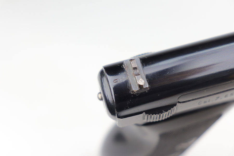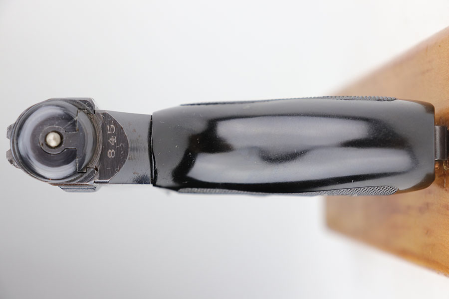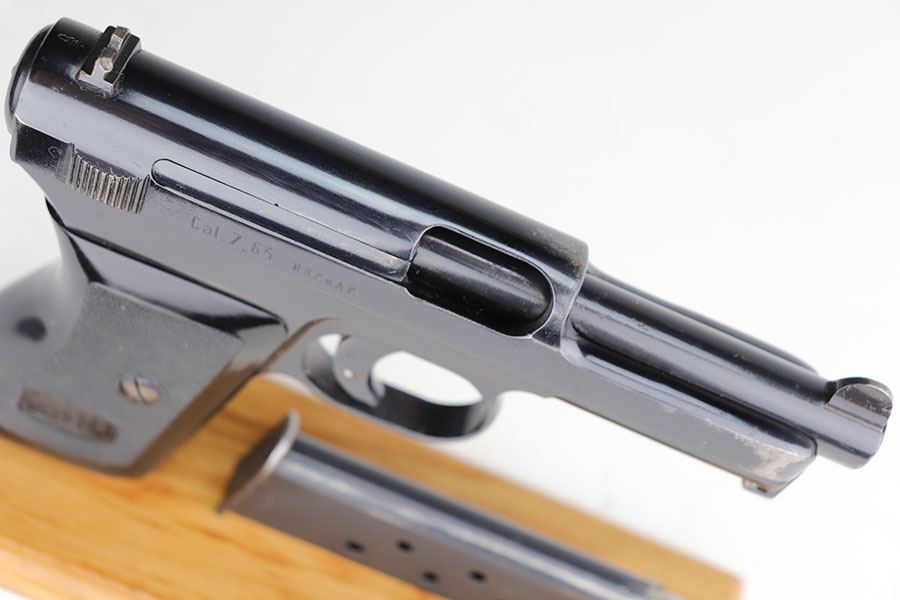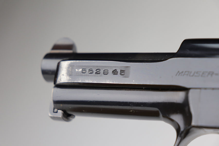 2/10/21 – This is an excellent example of a Mauser Model 1934, chambered in 7.65mm. It is all matching and is “Crown U” proofed. It has retained about 97% of its original finish. There is one small spot of wear on the front strap and wear on the front edges of the slide. It comes with an excellent black bakelite grip and one correct magazine. The bore is mint.