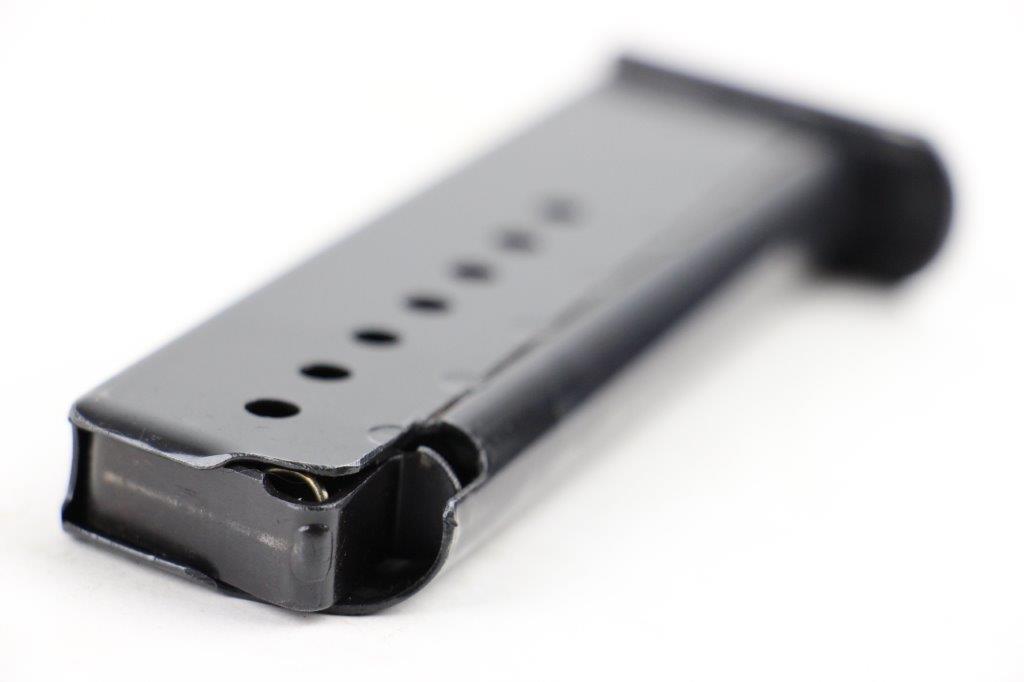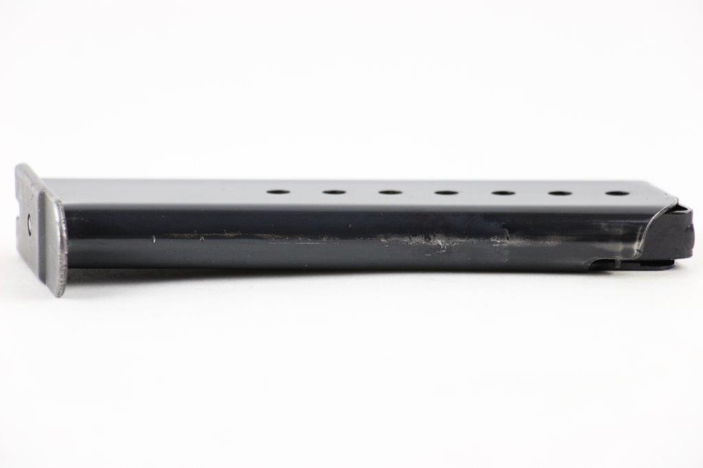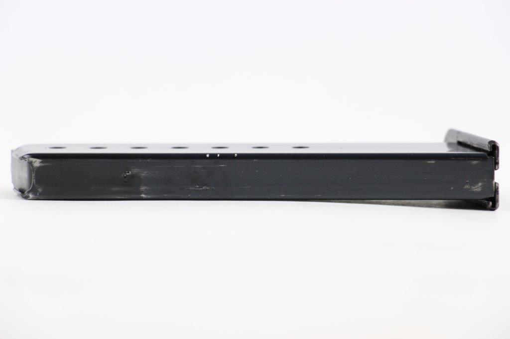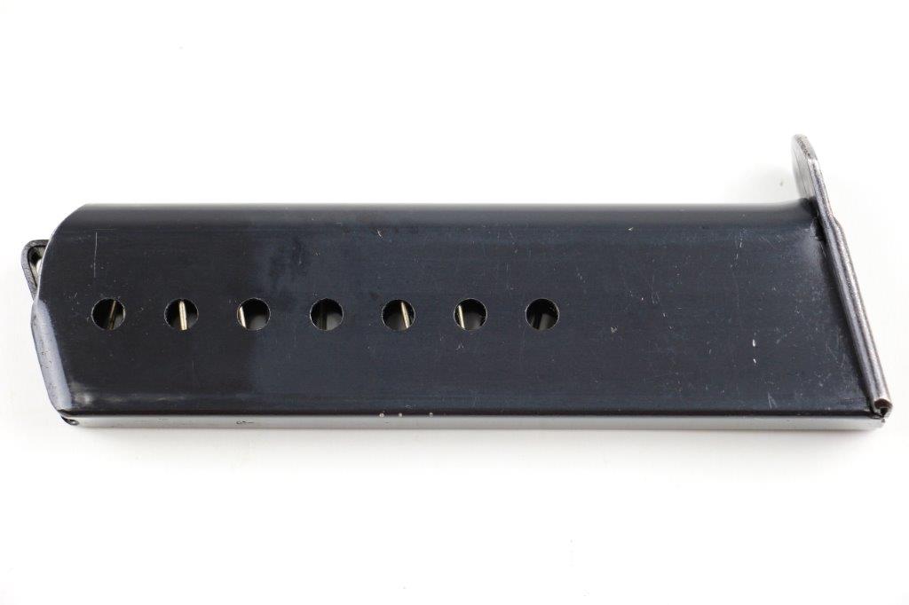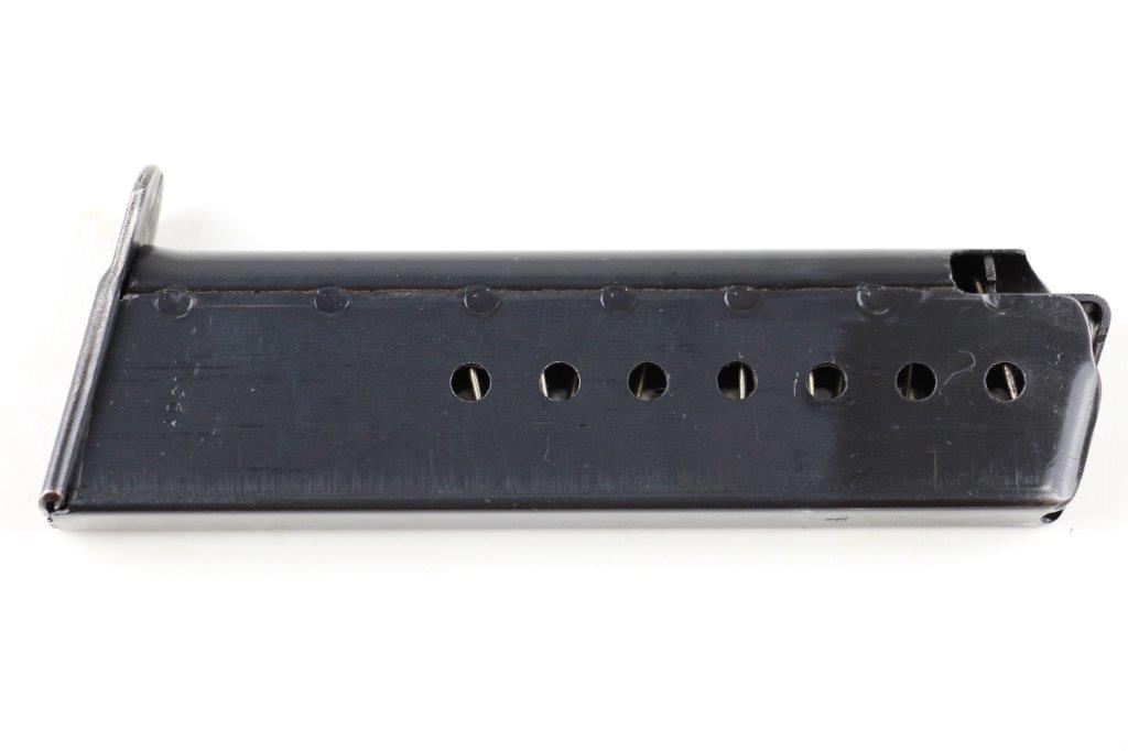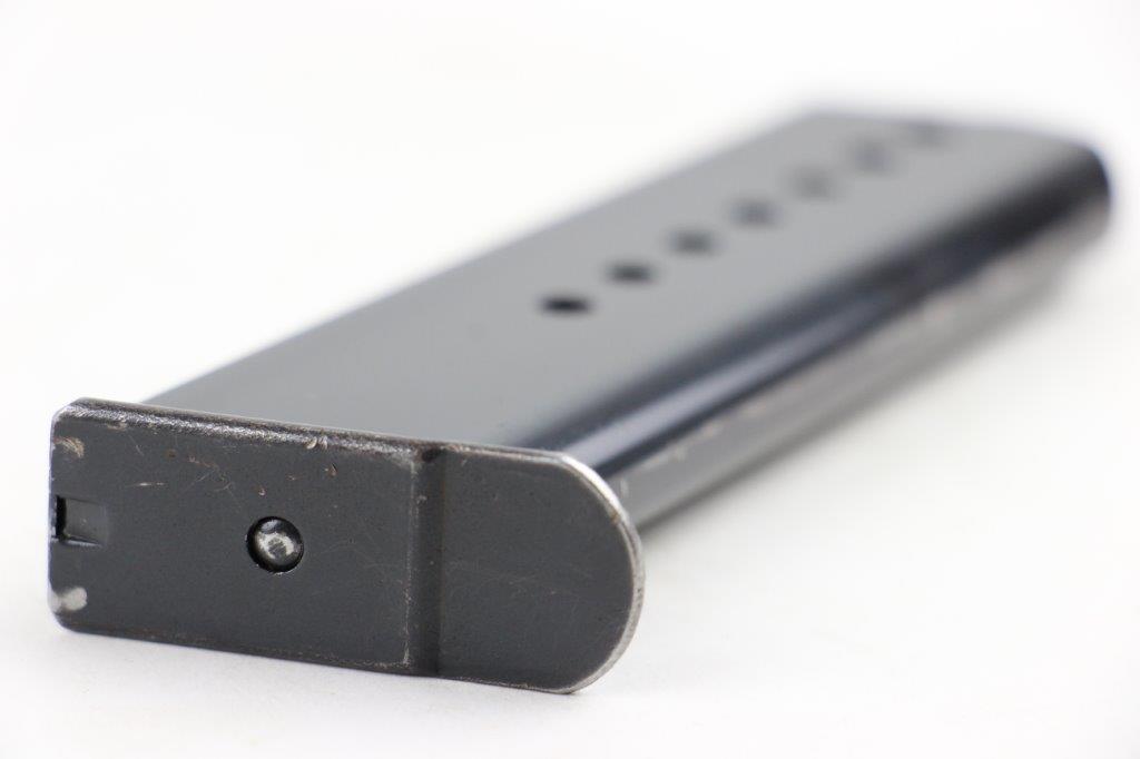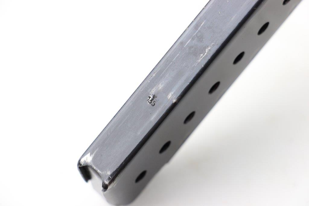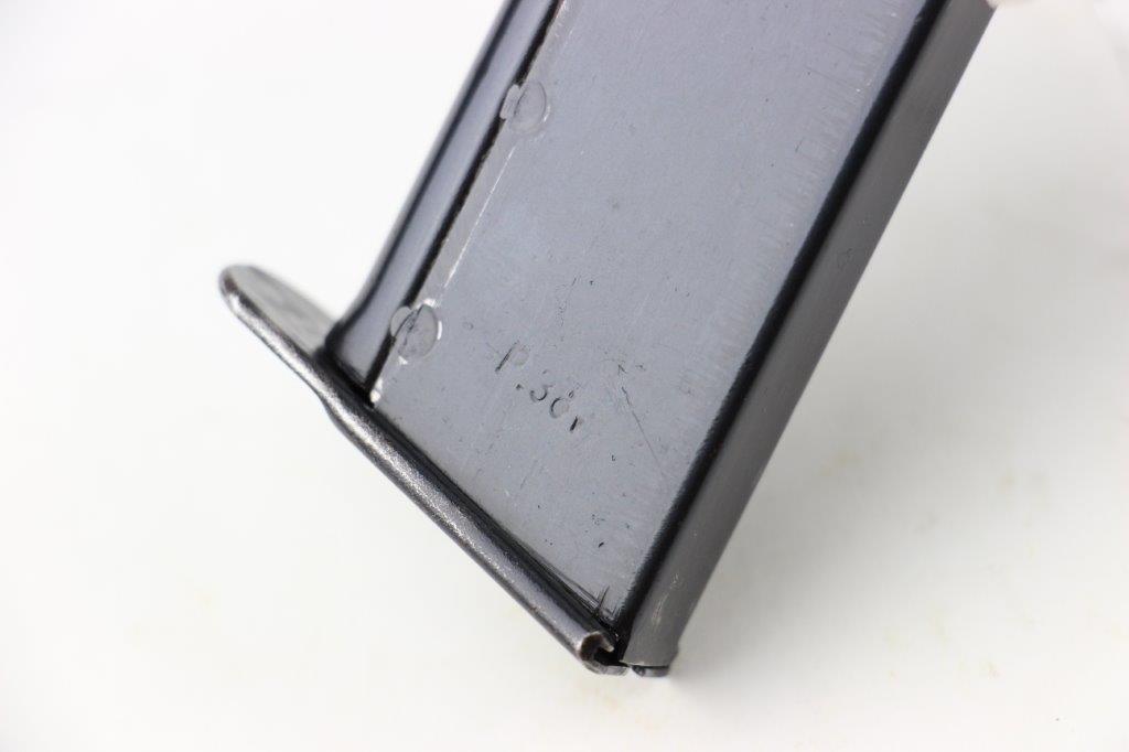 6/20/24 – This is an excellent condition, WW2 original Mauser P.38 magazine. The magazine has nice blued finish throughout with some minor patina and light finish loss on the front spine. No rust or pitting and a fully functional spring. The left side of the tube is P.38v stamped, while the spine is eagle 135 military proof stamped.